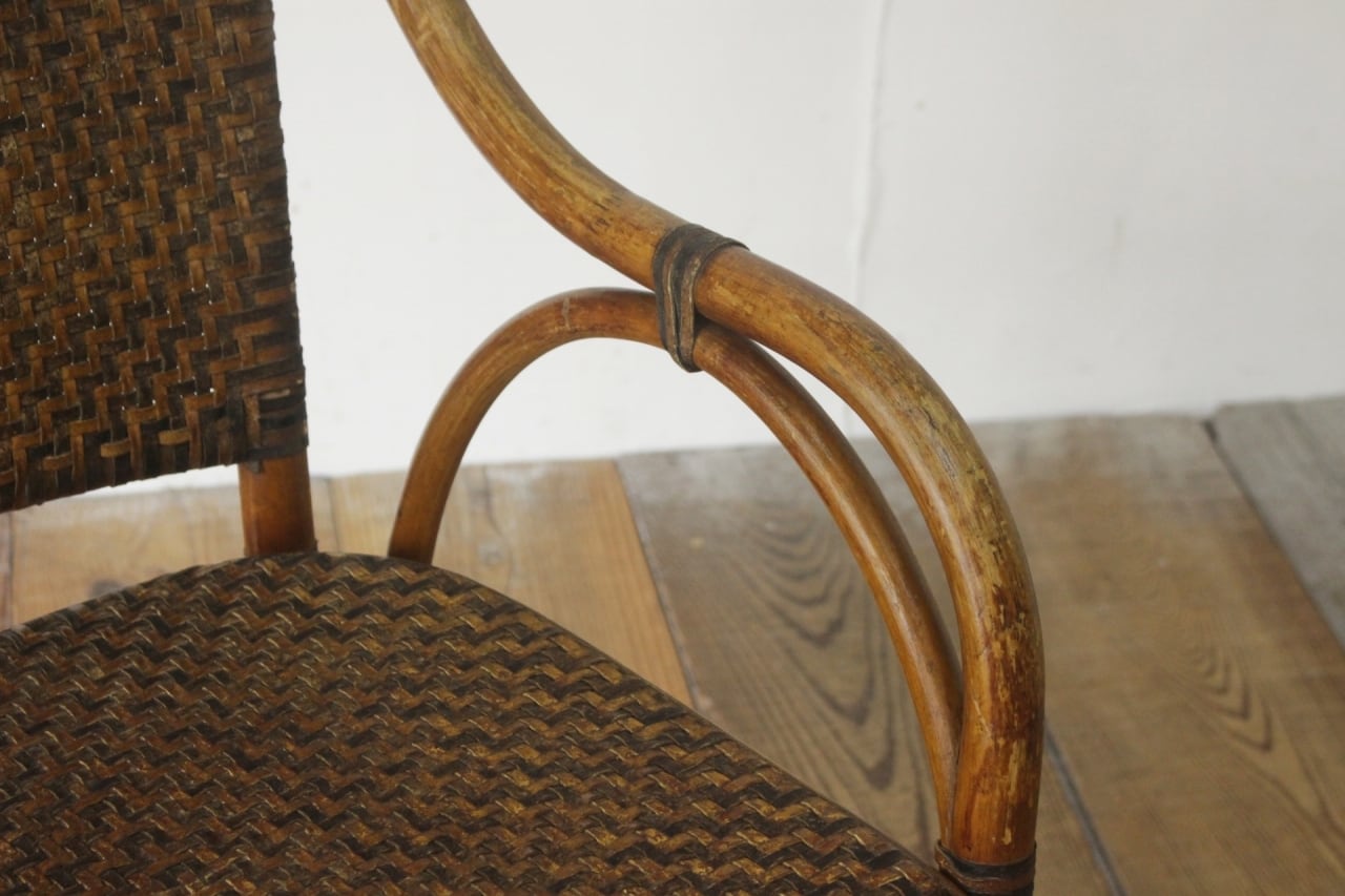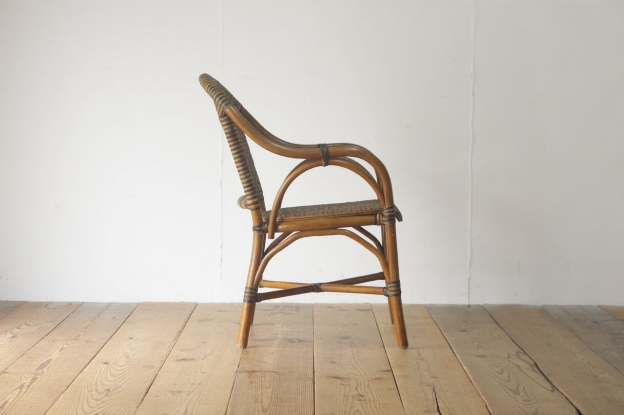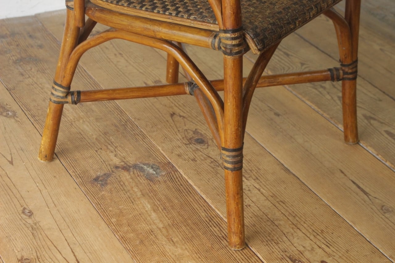 ラタン 籐家具 本革 チェア 椅子 アーム ダイニング リビング レザー ヴィンテージ 2/PDT15140