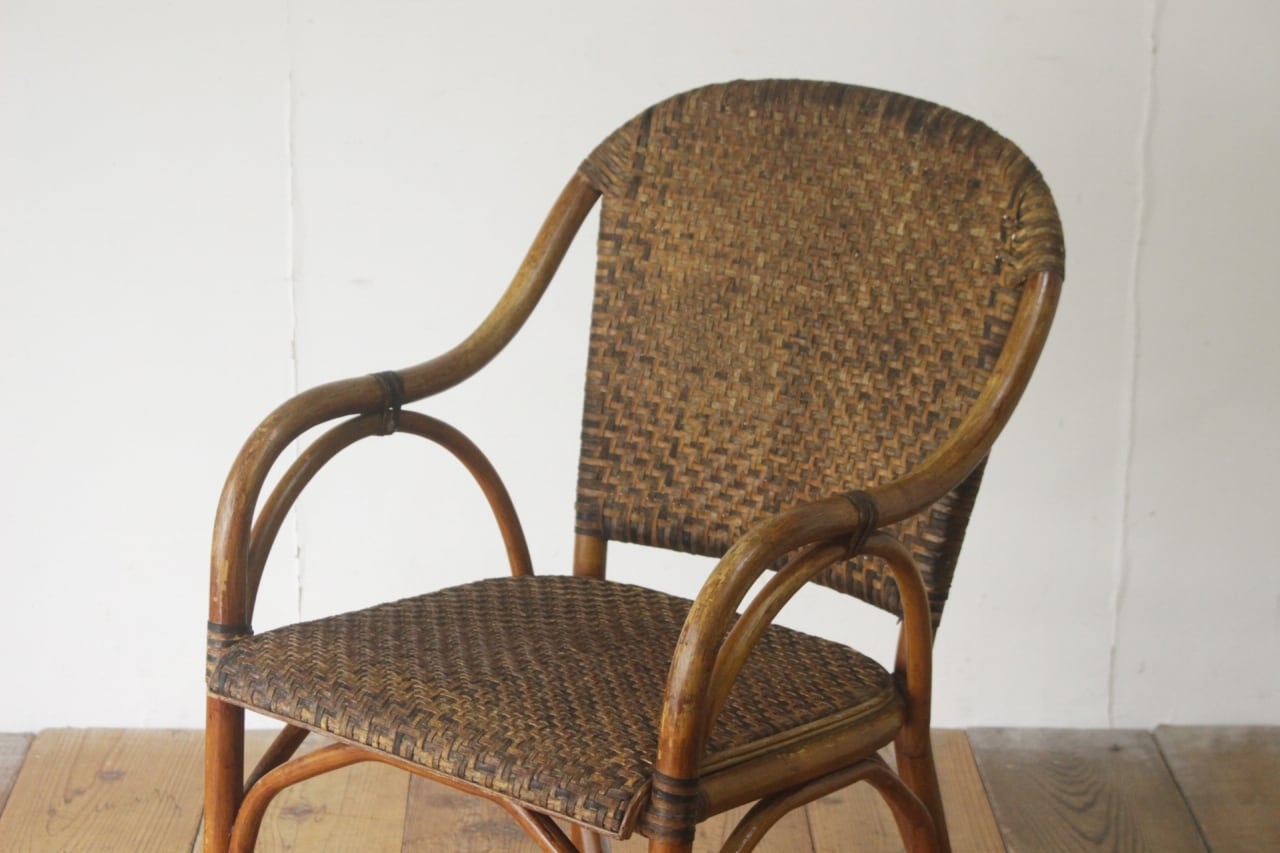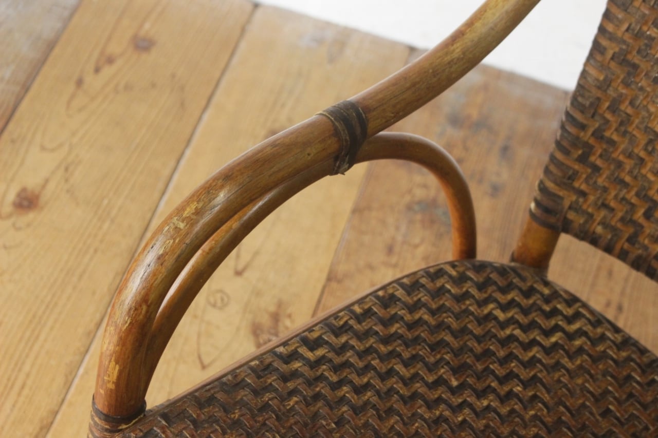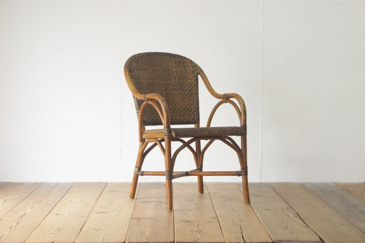 ラタン 籐家具 本革 チェア 椅子 アーム ダイニング リビング レザー ヴィンテージ 2/PDT15140