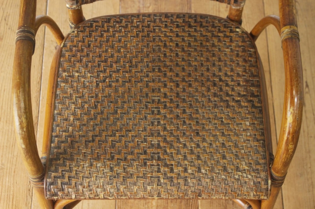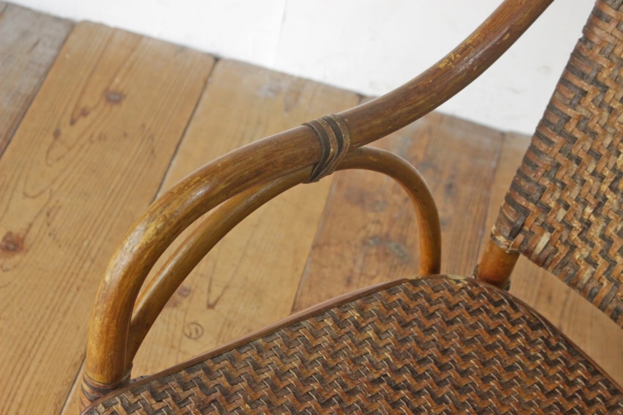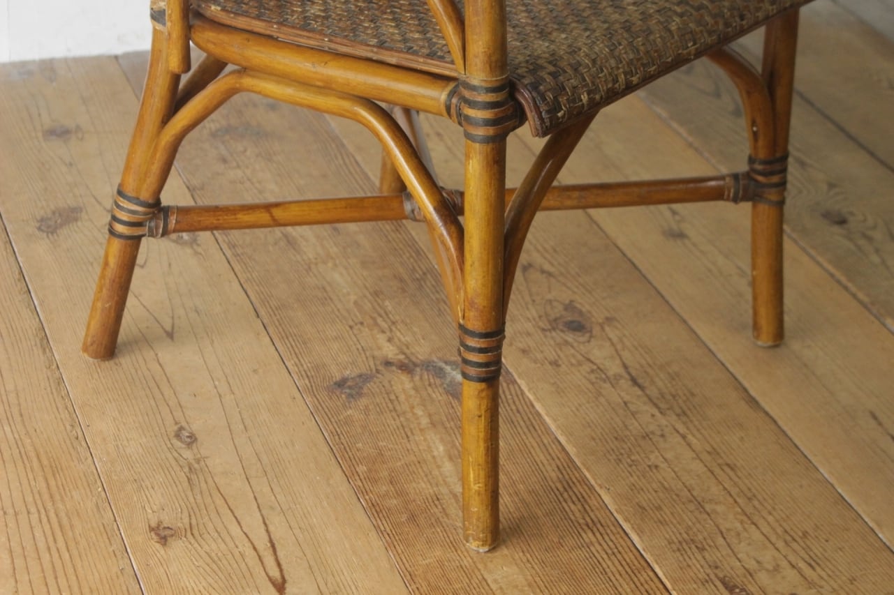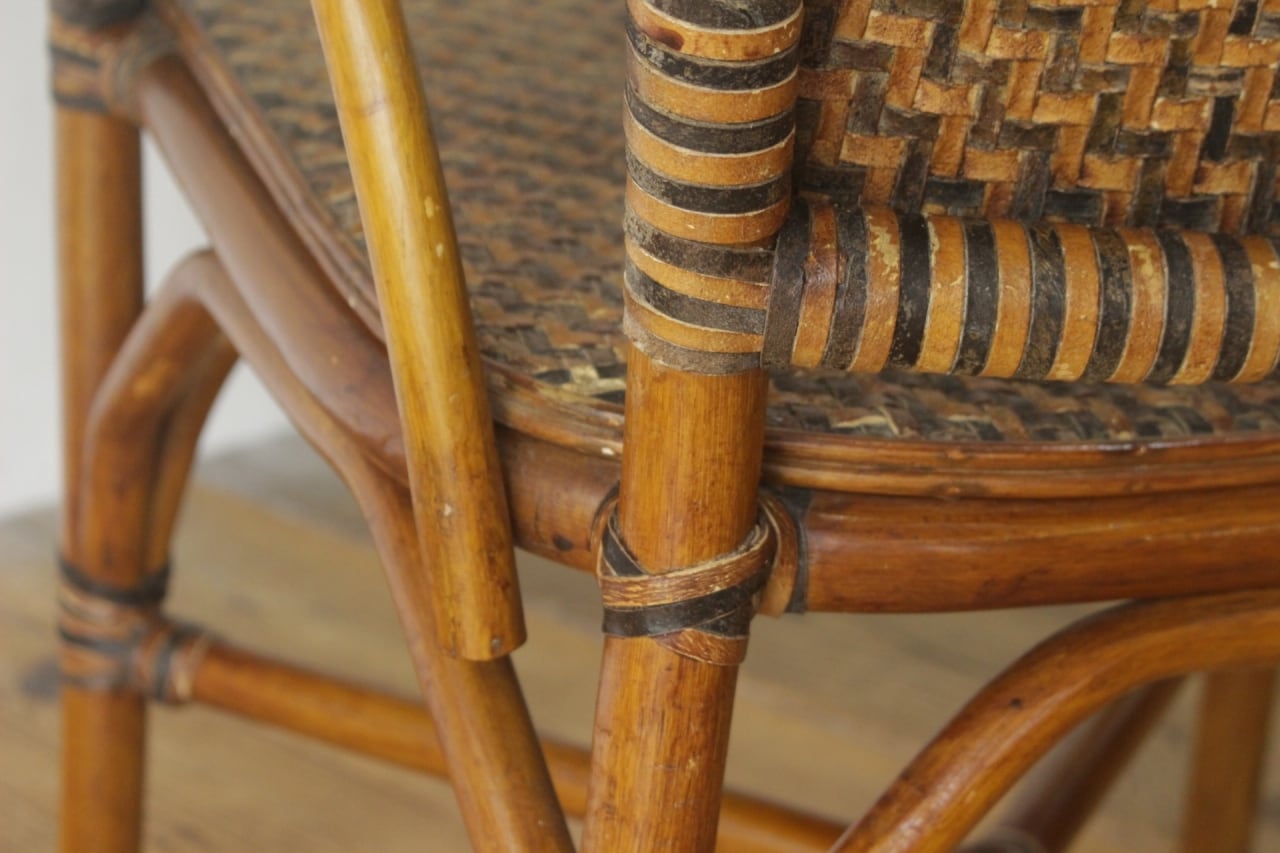 ラタン 籐家具 本革 チェア 椅子 アーム ダイニング リビング レザー ヴィンテージ 4/PDT15140