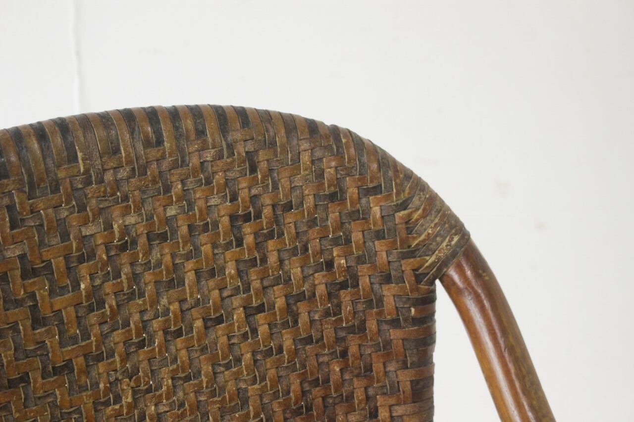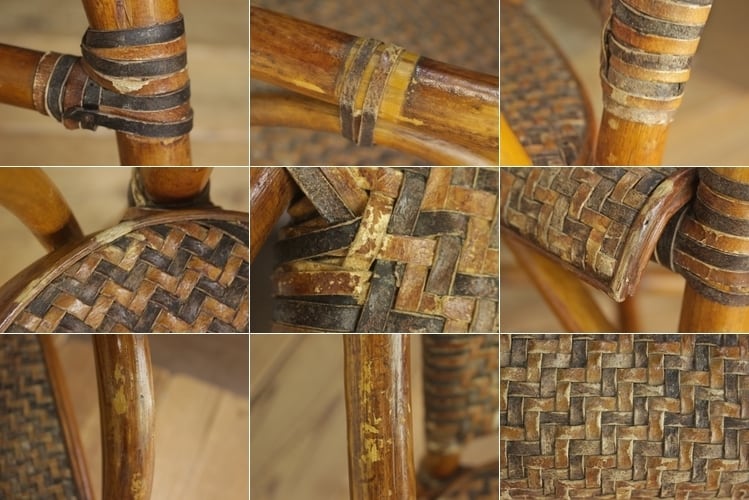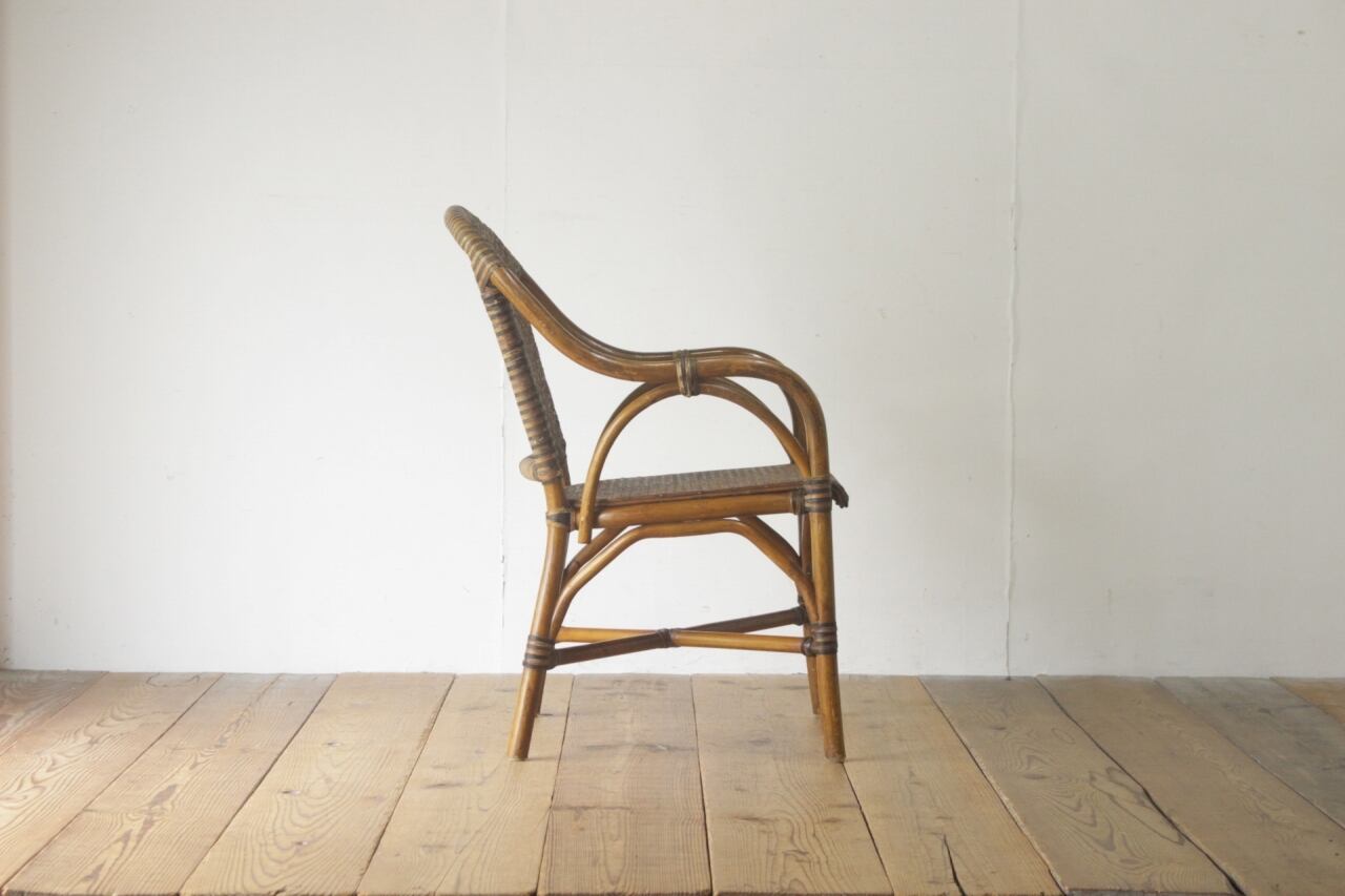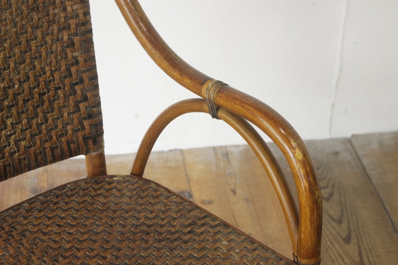 ラタン 籐家具 本革 チェア 椅子 アーム ダイニング リビング レザー ヴィンテージ 4/PDT15140