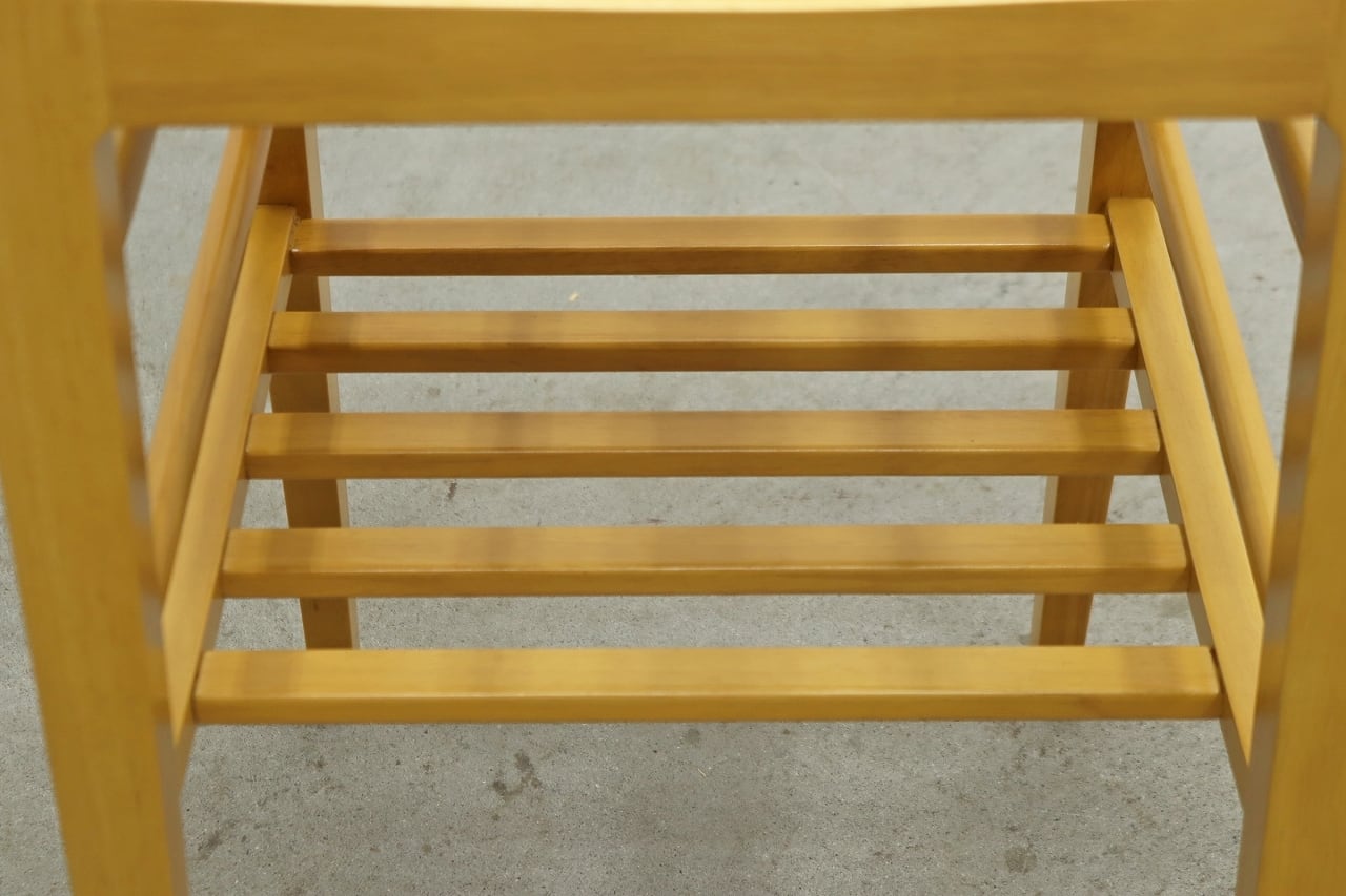 座面下には荷物を置く事が出来る棚板が備えられています。