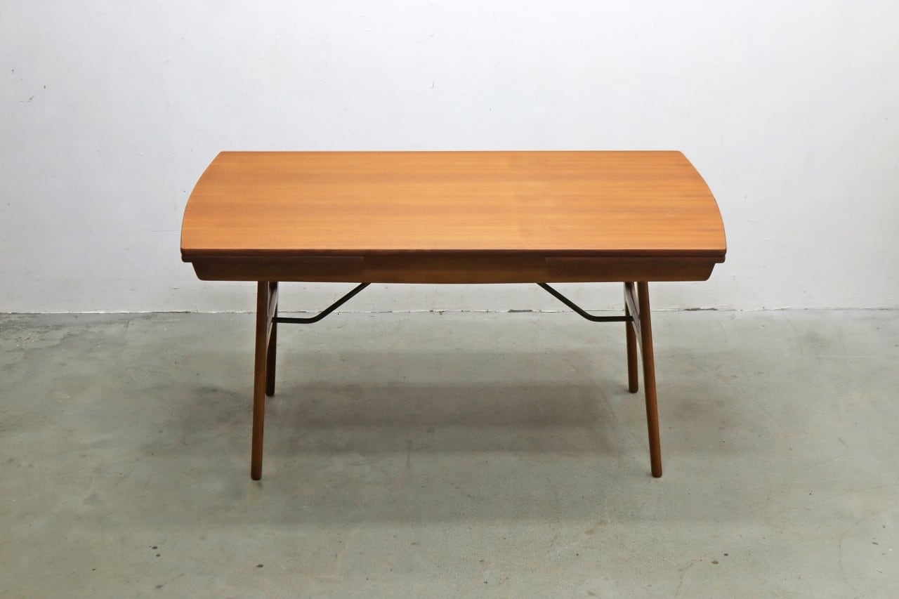 天板にチーク材、フレームや脚部にオーク材を使用。