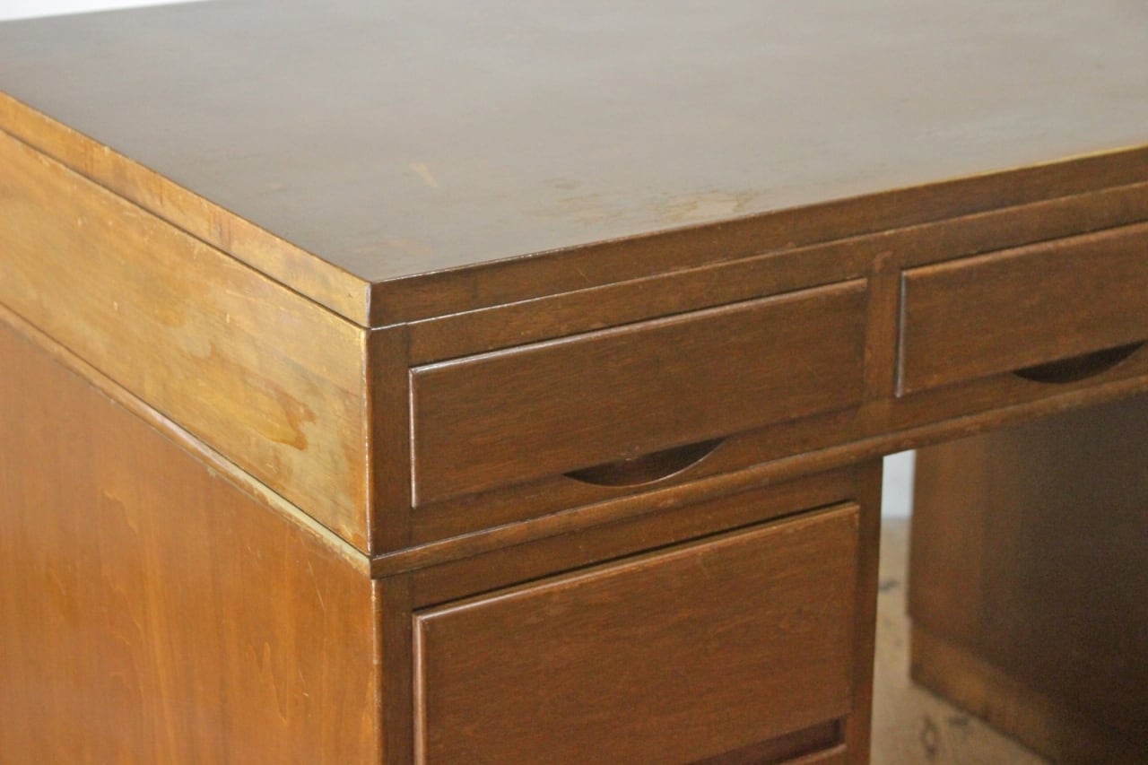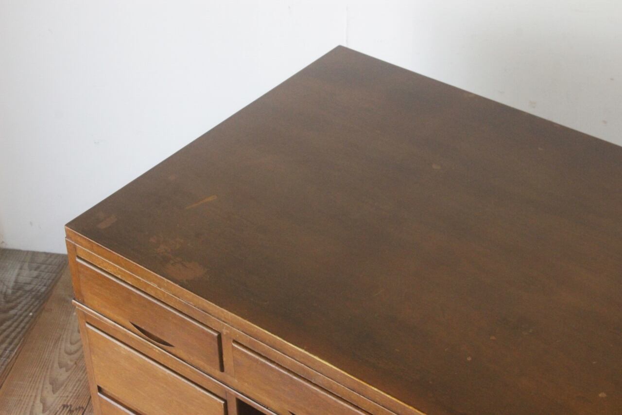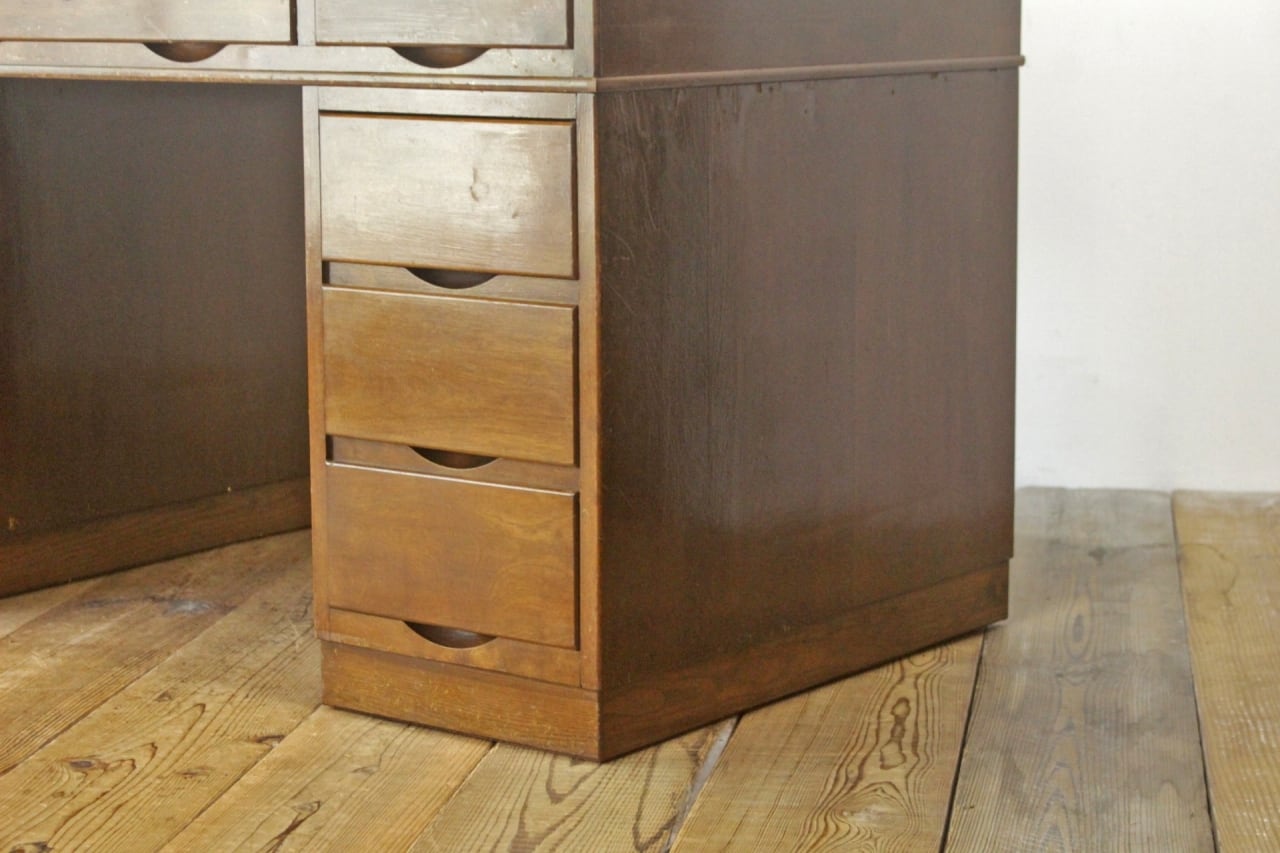 レトロ 両袖デスク 机 書斎 作業台 引き出し 抽斗 9杯 分割可能 木製 古道具 ヴィンテージ/PFT17120