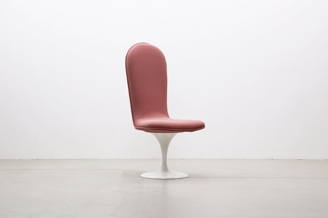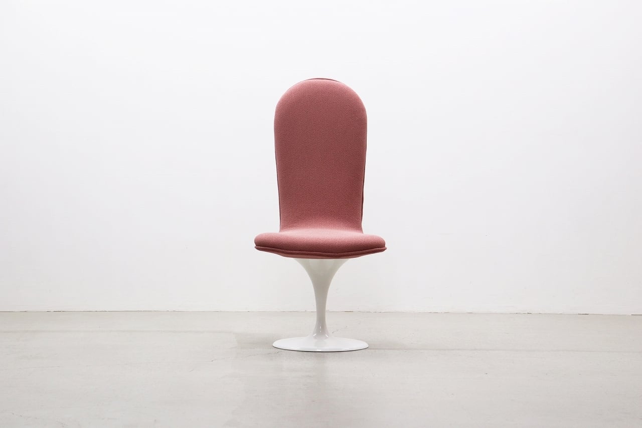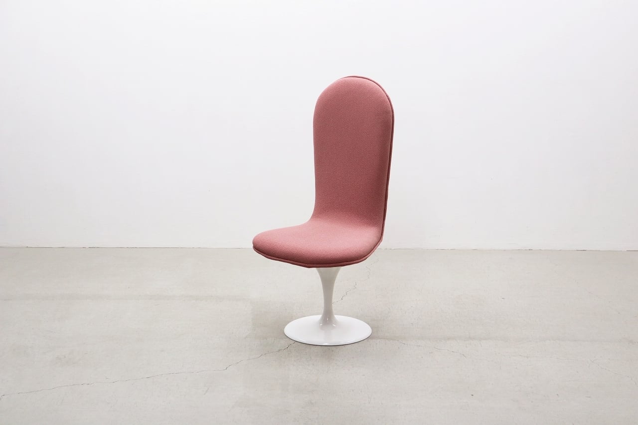 ラッパ型の回転式ベースにハイバックのシートを組み合わせたスペースエイジなデザイン。