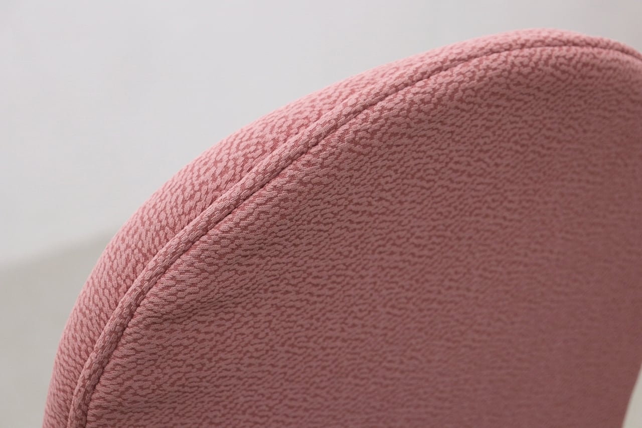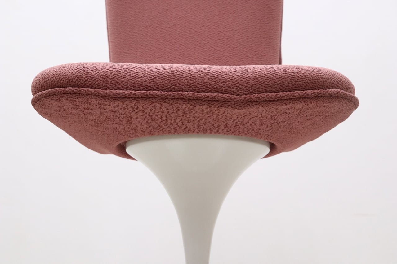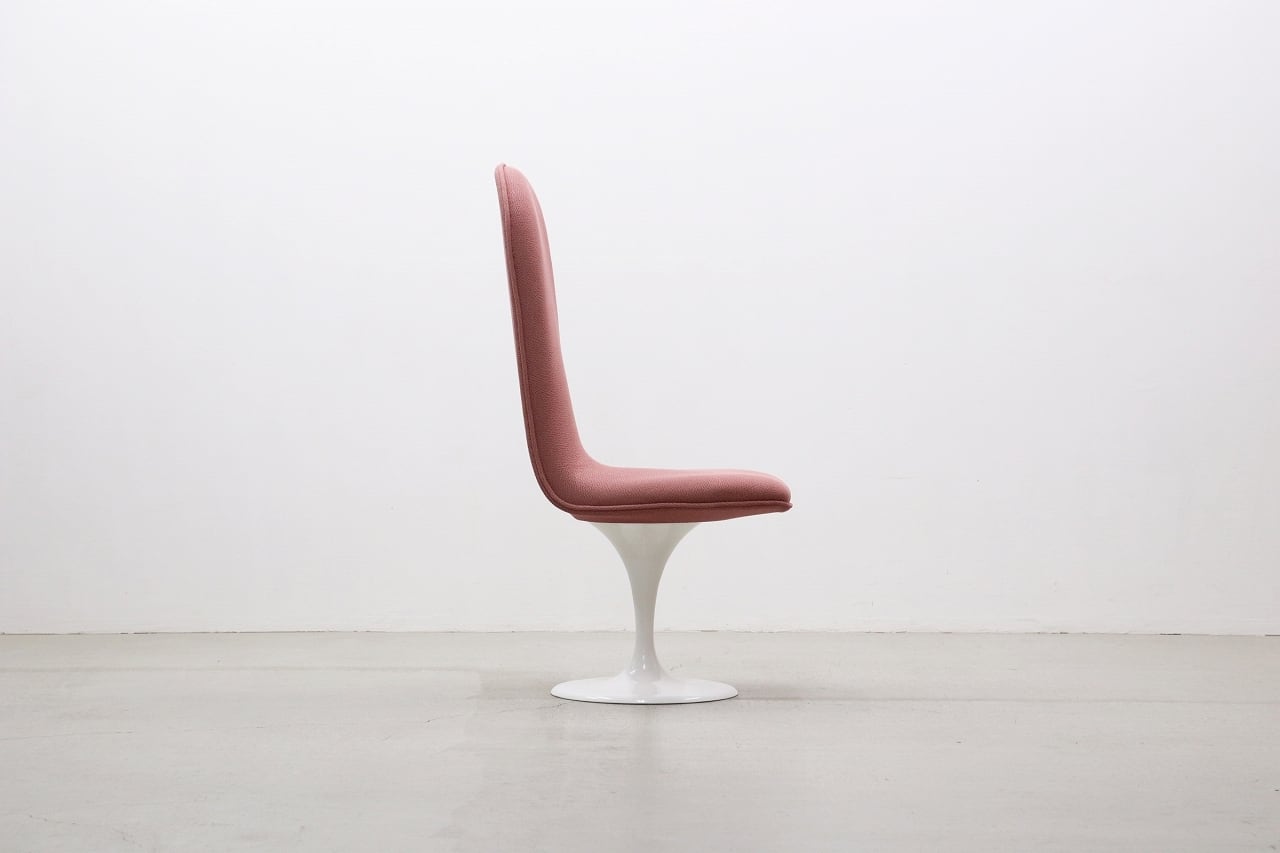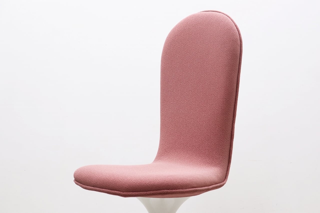 ラッパ型の回転式ベースにハイバックのシートを組み合わせたスペースエイジなデザイン。