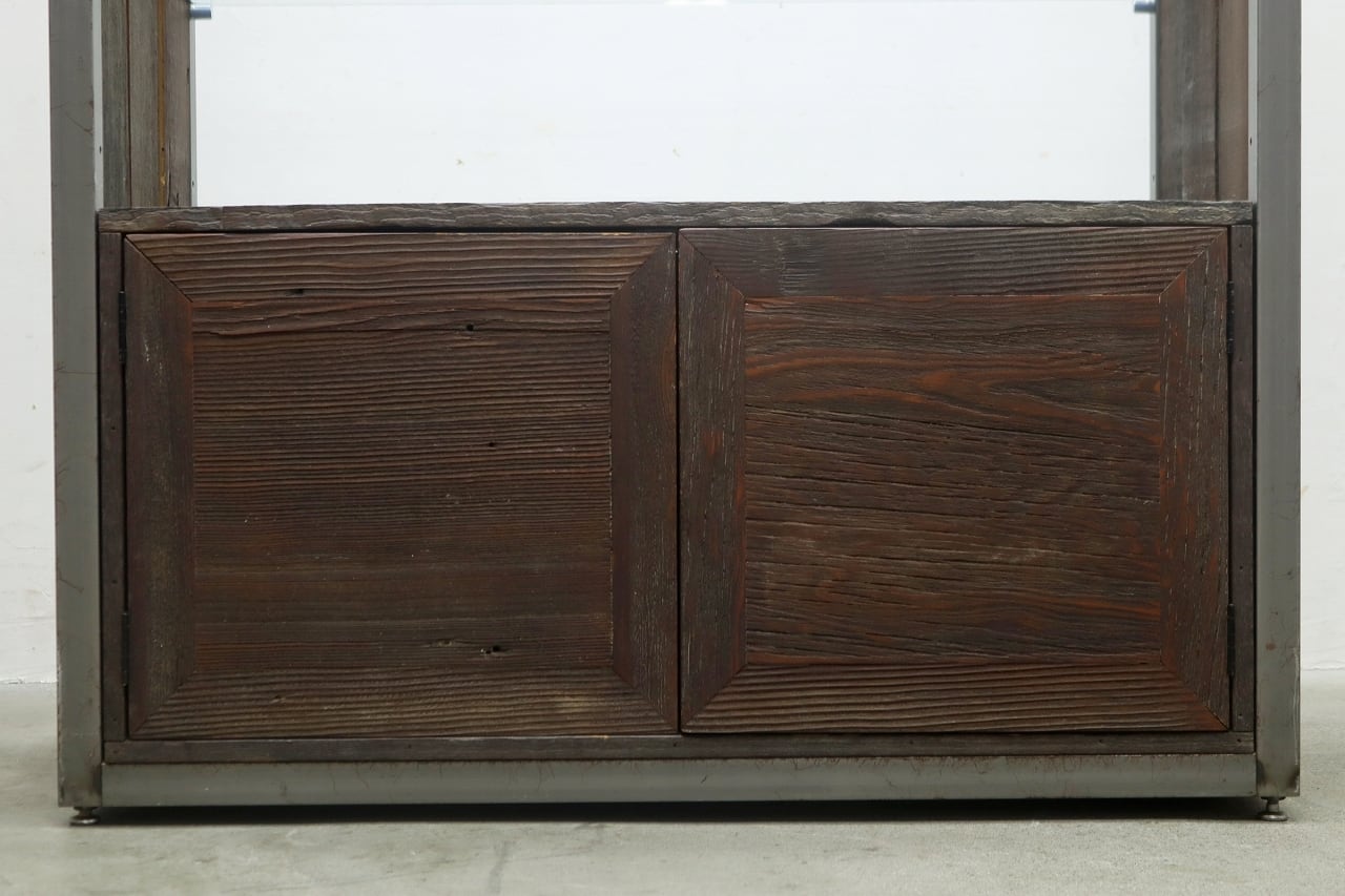 無垢古材 ガラス オープン シェルフ 飾り棚 本棚 食器棚 ラック 店舗什器 ヴィンテージ PHT12056