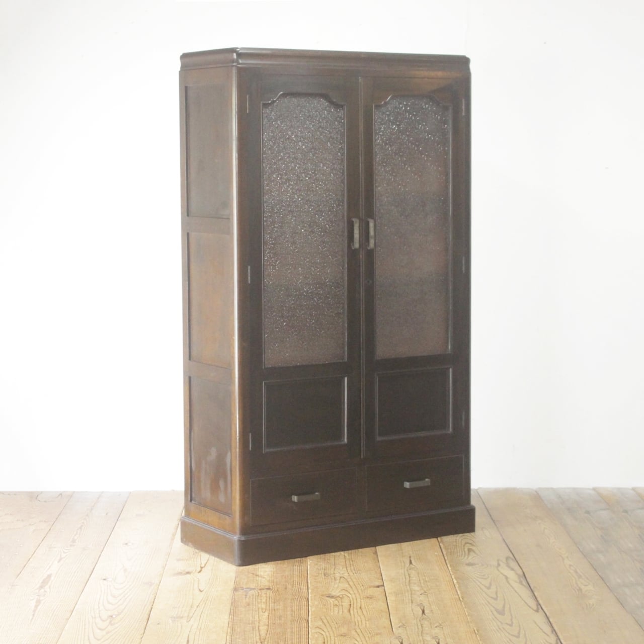 レトロ ガラスキャビネット 本箱 収納 食器棚 ラック ダイヤガラス 引き出し 抽斗 2杯 木製 ヴィンテージ/PHT12065