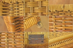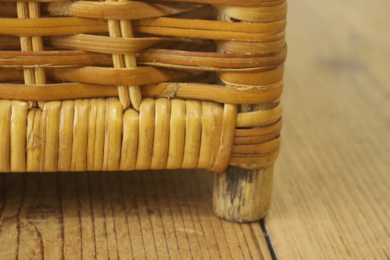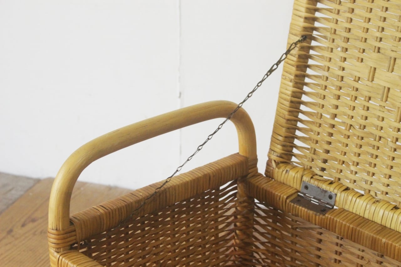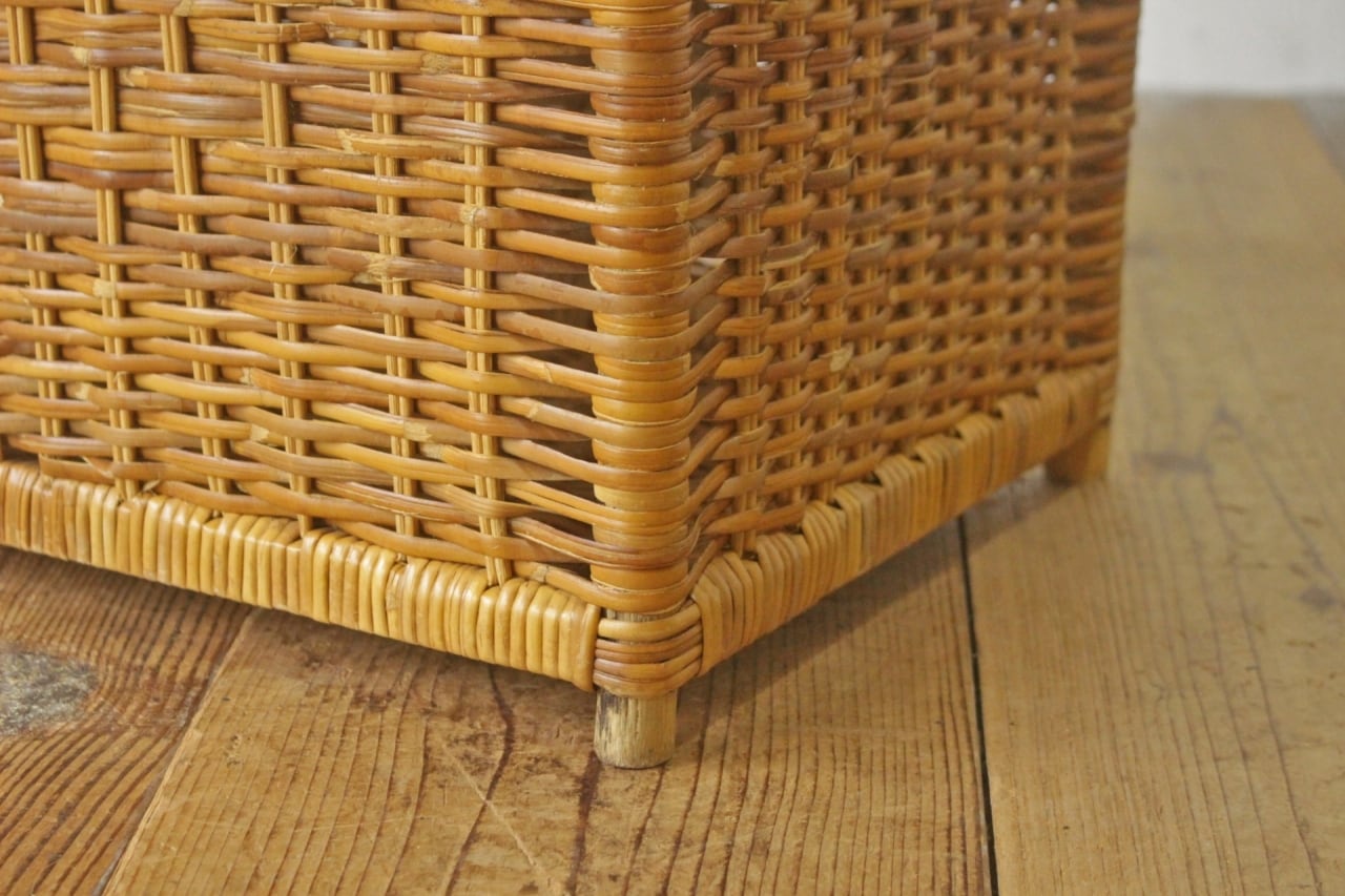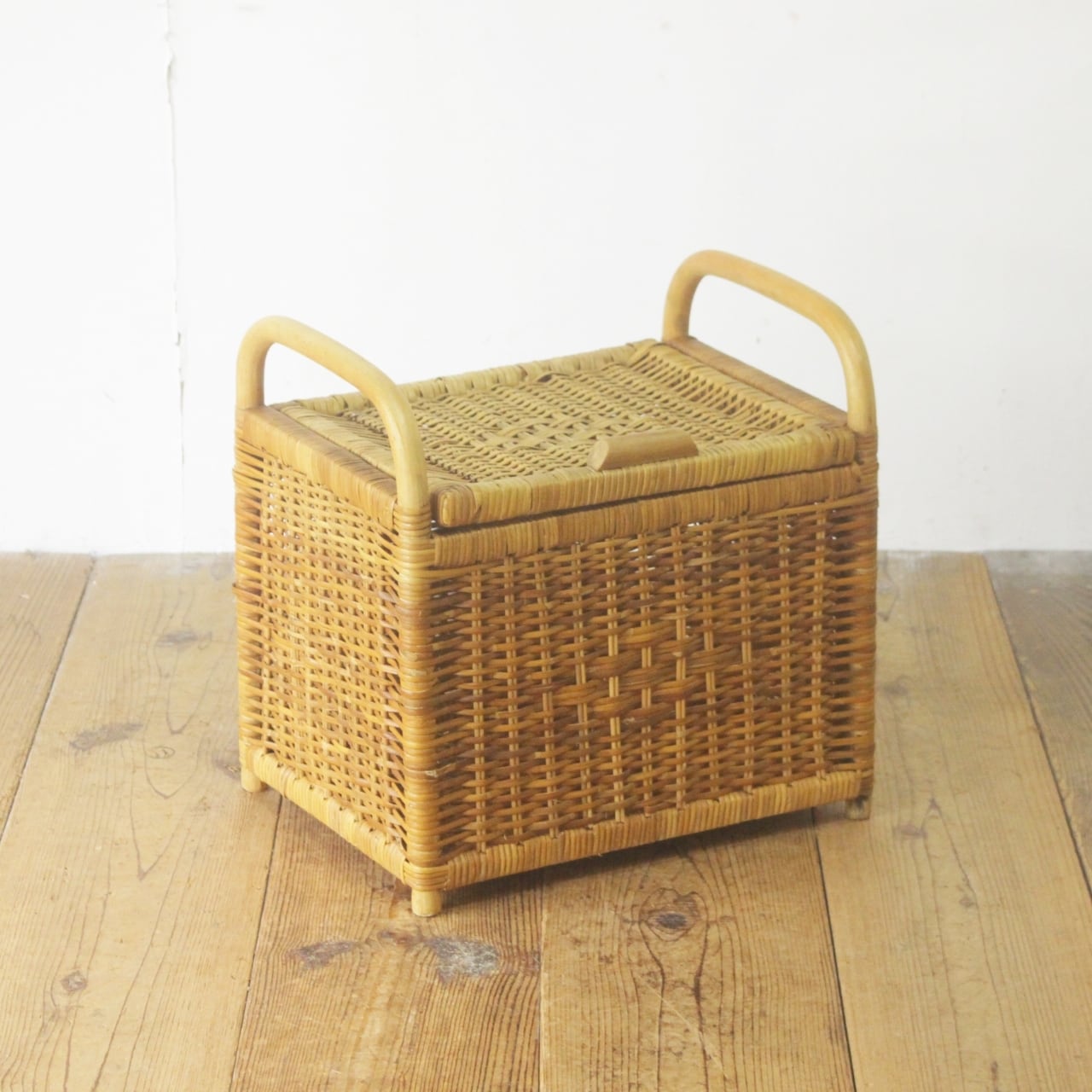 ラタン ランドリー バスケット 小振り 蓋付き脱衣かご 籠 ラック 籐家具 収納 ヴィンテージ/PHT12076
