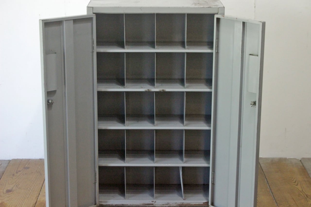 ヴィンテージ インダストリアル ツールキャビネット ツーリングラック 升目 工具 パーツ 収納 スチール