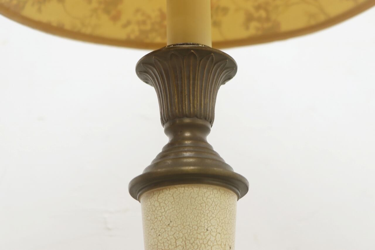 くすんだゴールドカラーのベースにクラック加工が施された支柱、花柄のシェードを組み合わせたクラシカルなデザイン。