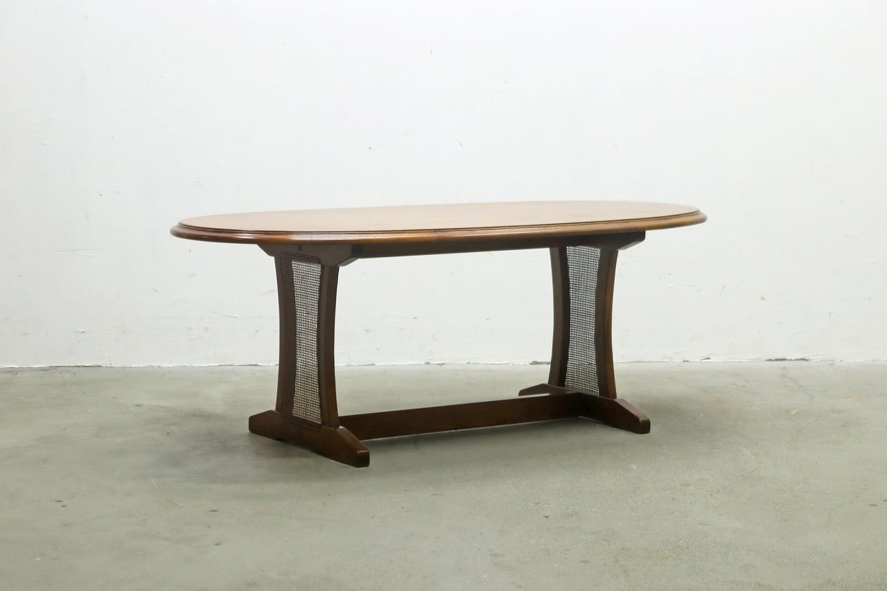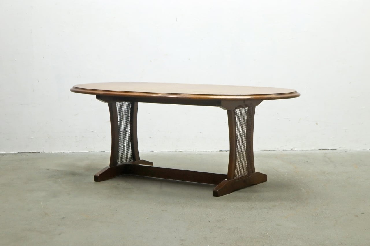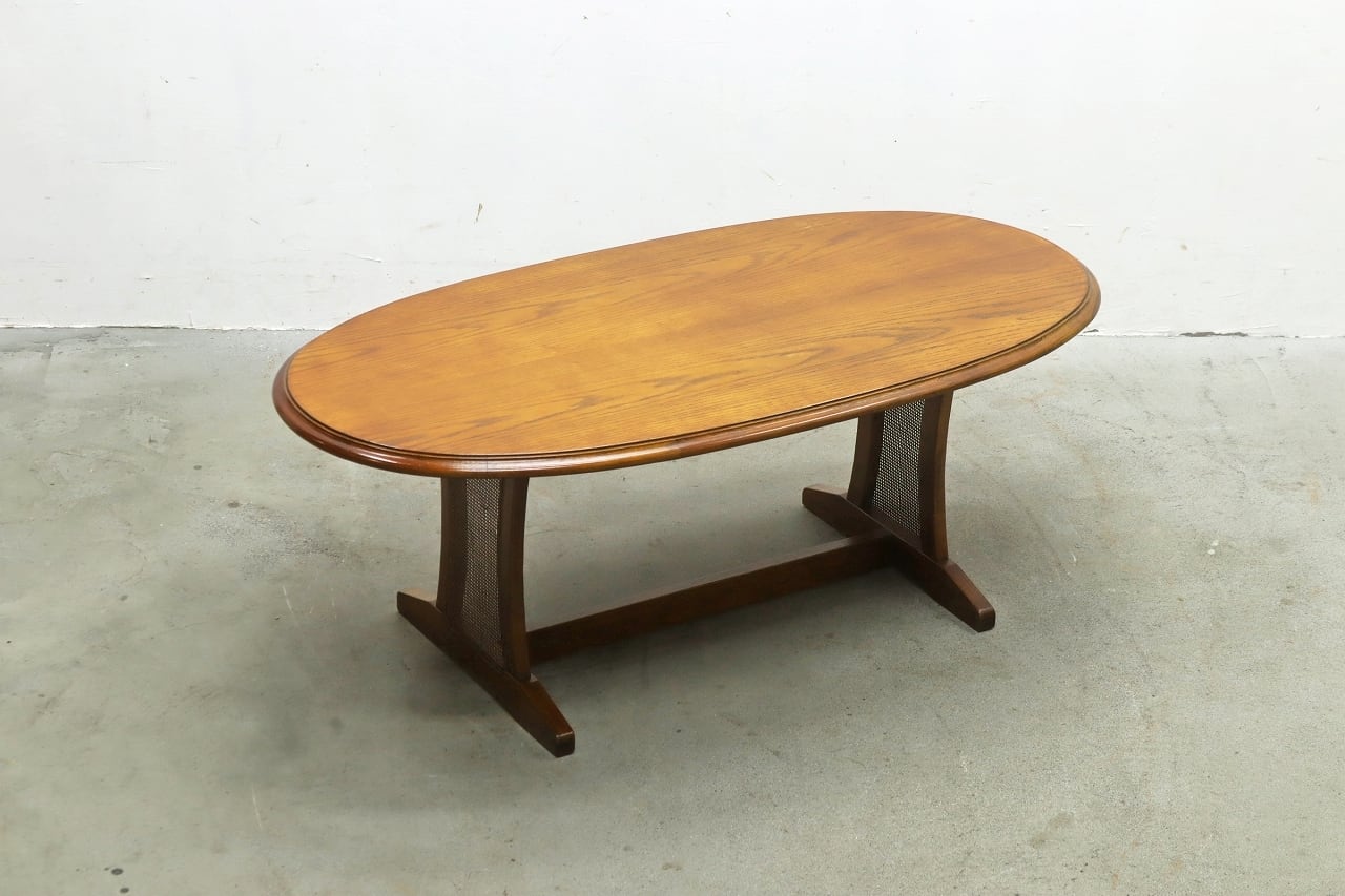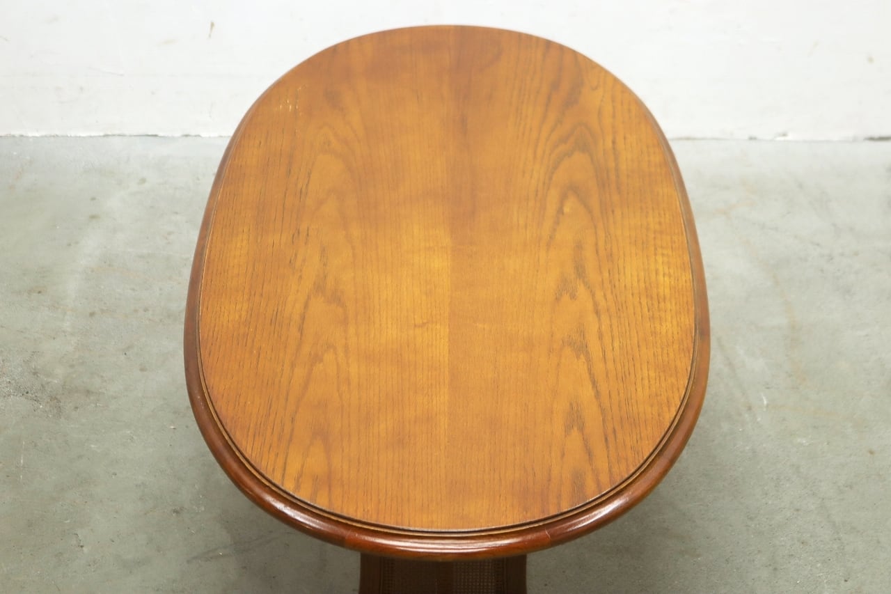 柔らかな印象のオーバル型の天板と、側板に籐を張ったクラシカルなデザインです。