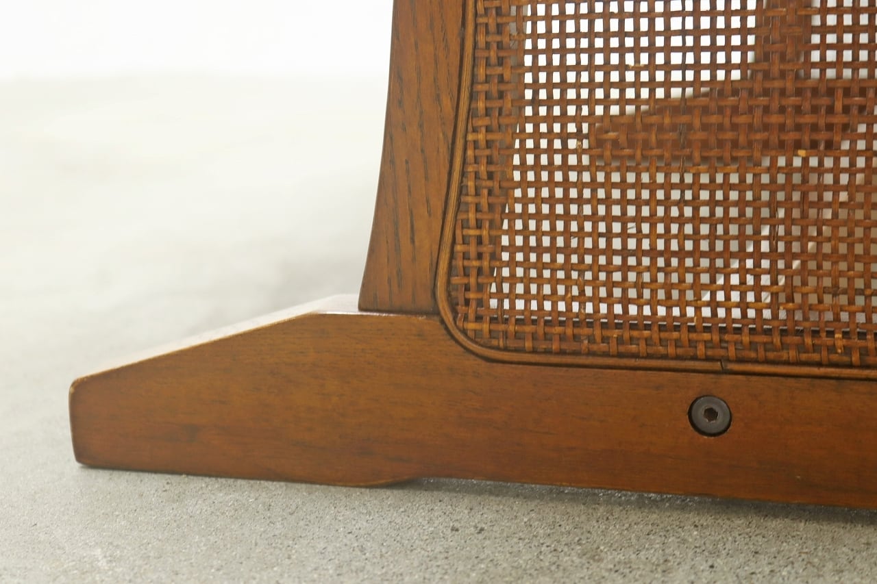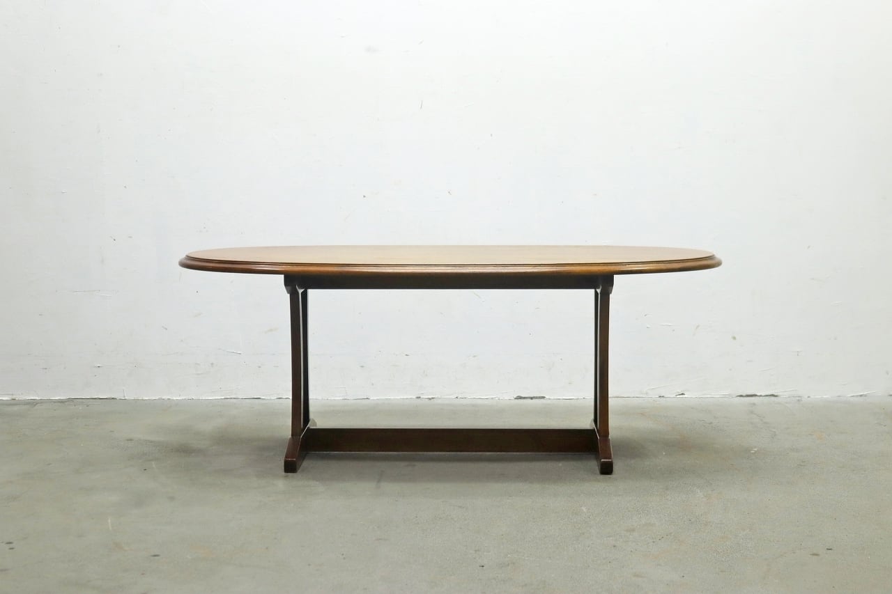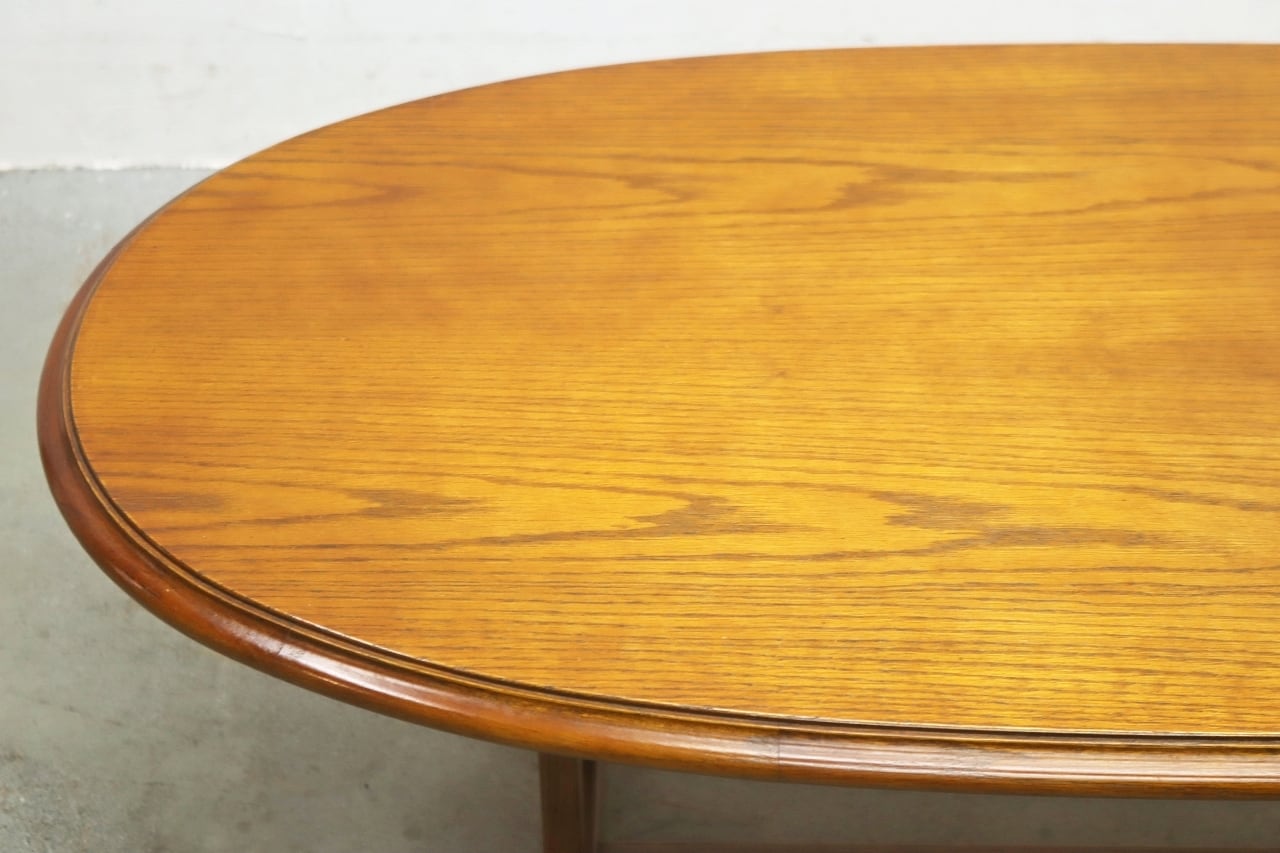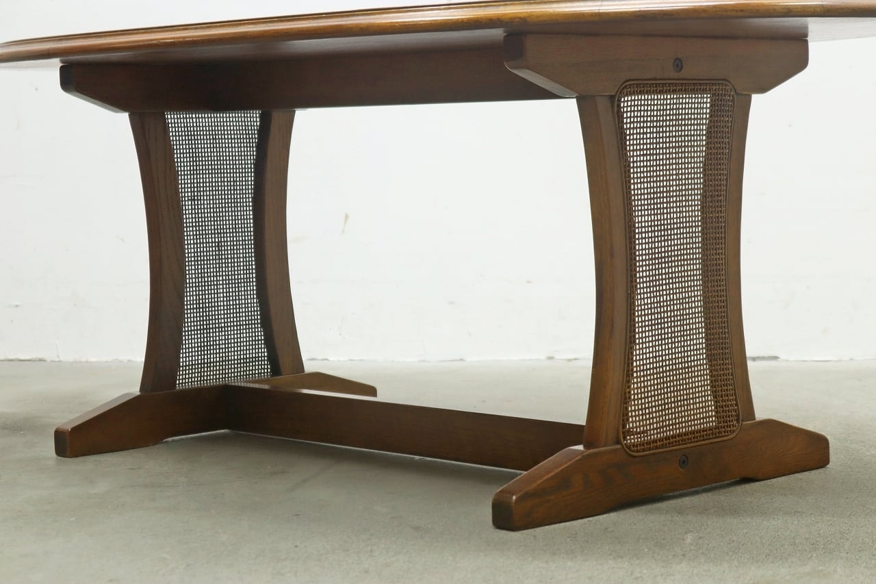 柔らかな印象のオーバル型の天板と、側板に籐を張ったクラシカルなデザインです。