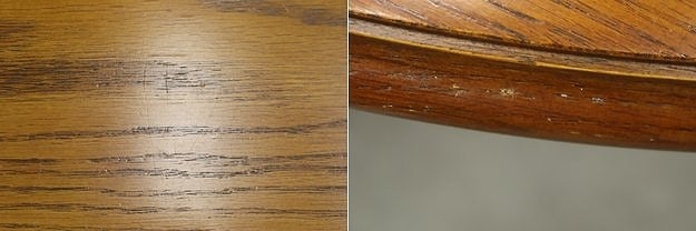 一部天板の塗膜に浮き、全体的に傷や擦れはありますが使用に差し支える様なダメージはありません。