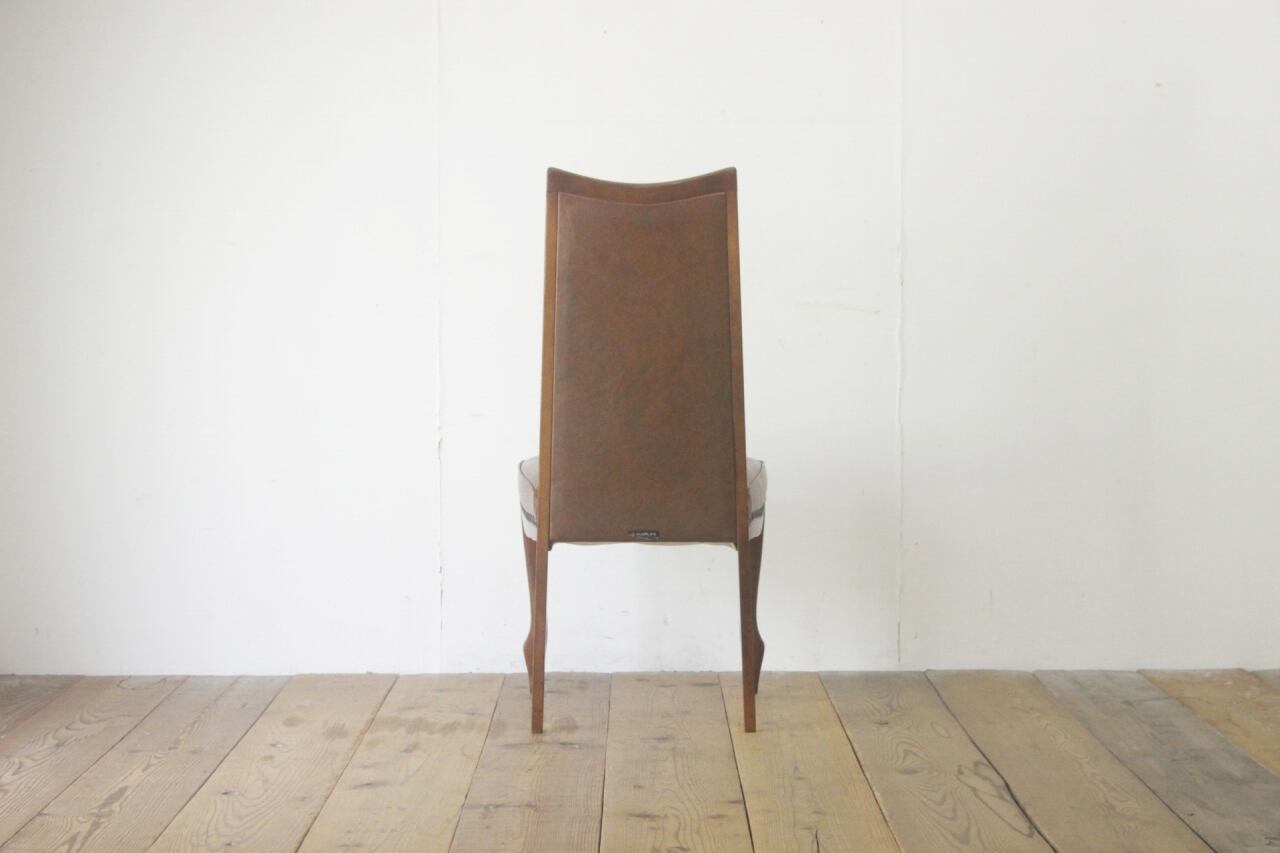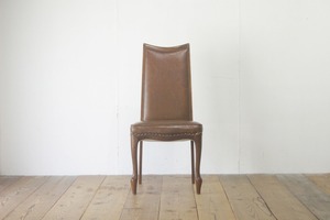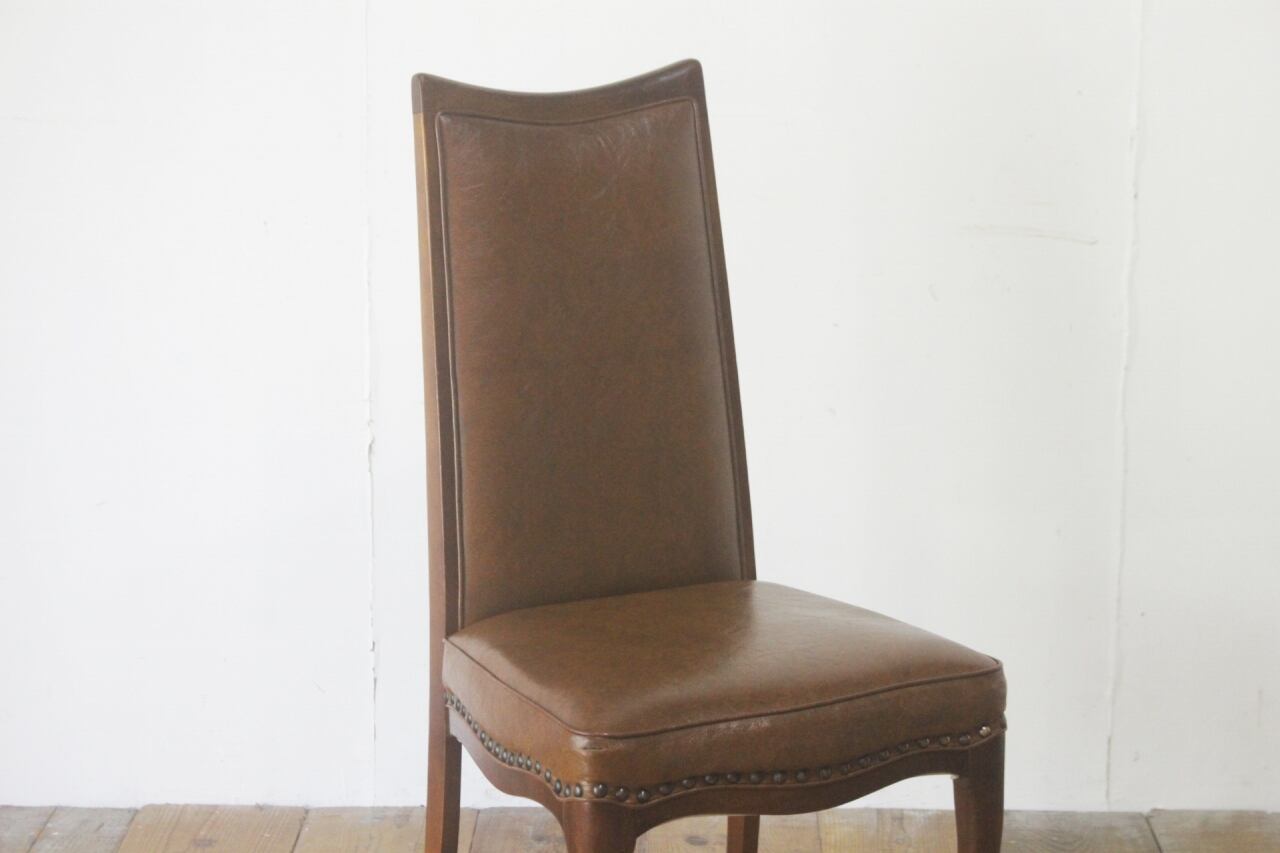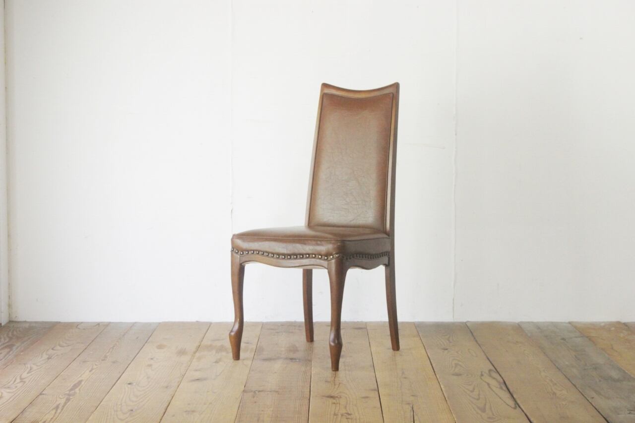 MARUNI マルニ ダイニングチェア 椅子 猫脚 鋲 ハイバック 木製 合皮 レザー 茶色 ブラウン ヴィンテージ