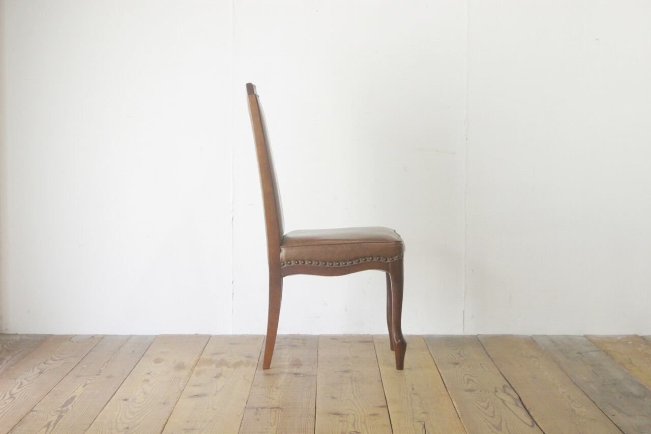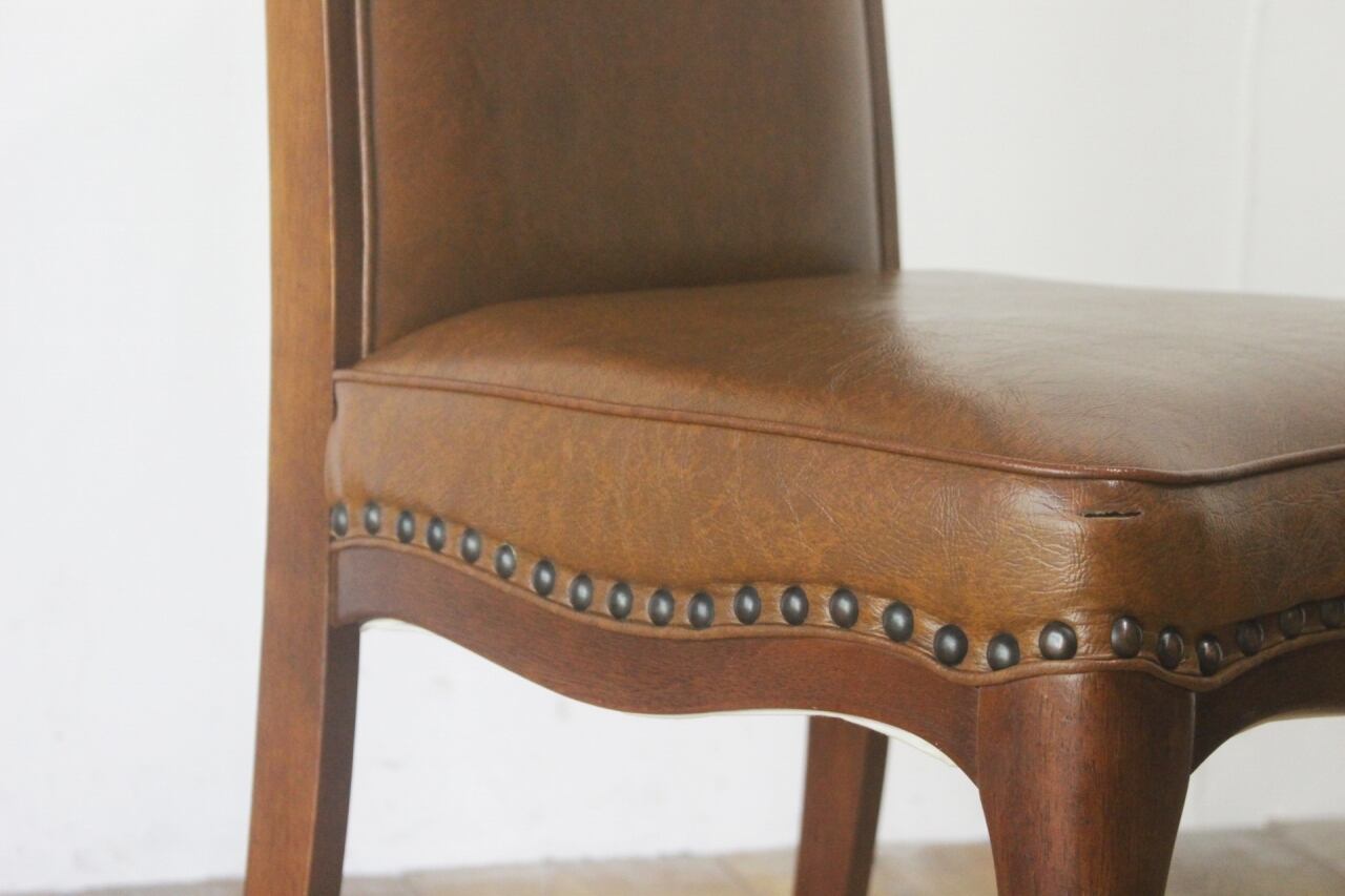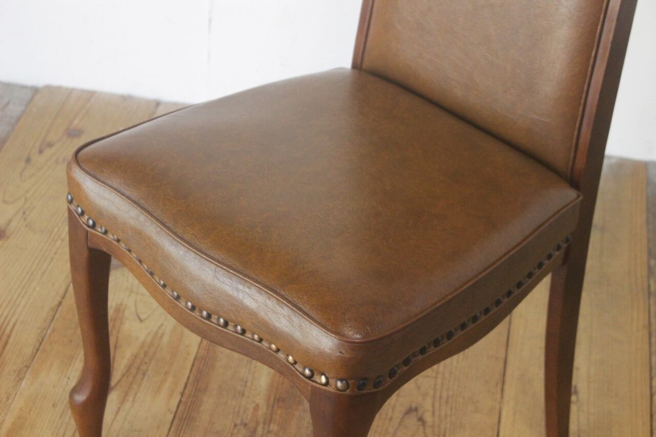 MARUNI マルニ ダイニングチェア 椅子 猫脚 鋲 ハイバック 木製 合皮 レザー 茶色 ブラウン ヴィンテージ
