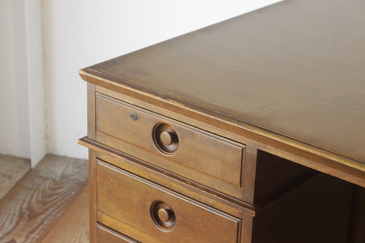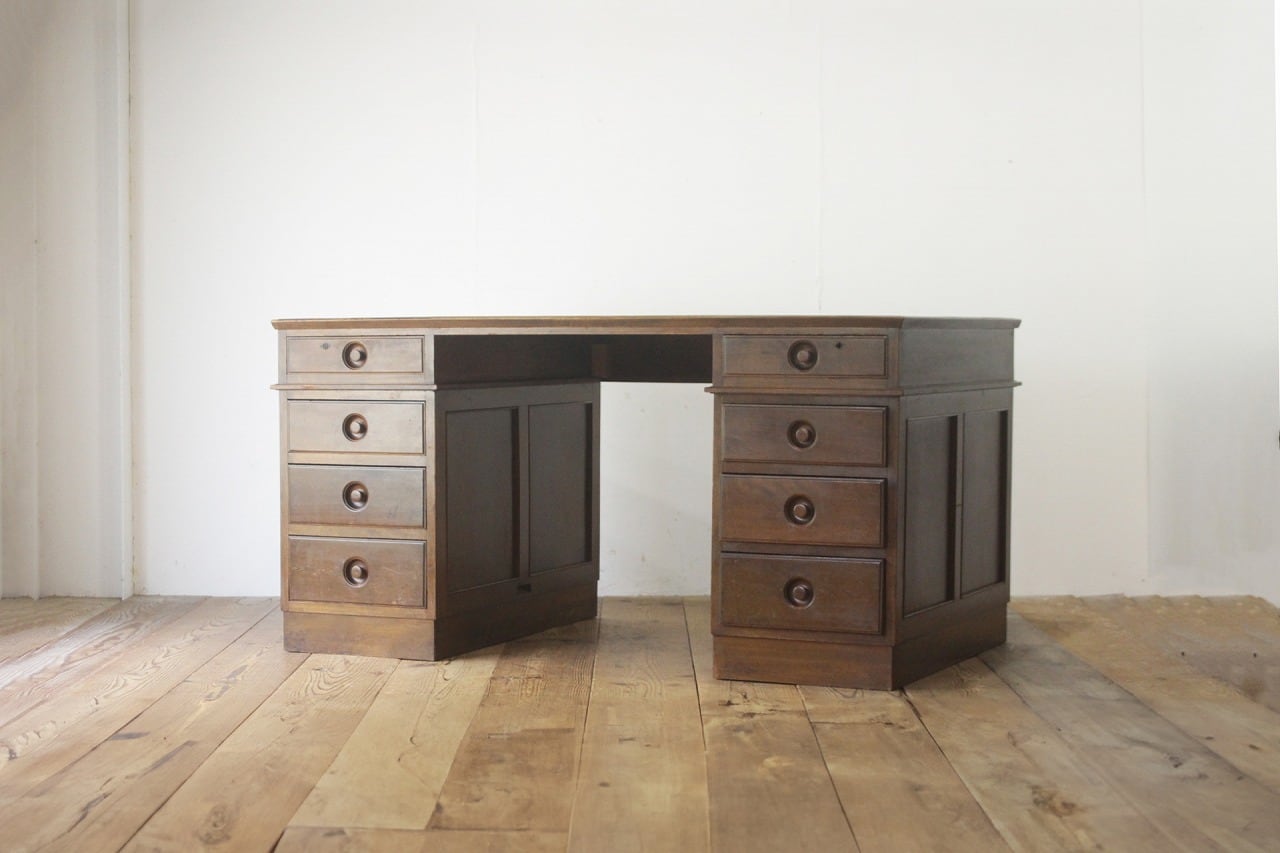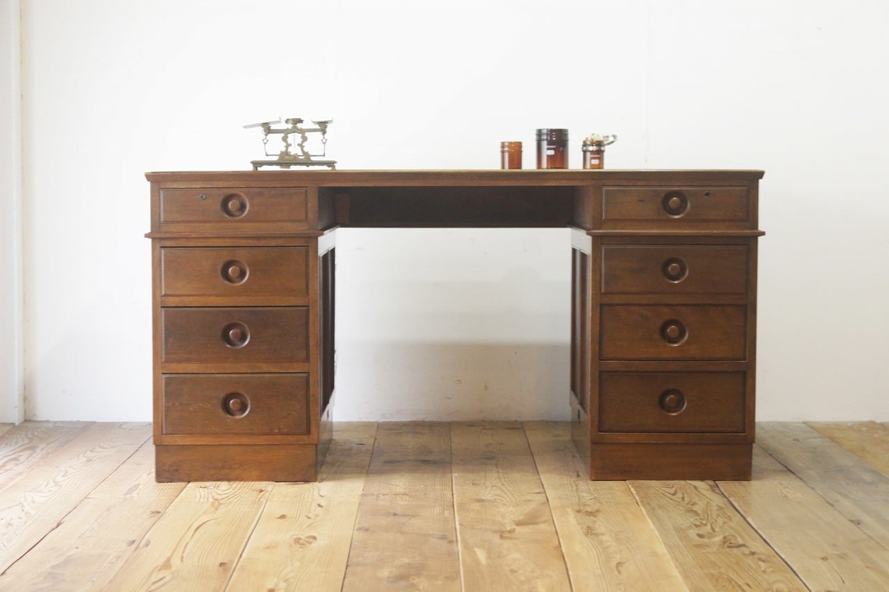 レトロ 両袖デスク 机 書斎 作業台 引き出し 抽斗 8杯 分割可能 木製 古道具 ヴィンテージ