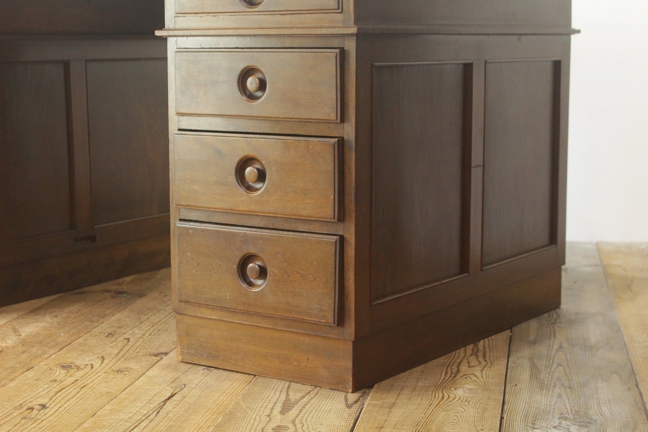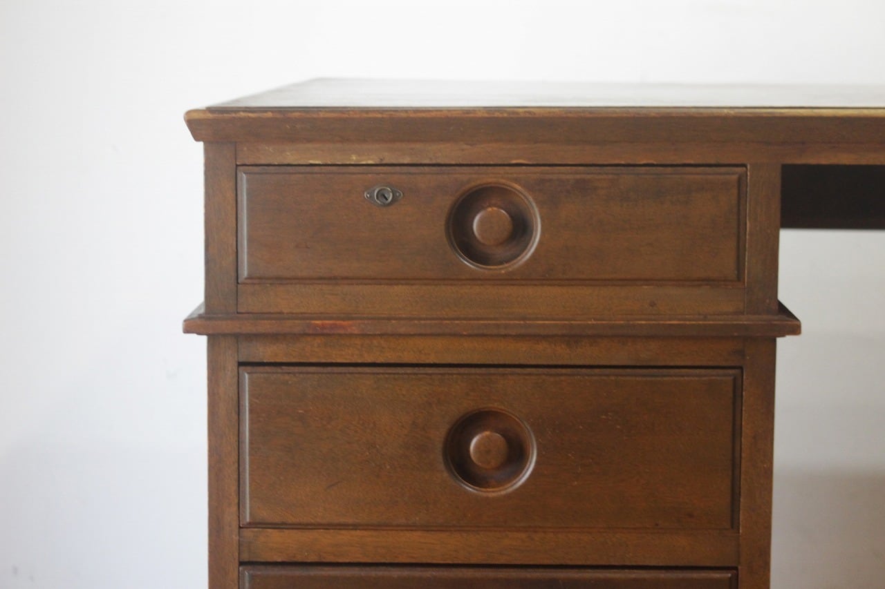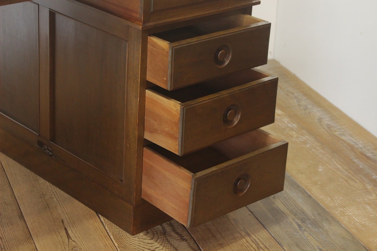 レトロ 両袖デスク 机 書斎 作業台 引き出し 抽斗 8杯 分割可能 木製 古道具 ヴィンテージ
