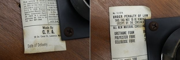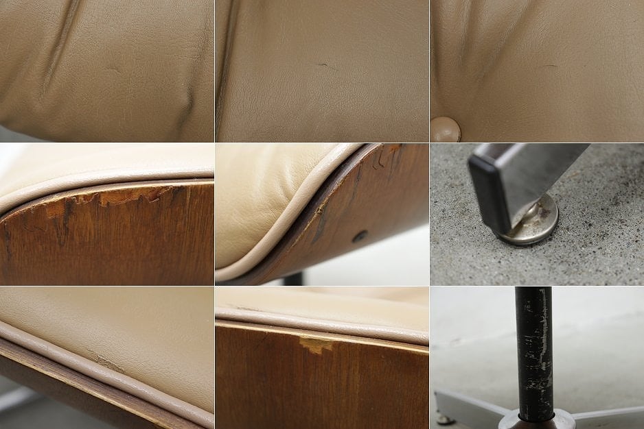 こちらのラウンジチェアはイームズの本家と比べてアームレストが薄く、アームをアイアンプレートで支えている点や、レッグにシンプルな角パイプ、プライウッドにローズウッドではなくウォールナットを使用する等様々な違いが見られます。