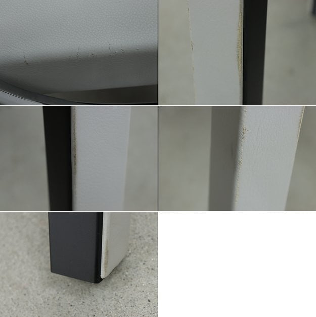 脚、座面、背もたれは、柔らかく上質なグレーのレザーが張られており、体を優しく支えてくれます。