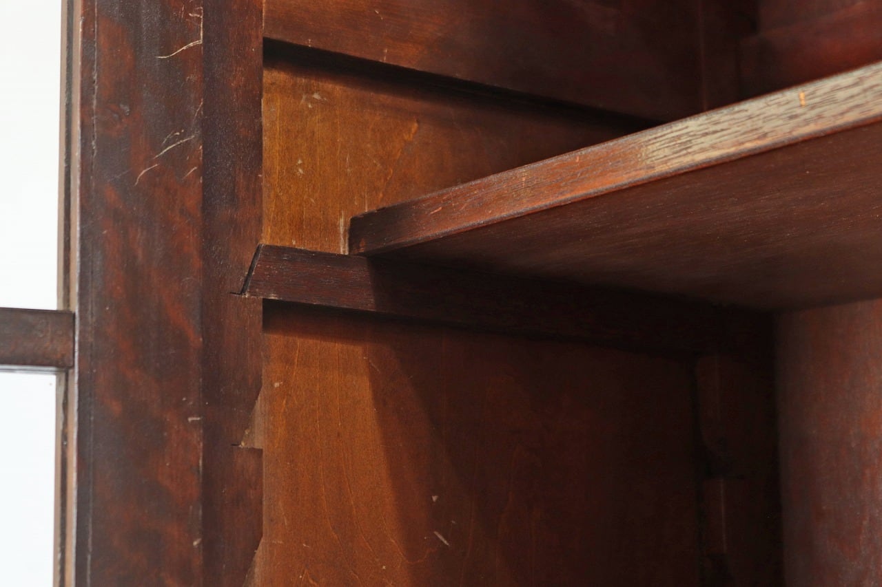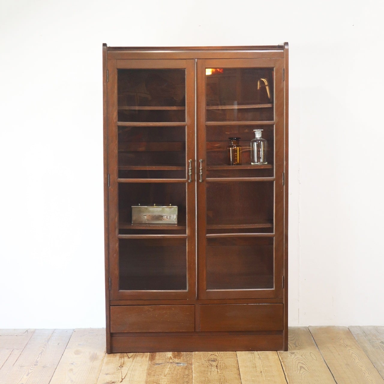 レトロ ガラスキャビネット 本箱 収納 食器棚 ラック 引き出し 抽斗 2杯 木製 ヴィンテージ/PIT16117