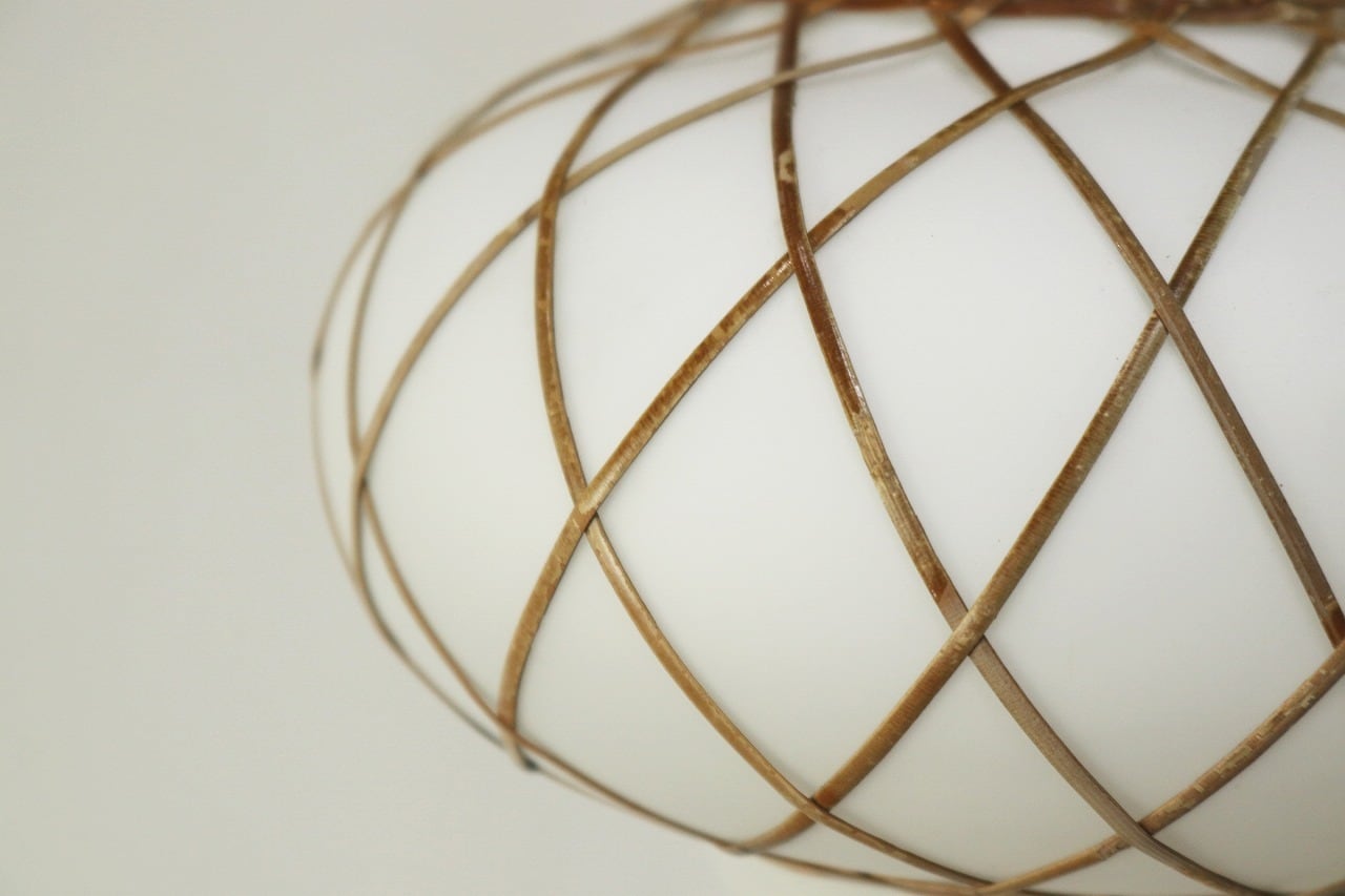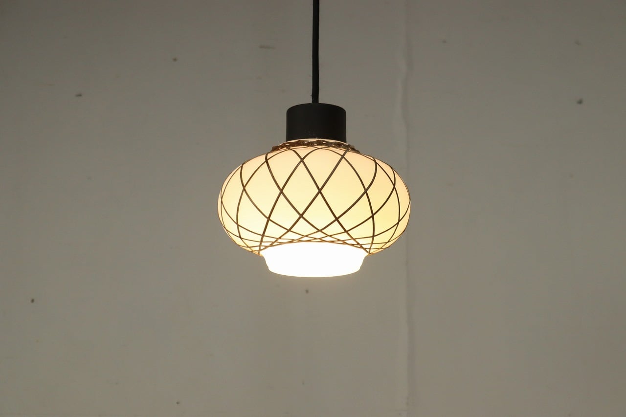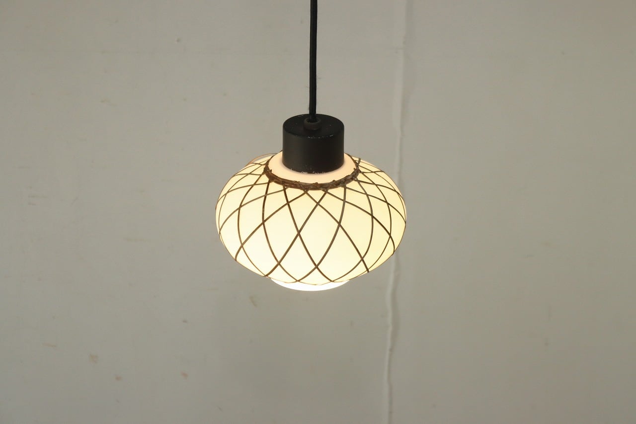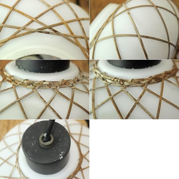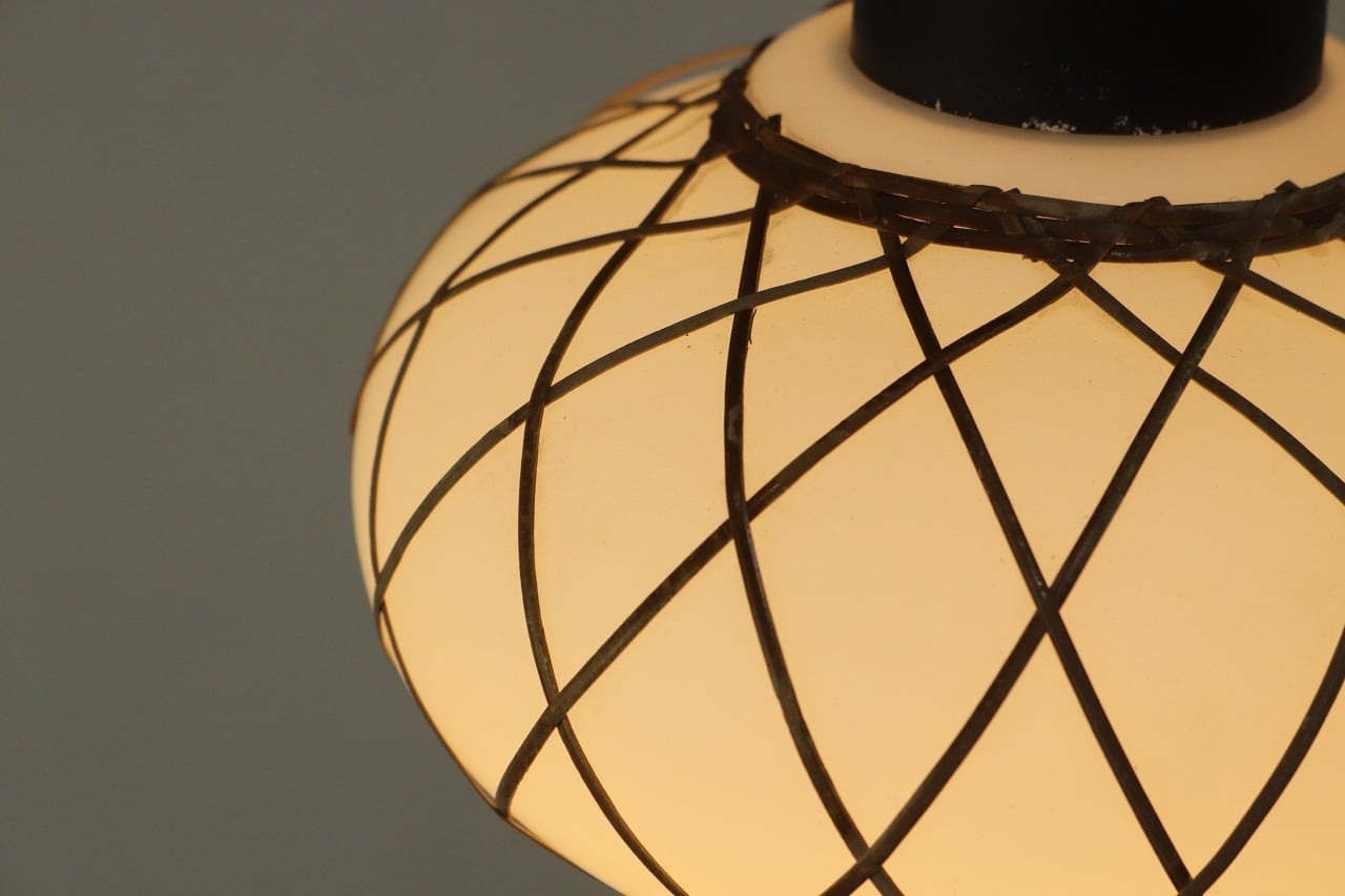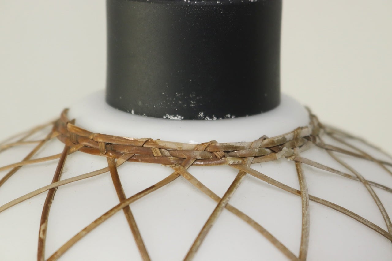 レトロ ペンダントランプ ライト 吊り下げ 照明 竹細工 シェード 乳白ガラス 和モダン ヴィンテージ 2