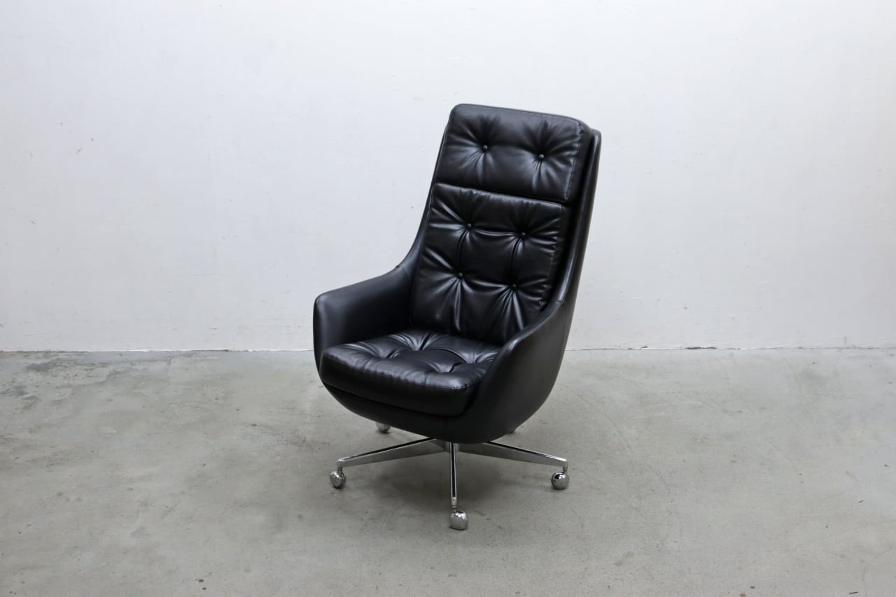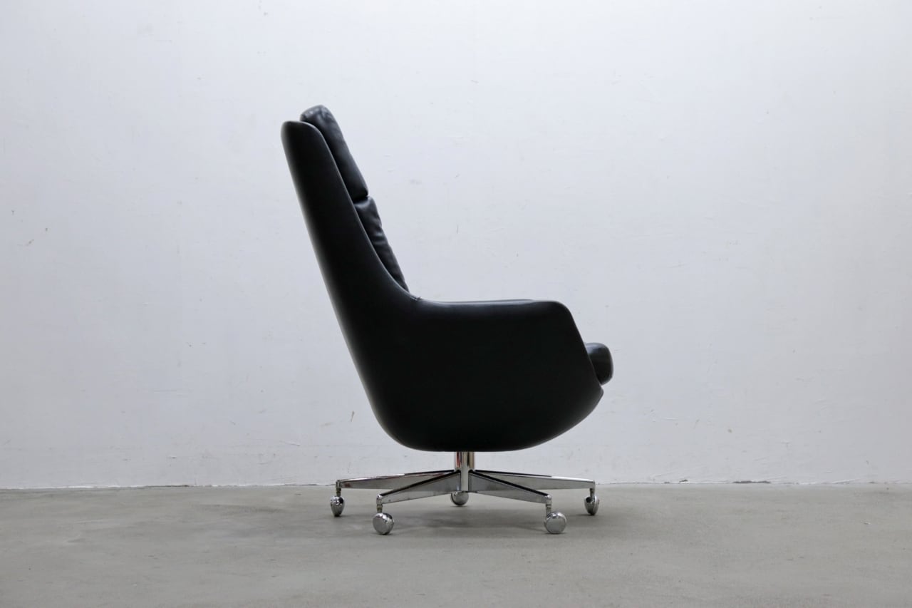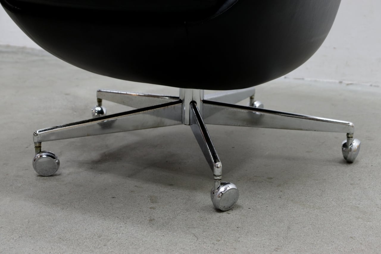 クロームメッキのキャスターベースはミッドセンチュリーを感じさせる佇まい。