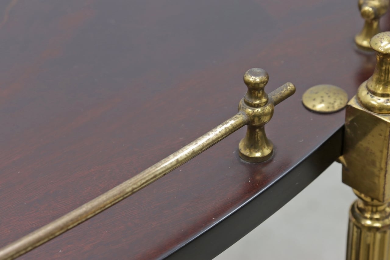 コントラストのはっきりした木目の突板天板に、ゴールドの部材を組み合わせた高級感あふれる仕上がり。