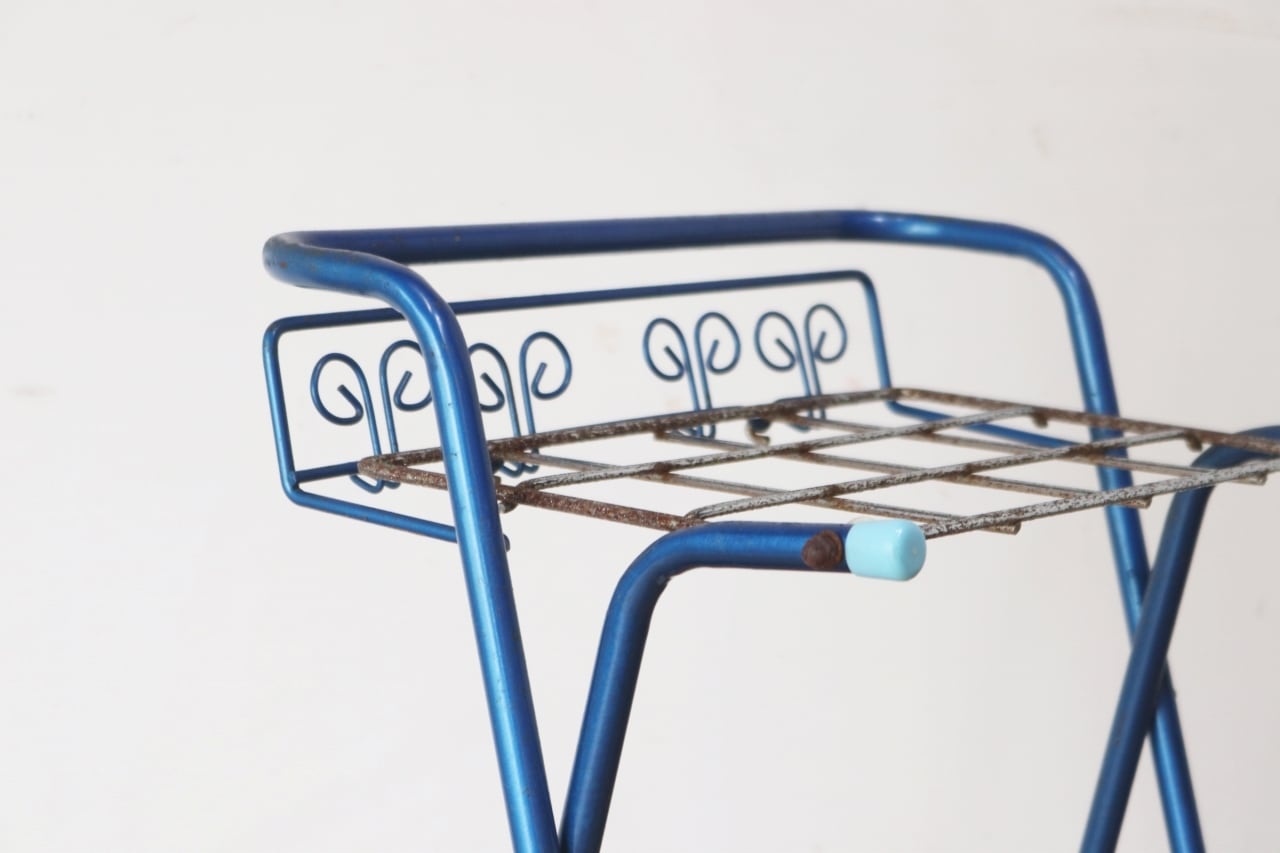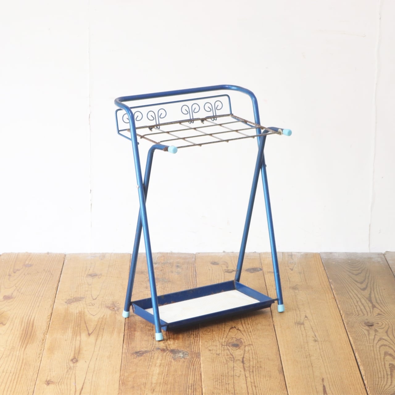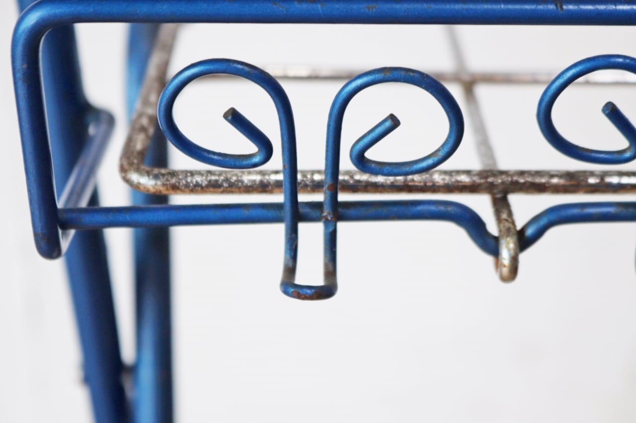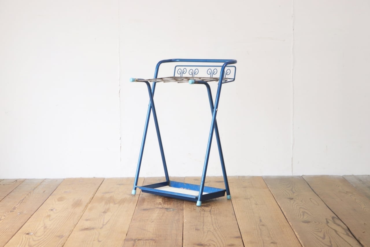 レトロ 傘立て アンブレラスタンド フック付き 金属製 ブルー 青 ヴィンテージ/OIK30188