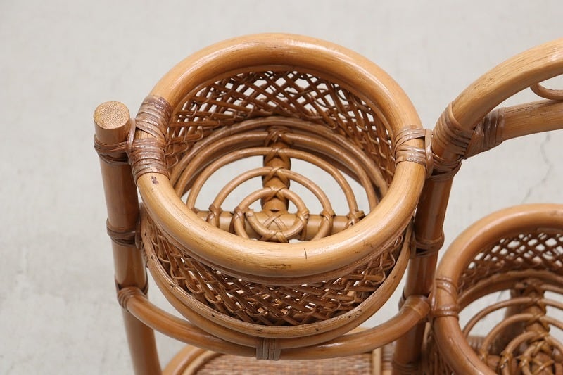 【沼津店】レトロ ラタン 籐 プランターラック 花台 植物 展示台 ヴィンテージ PJK11067
