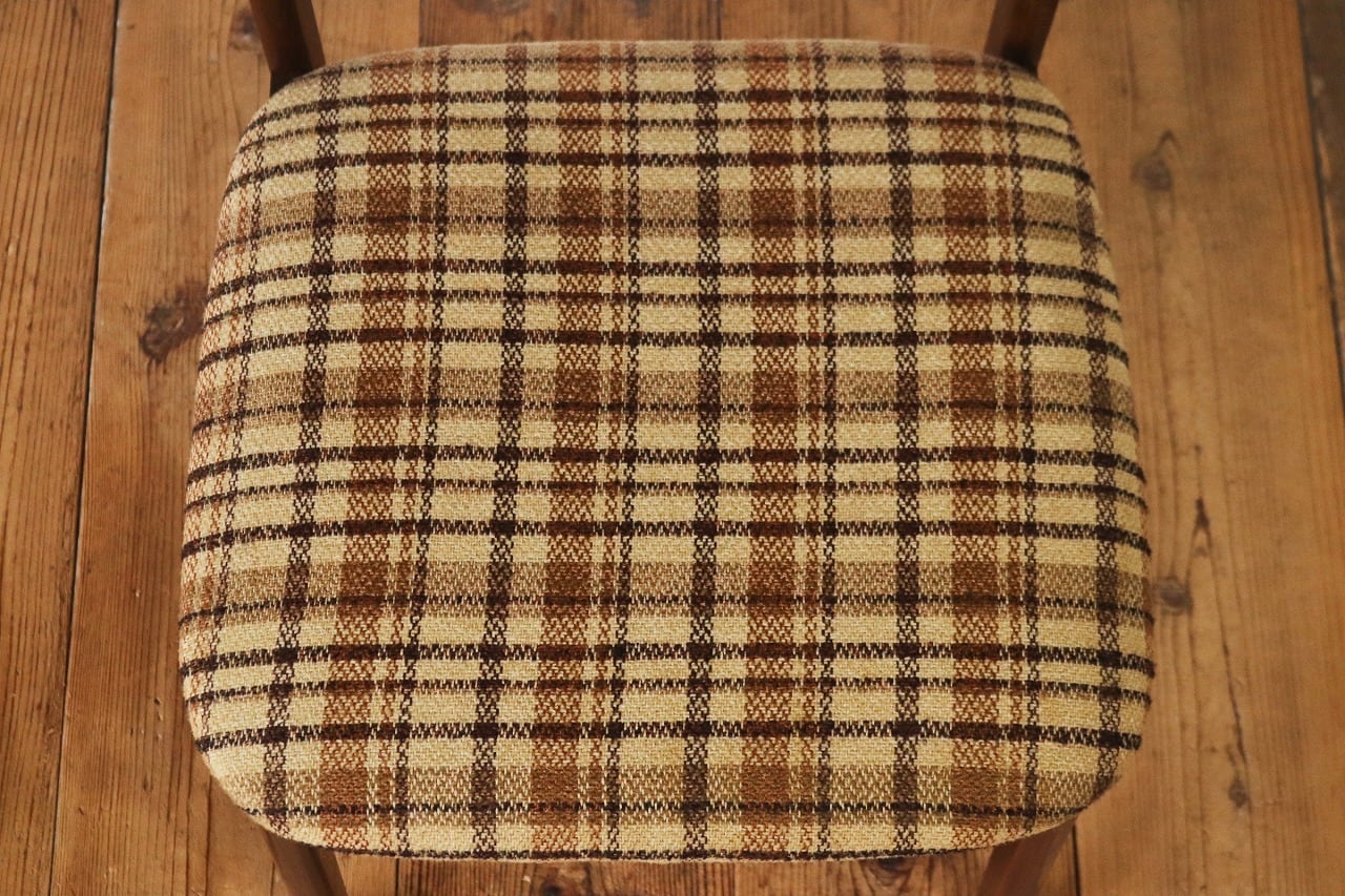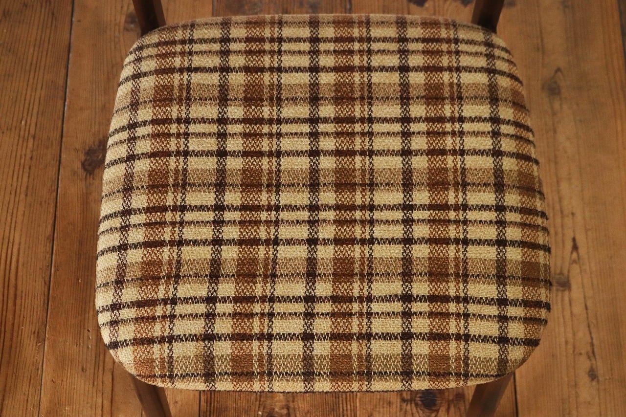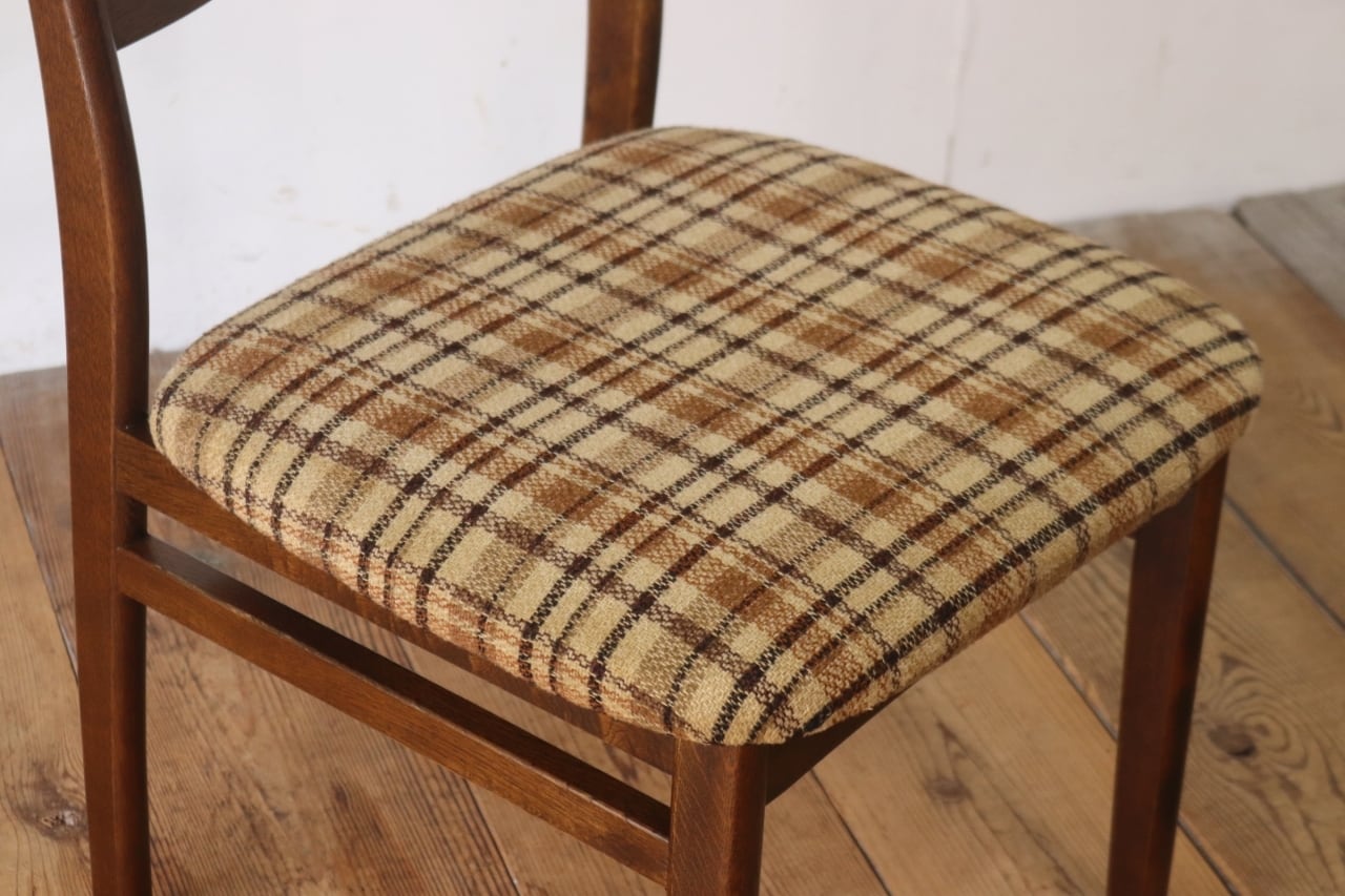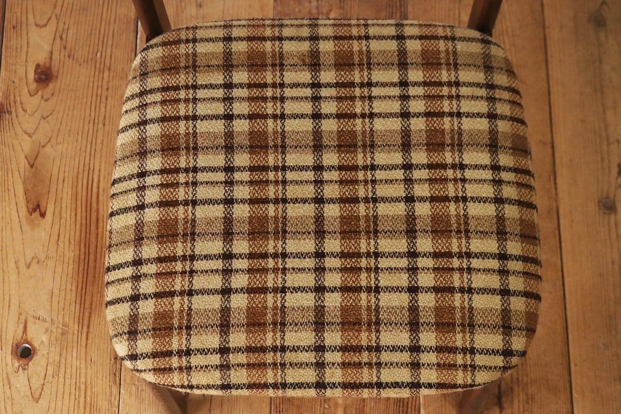 在庫3 日進木工 ヴィンテージ ダイニングチェア 椅子 オーク材 ファブリック チェック 格子柄 茶系 レトロ 1脚/PJI22195