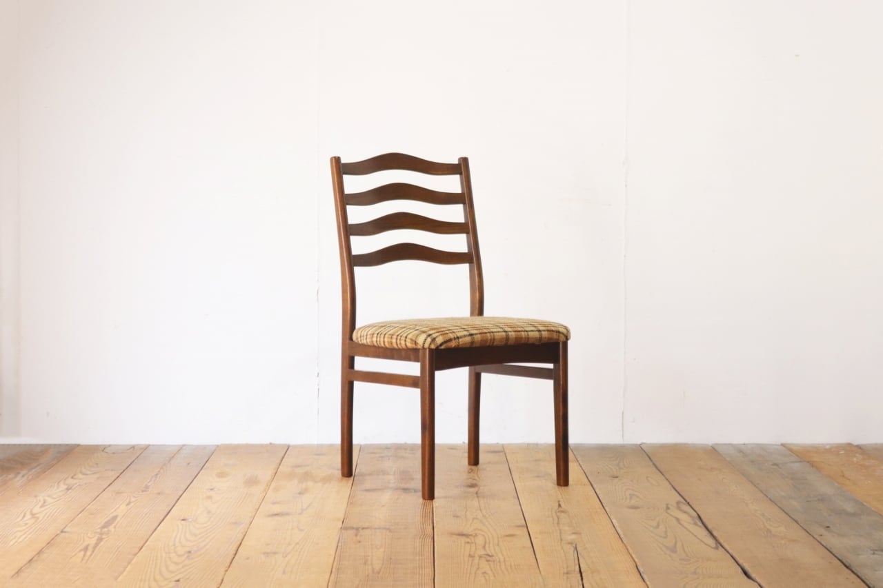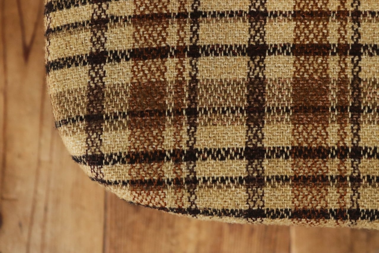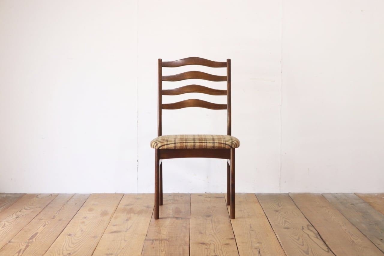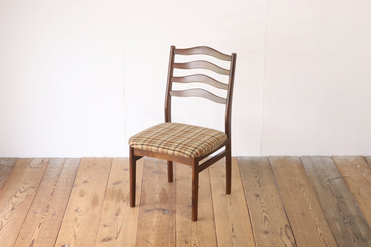 在庫3 日進木工 ヴィンテージ ダイニングチェア 椅子 オーク材 ファブリック チェック 格子柄 茶系 レトロ 1脚/PJI22195