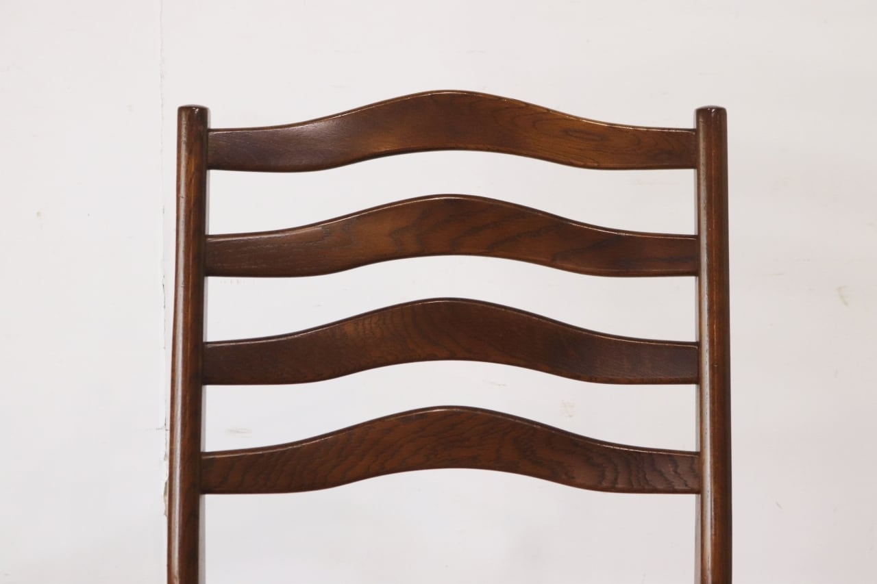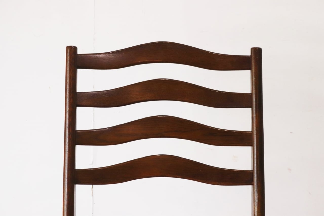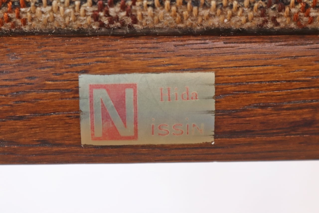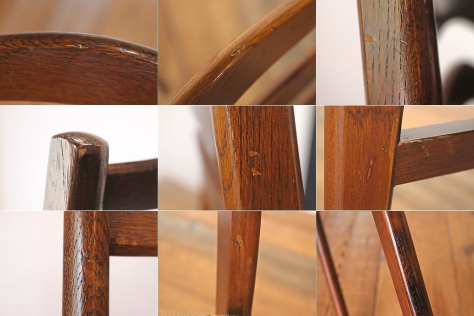 在庫3 日進木工 ヴィンテージ ダイニングチェア 椅子 オーク材 ファブリック チェック 格子柄 茶系 レトロ 1脚/PJI22195