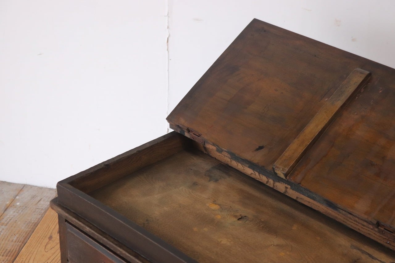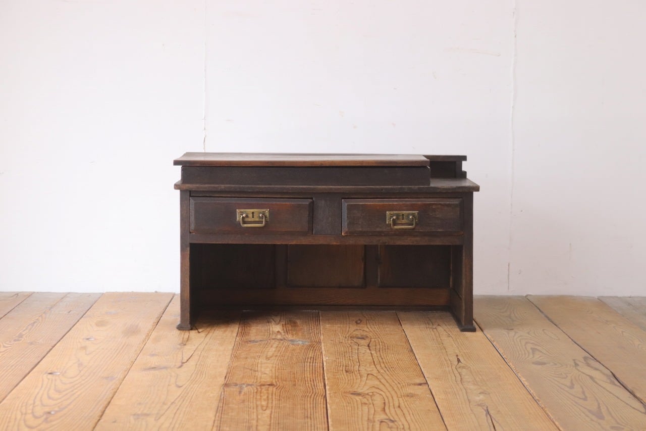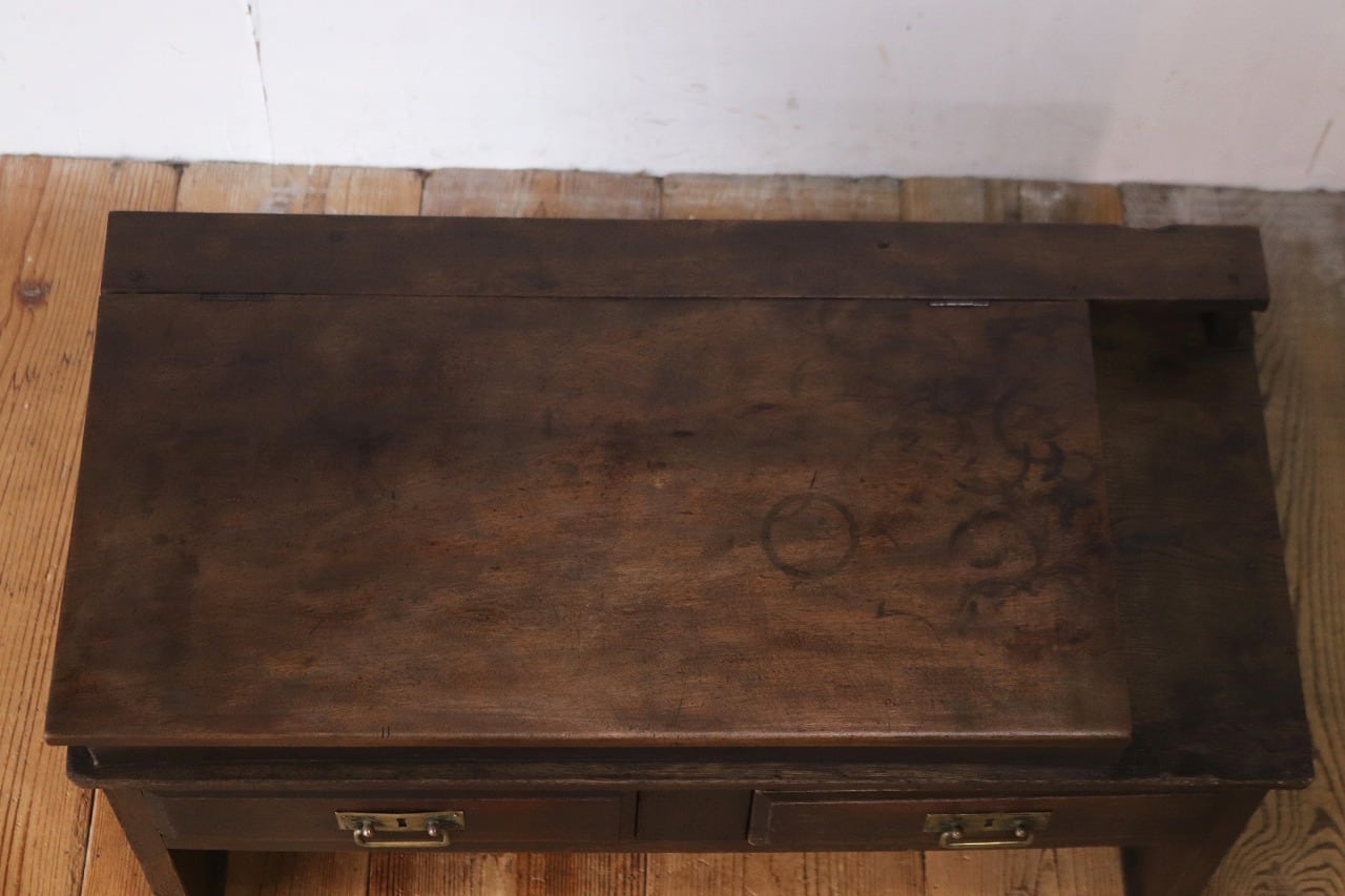 レトロ 文机 ローテーブル 座卓 帳場机 跳ね上げ天板 無垢材 引き出し 抽斗 2杯 花台 ヴィンテージ/PJT21145