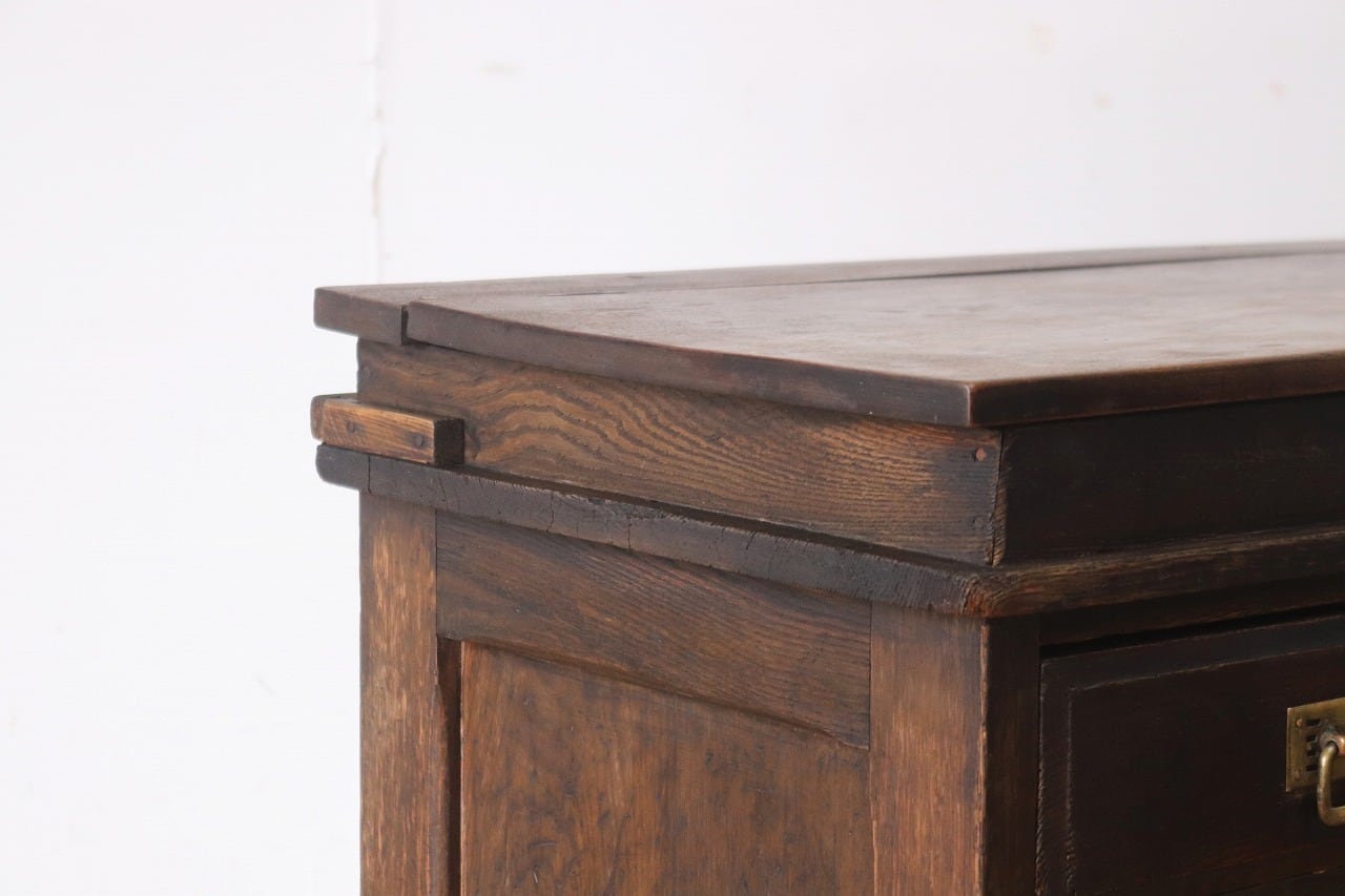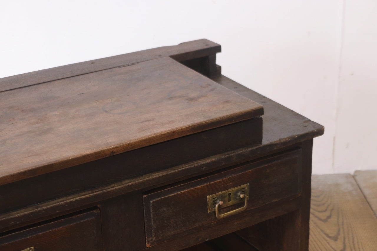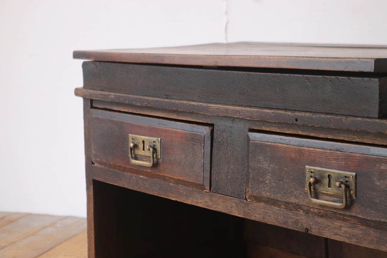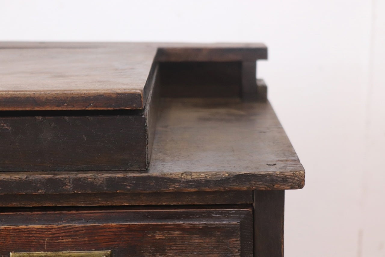 レトロ 文机 ローテーブル 座卓 帳場机 跳ね上げ天板 無垢材 引き出し 抽斗 2杯 花台 ヴィンテージ/PJT21145