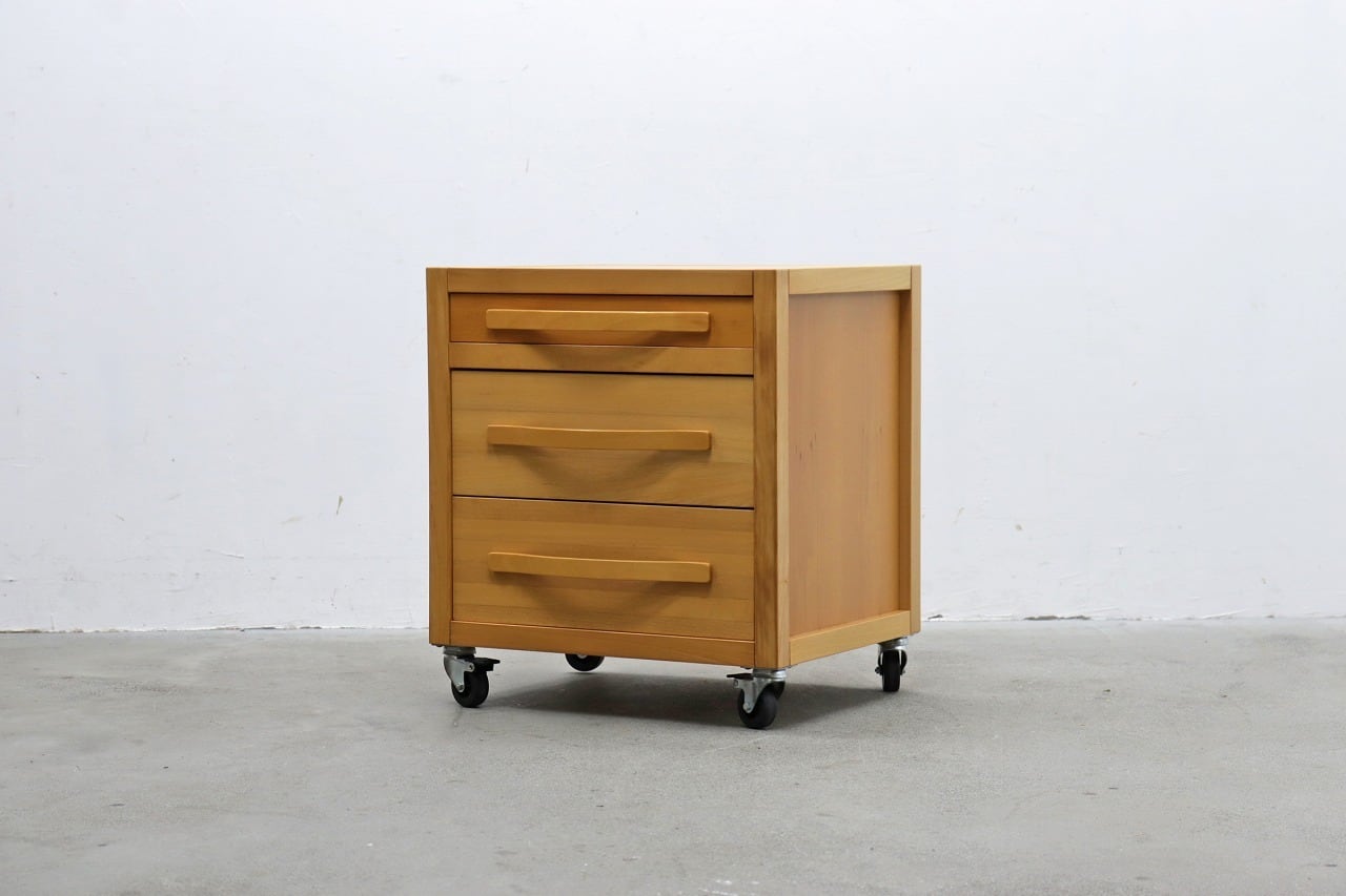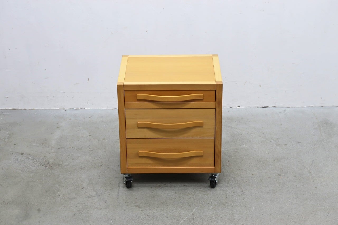 ※商談中 ビーチ材 キャスター付き 3段ワゴン チェスト 引き出し 袖机 オフィス 書斎 子供部屋 ナチュラル モダン PJS29244