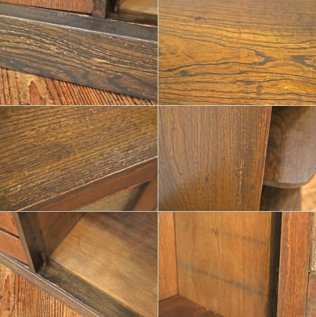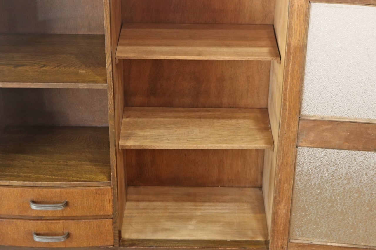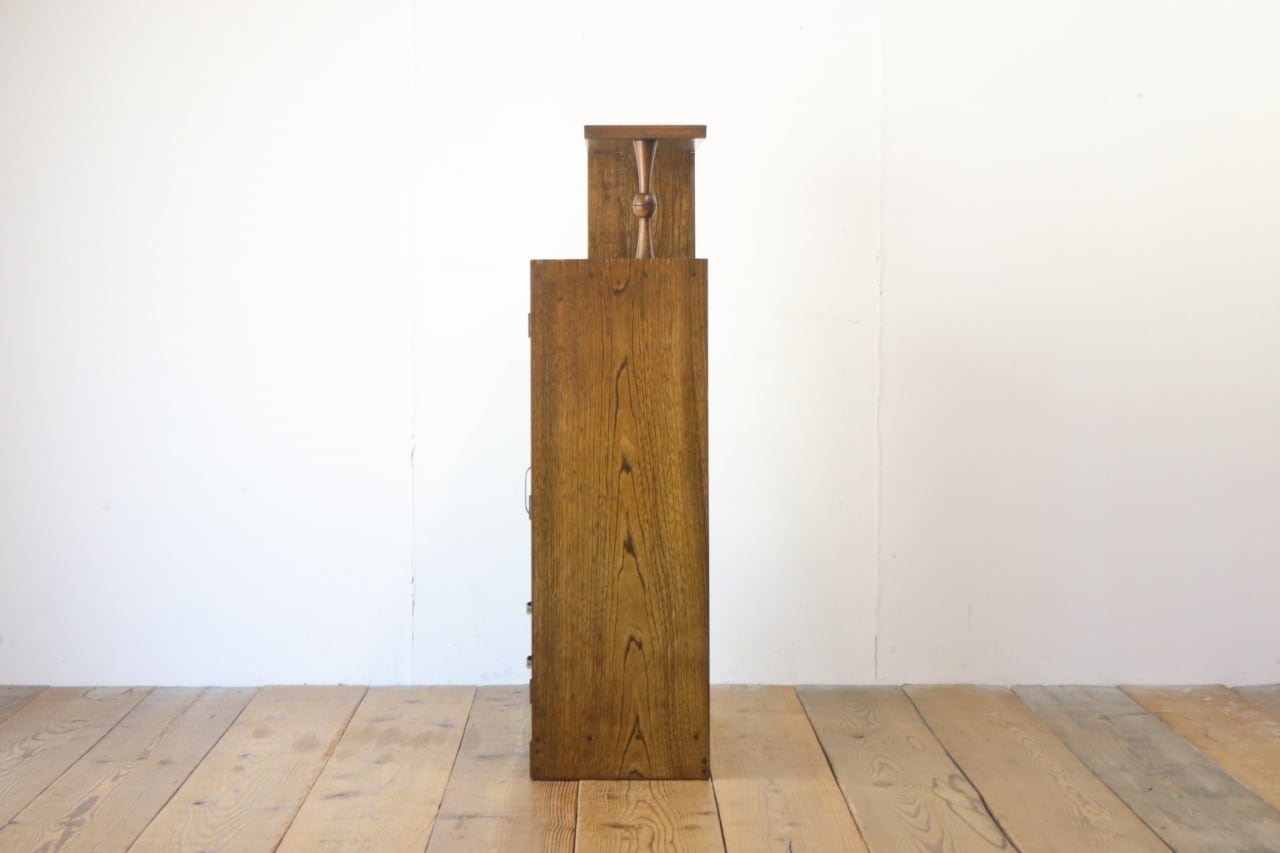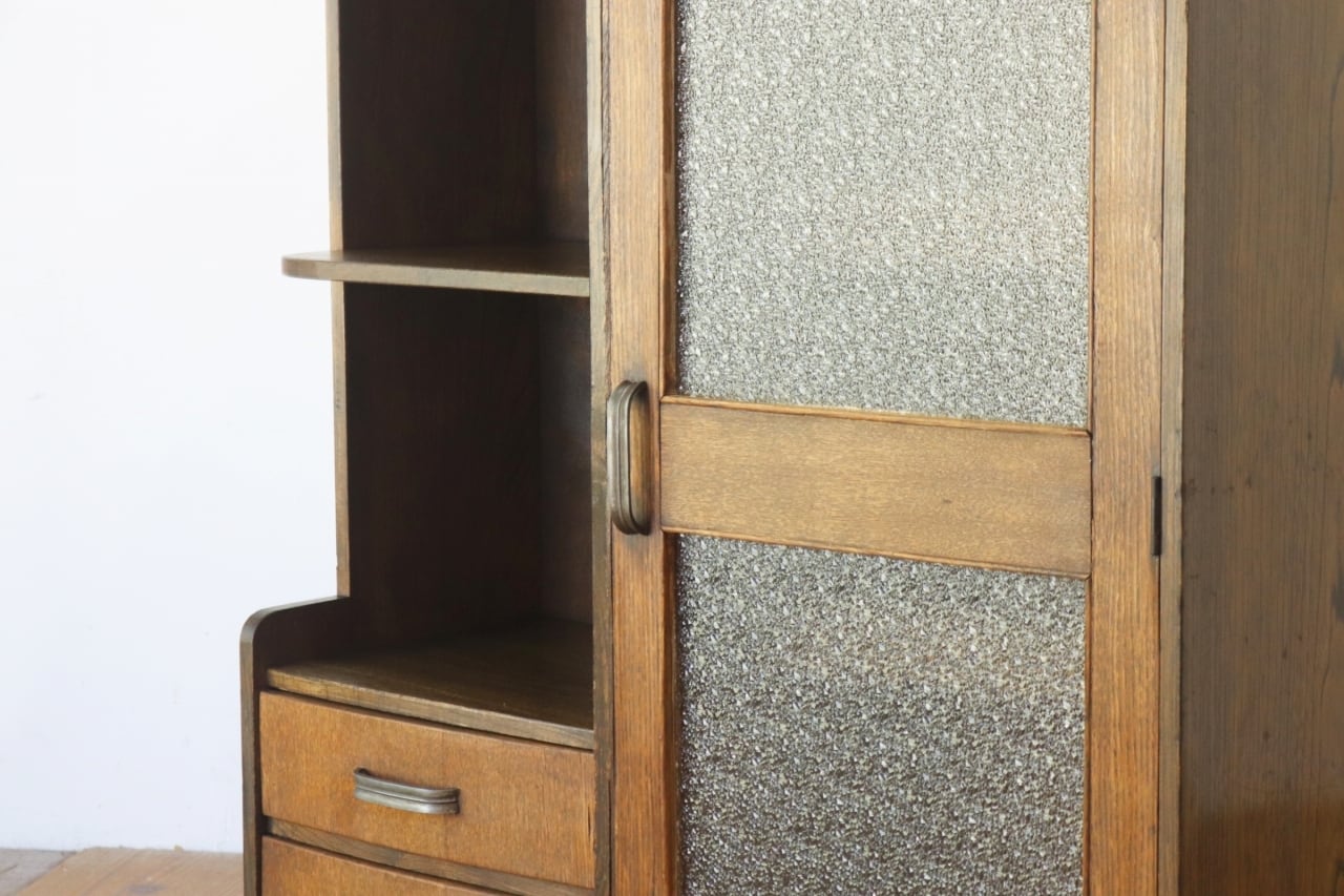 レトロ 小振り 飾り棚 ガラスキャビネット 収納 本箱 左右非対称 木製 ダイヤガラス 昭和 ヴィンテージ/PHK05036