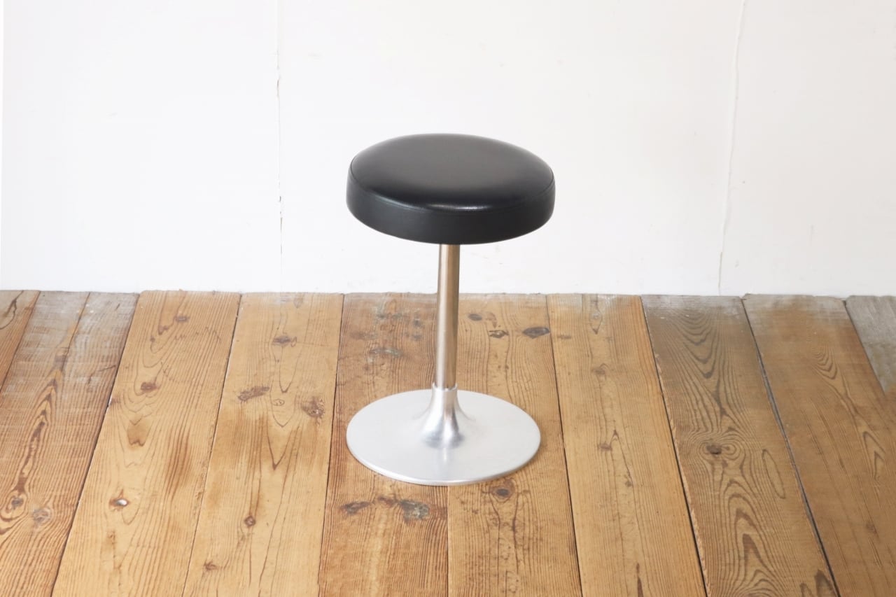 在庫8脚 回転スツール 椅子 カフェ 喫茶店 食堂 合皮 レザー 黒 ブラック 脚 金属 店舗什器 1脚/PJS29240