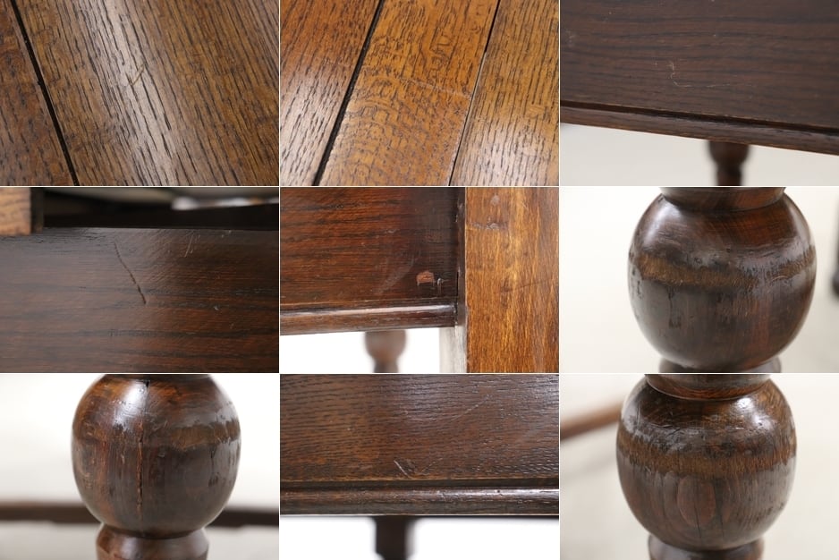 ロイズアンティーク取り扱い、イギリス製オーク材を使用したヴィンテージドローリーフテーブルです。