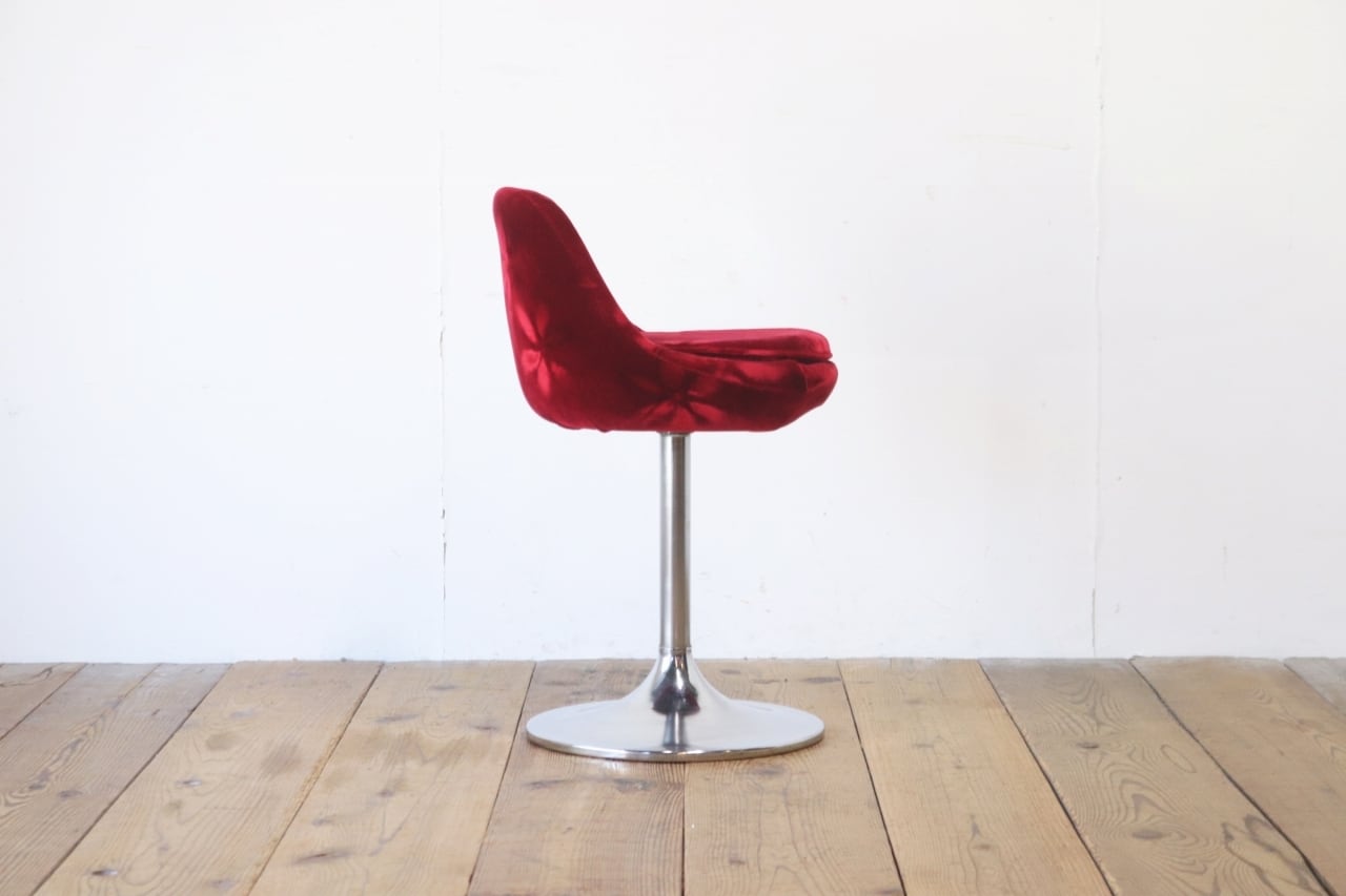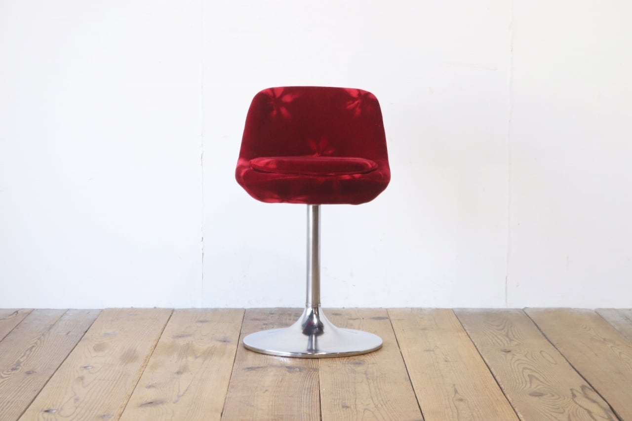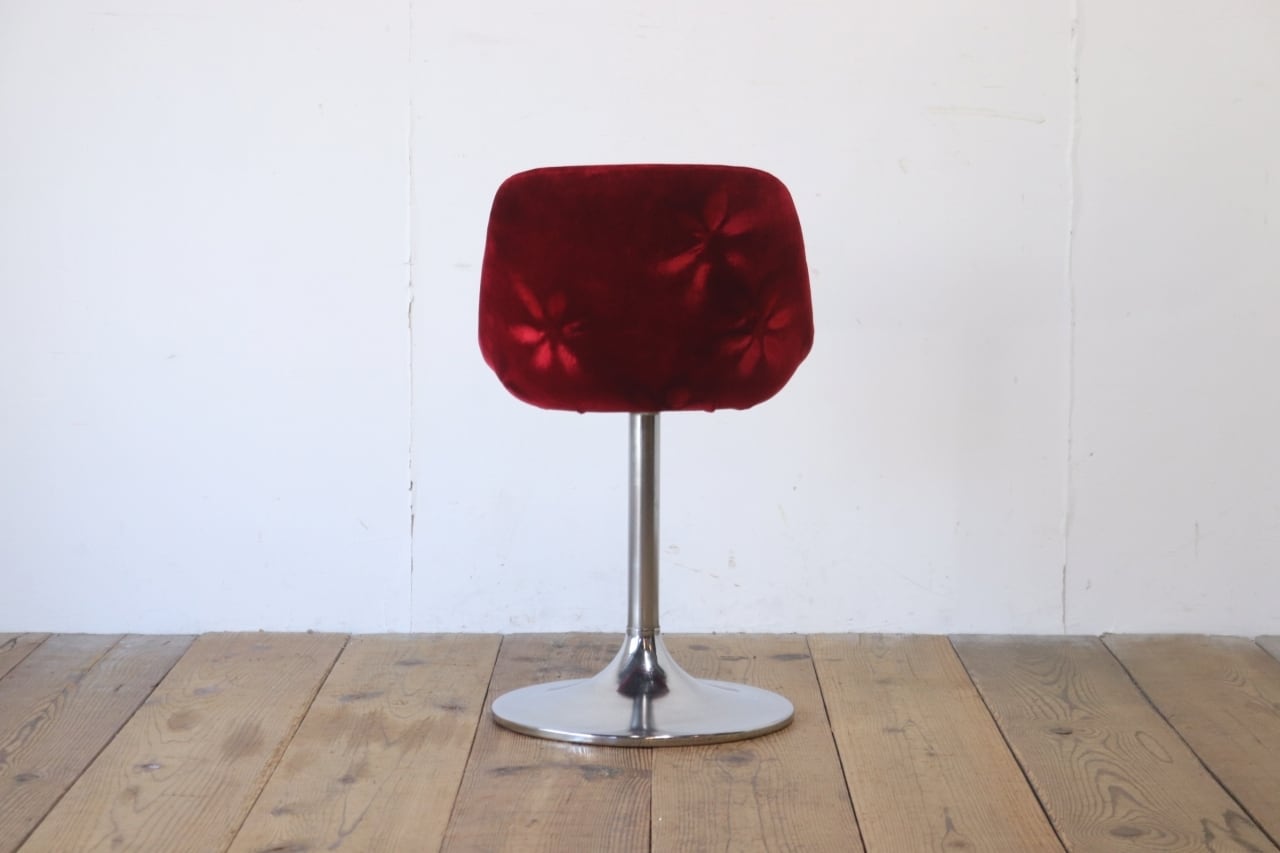 在庫3脚 レトロ カフェチェア 回転椅子 ファブリック モケット 赤 レッド 花柄 喫茶店 店舗什器 ヴィンテージ 1脚/PKK10045
