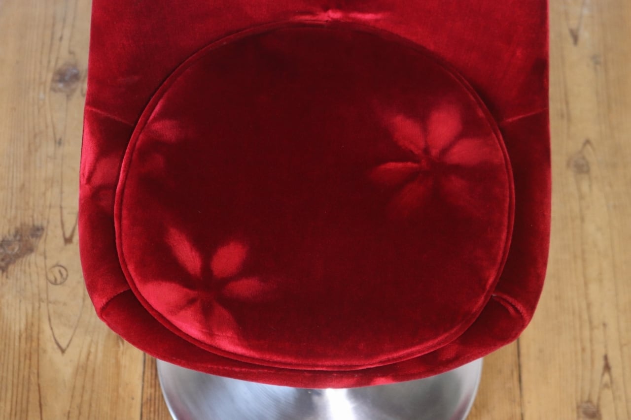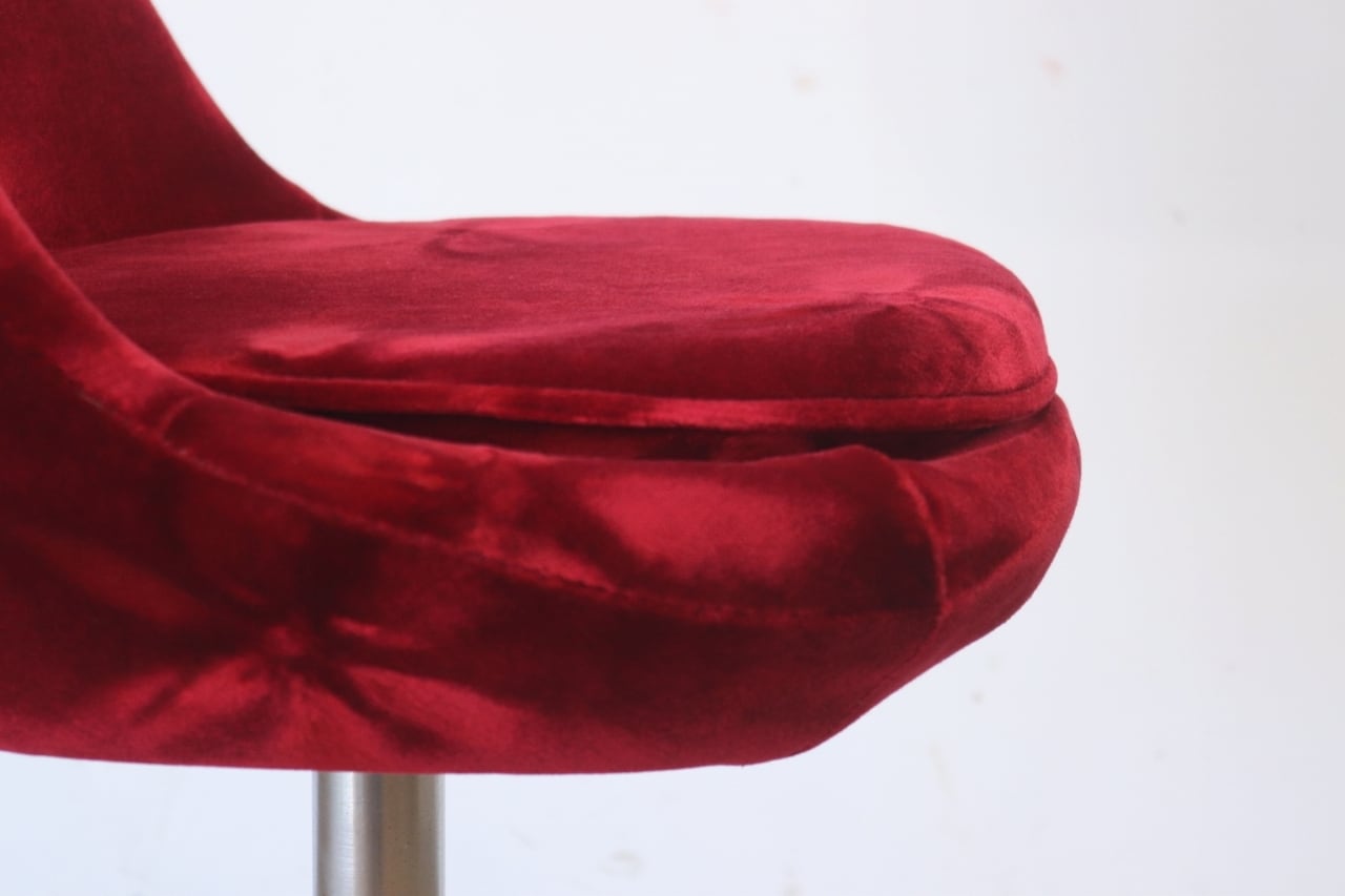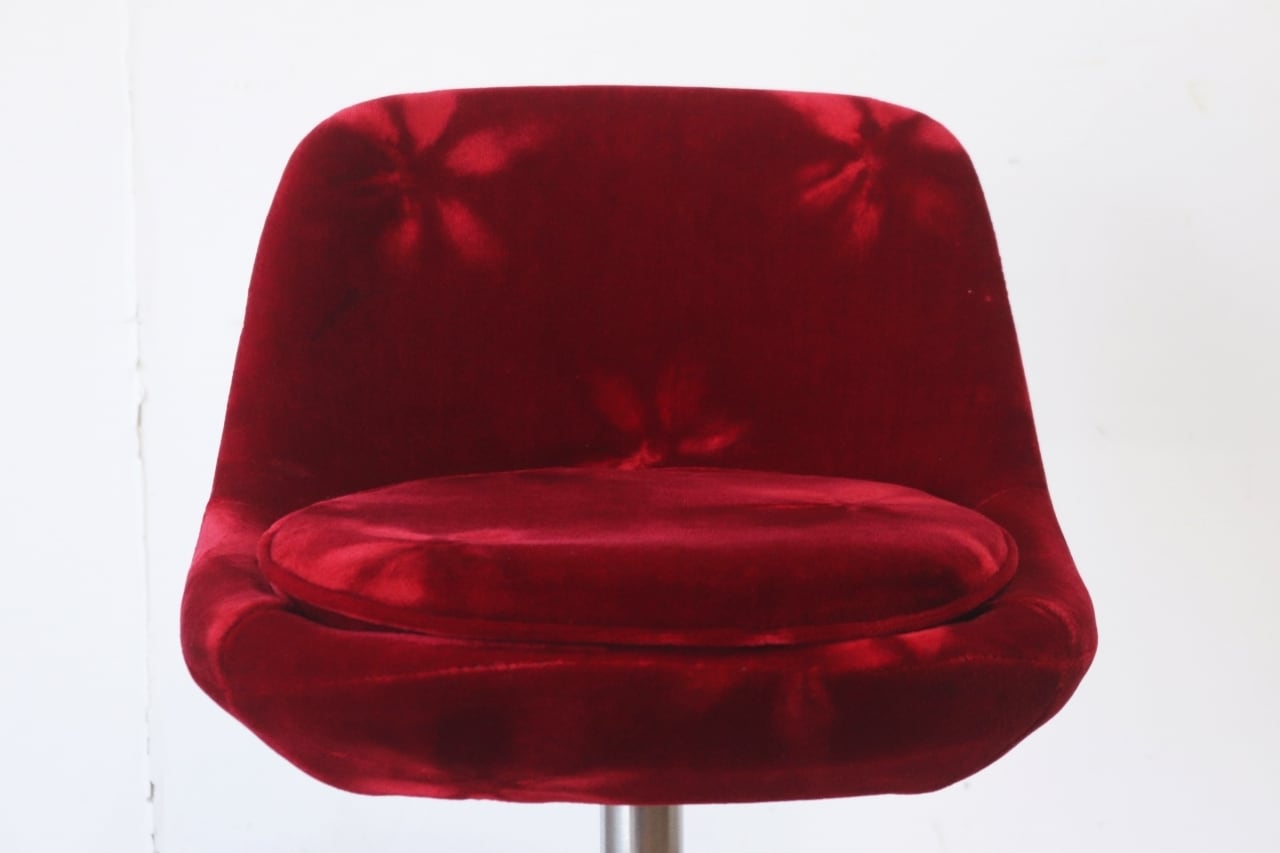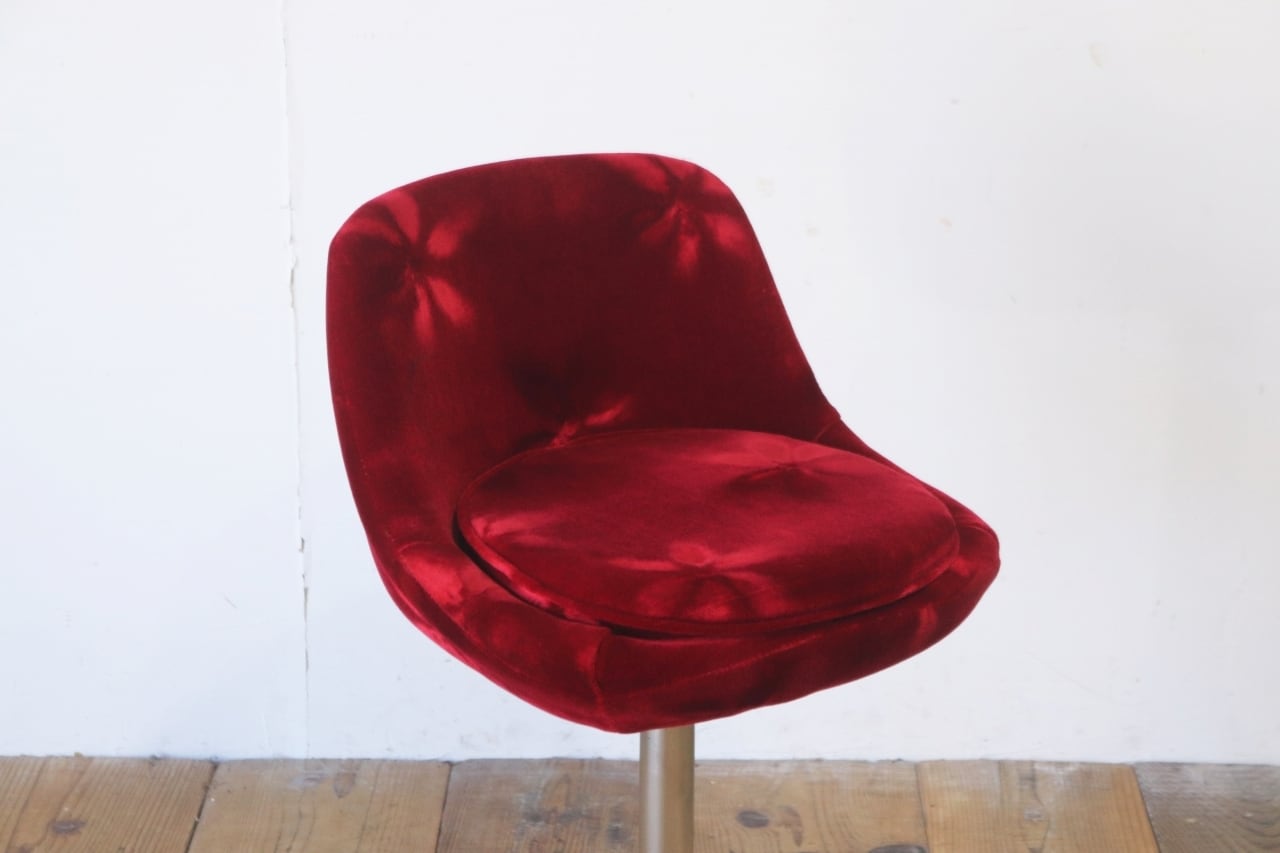 在庫3脚 レトロ カフェチェア 回転椅子 ファブリック モケット 赤 レッド 花柄 喫茶店 店舗什器 ヴィンテージ 1脚/PKK10045