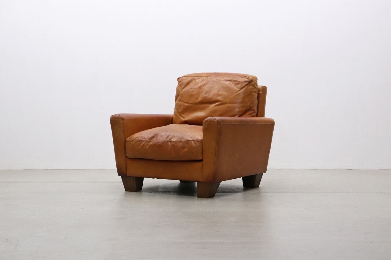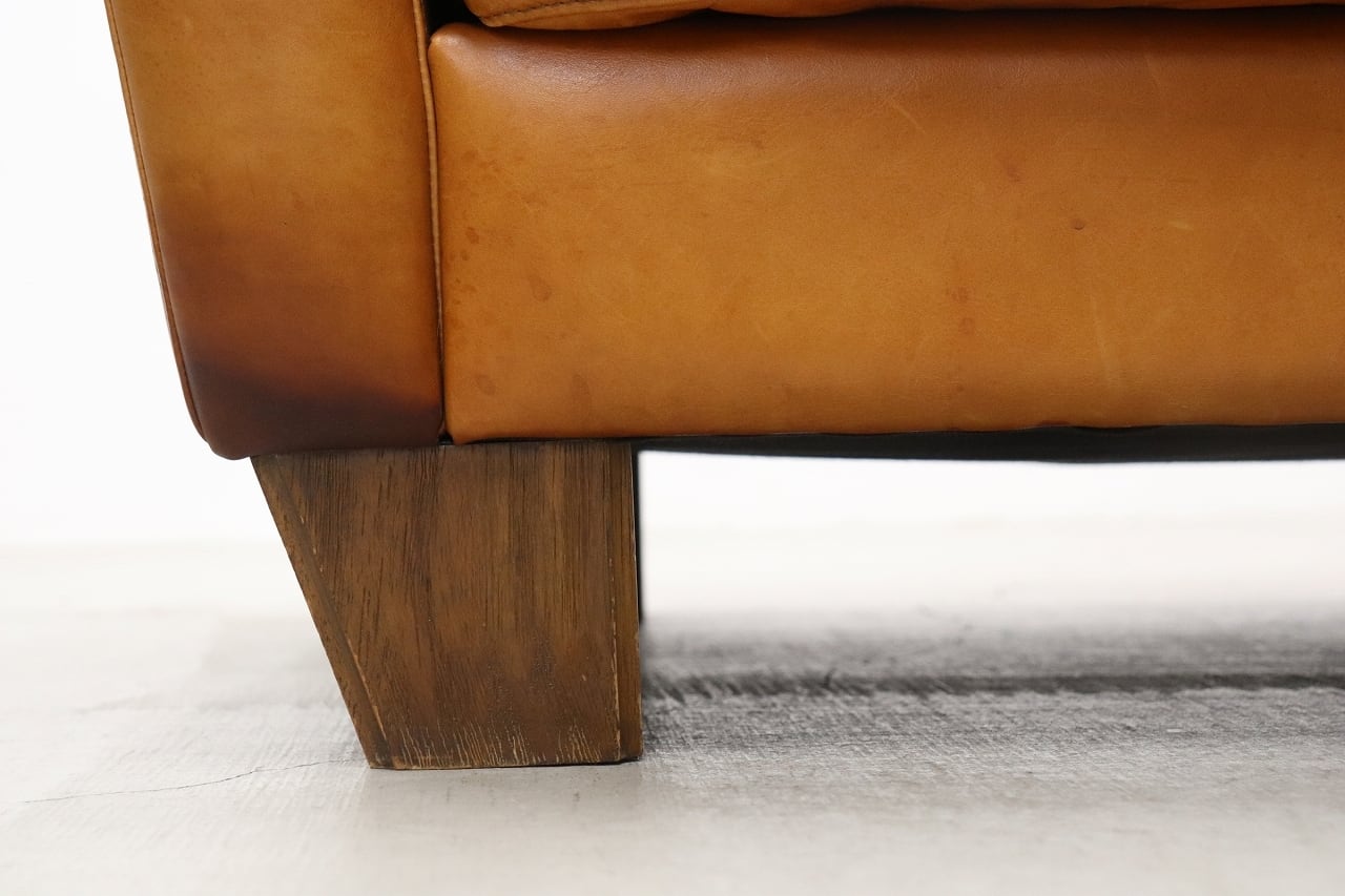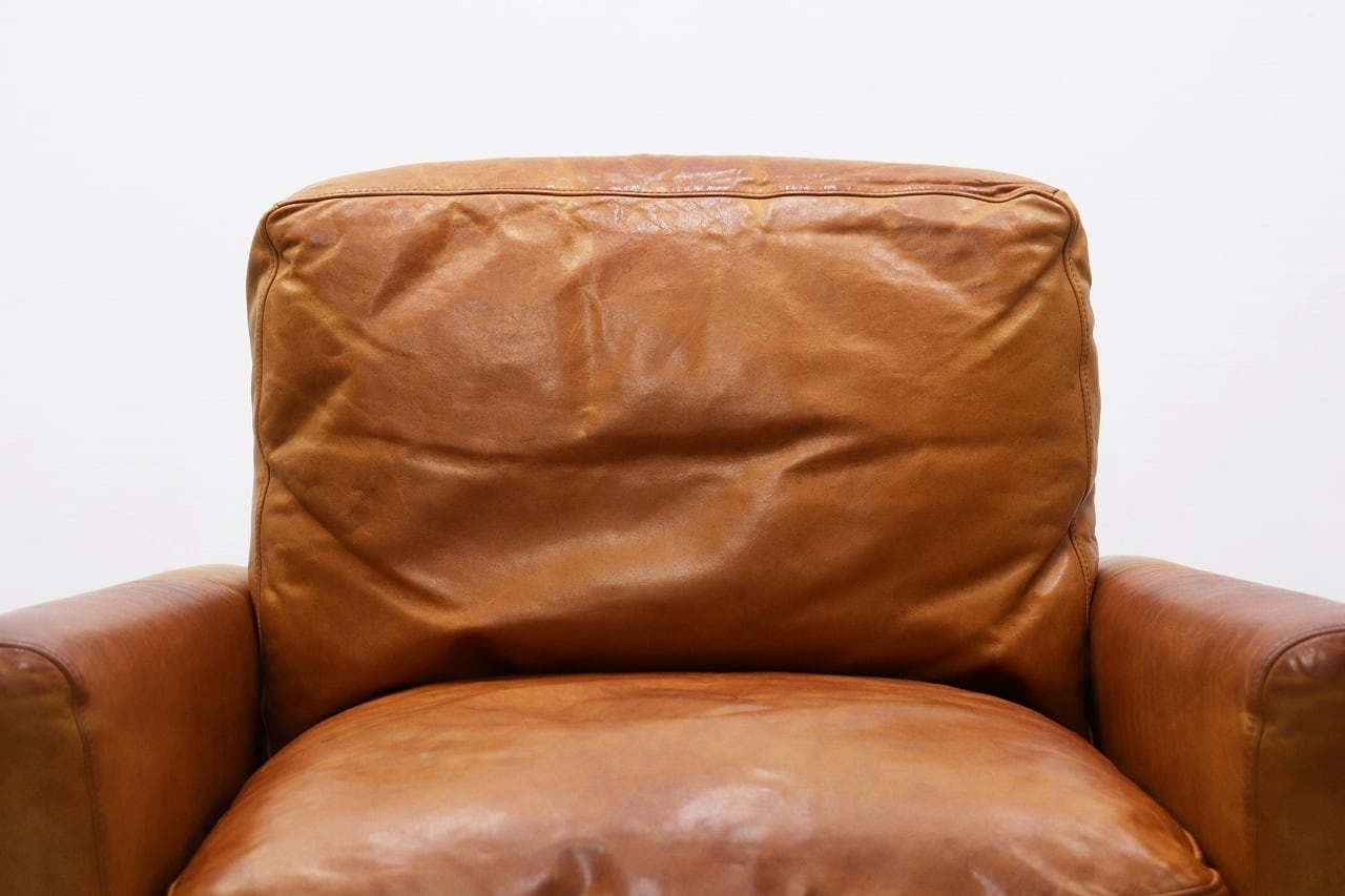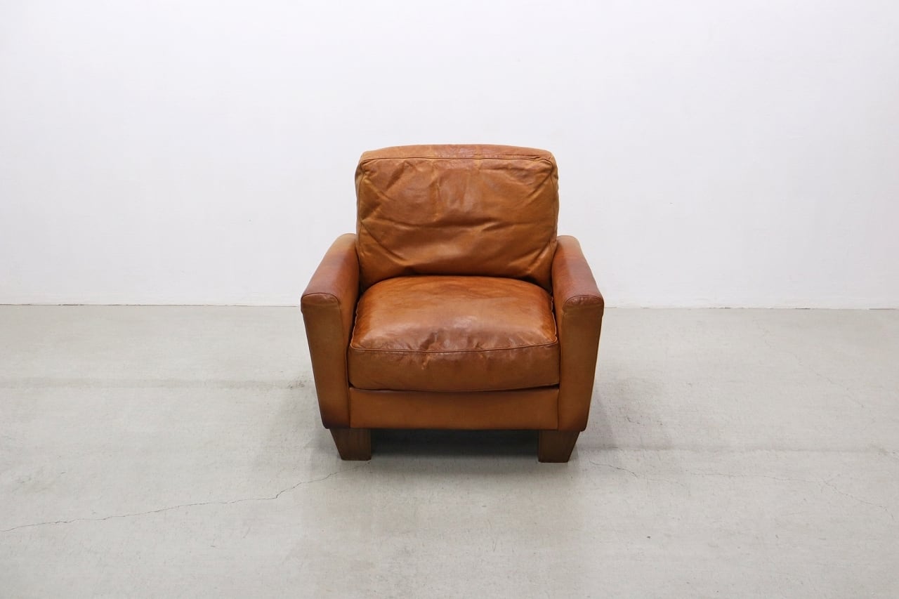 オイルドのカウハイドレザーを使用したヴィンテージ感あふれる一人掛けソファ。