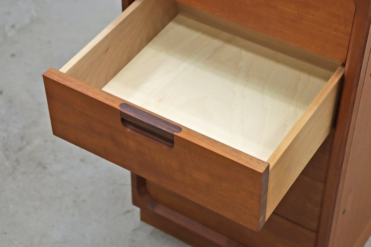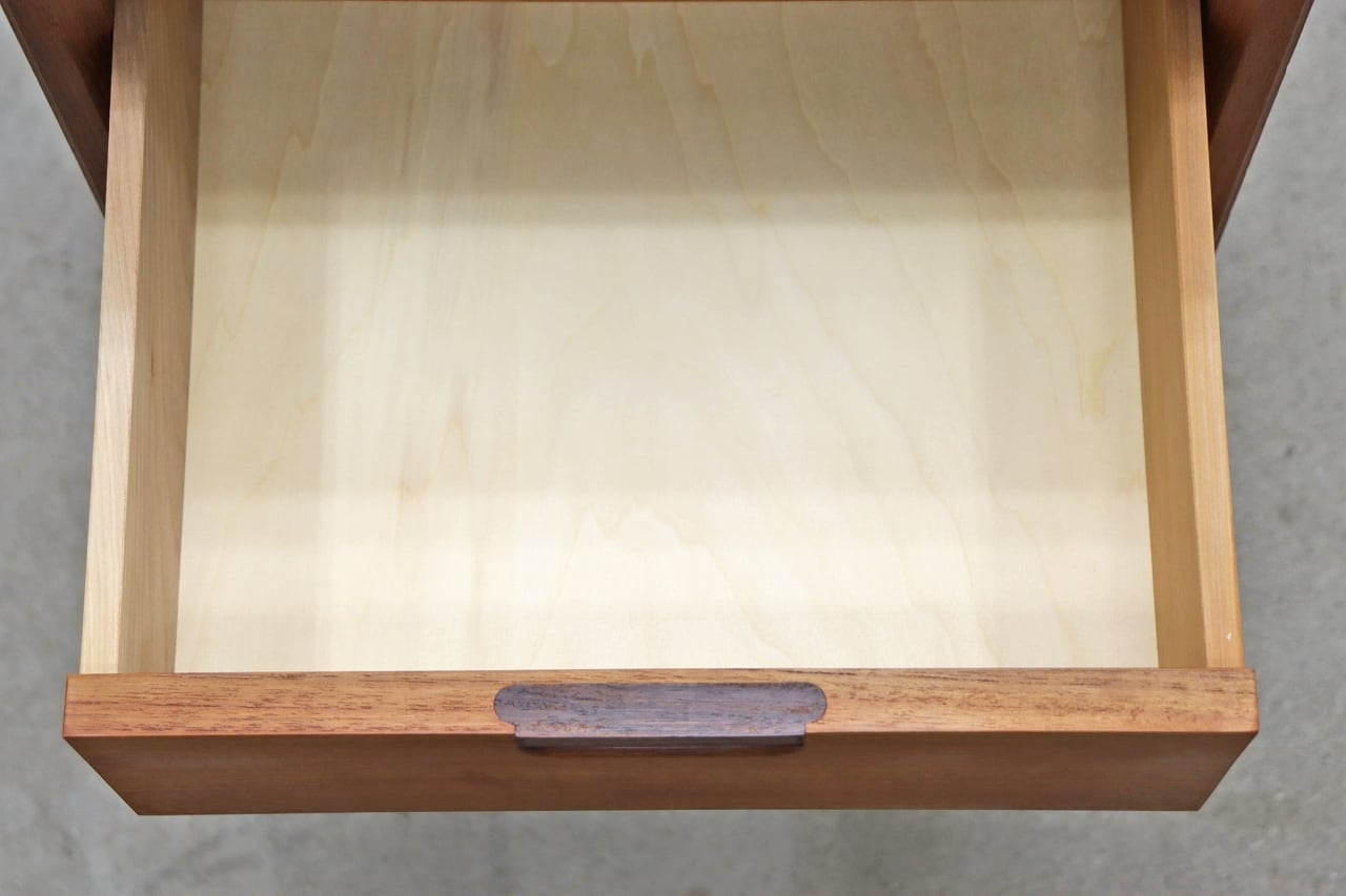 引き出し取っ手部分には色味の異なる無垢材を使用し、デザインのアクセントにもなっています。