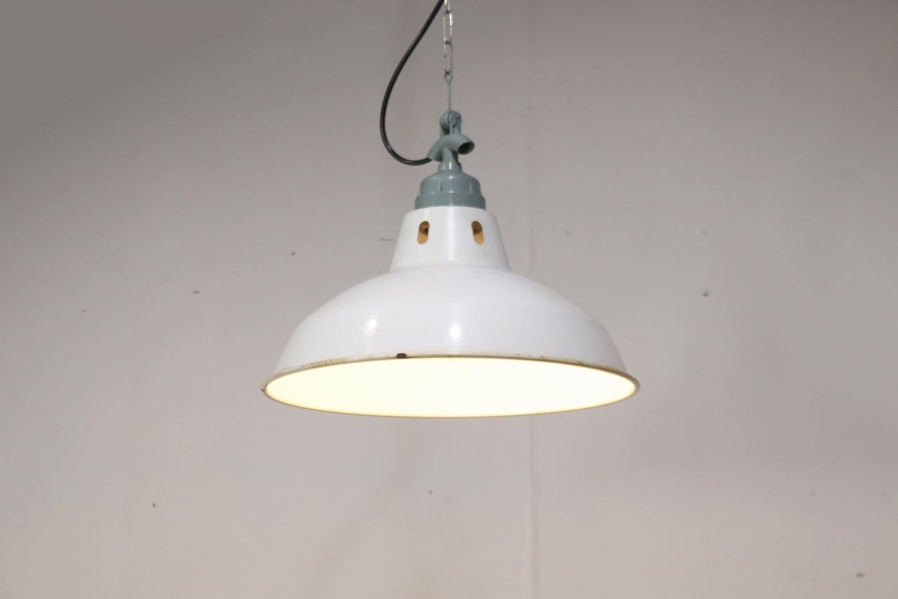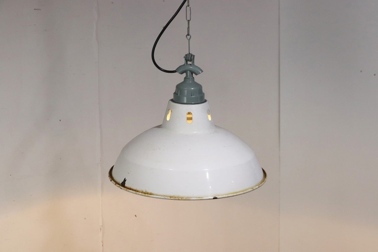 ヴィンテージ 琺瑯 照明 ホーローペンダントライト ランプ 吊り下げ インダストリアル 白 ホワイト/PJK29215