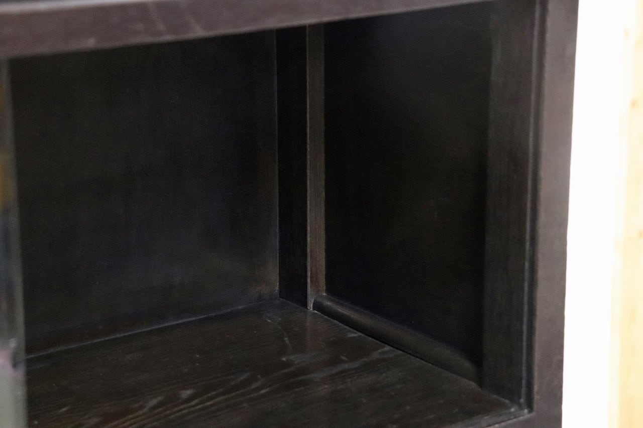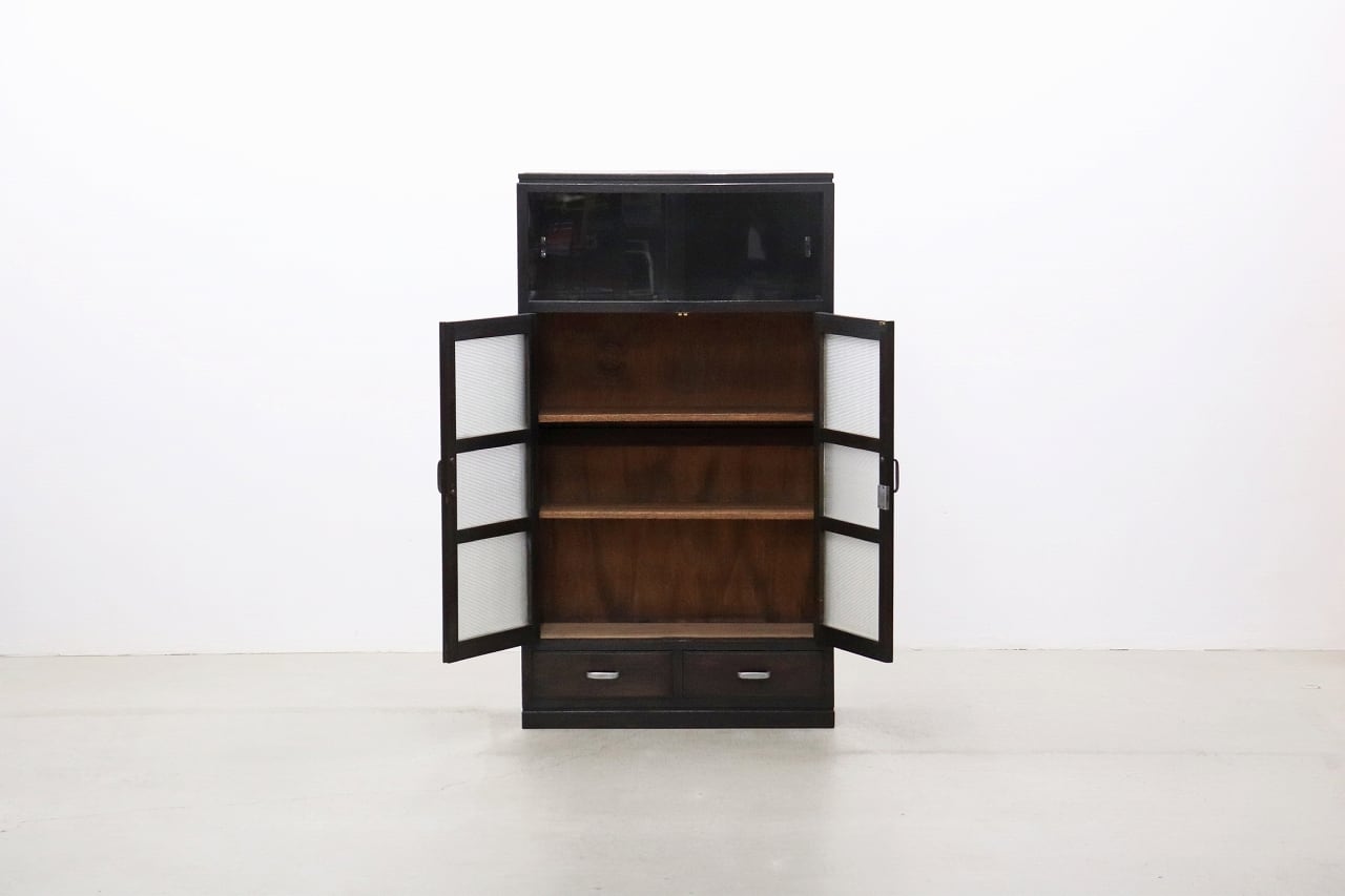 下段の観音扉はダイヤガラスが程よく目隠しとなっており、用途によって上下段で使い分ける事が出来ます。