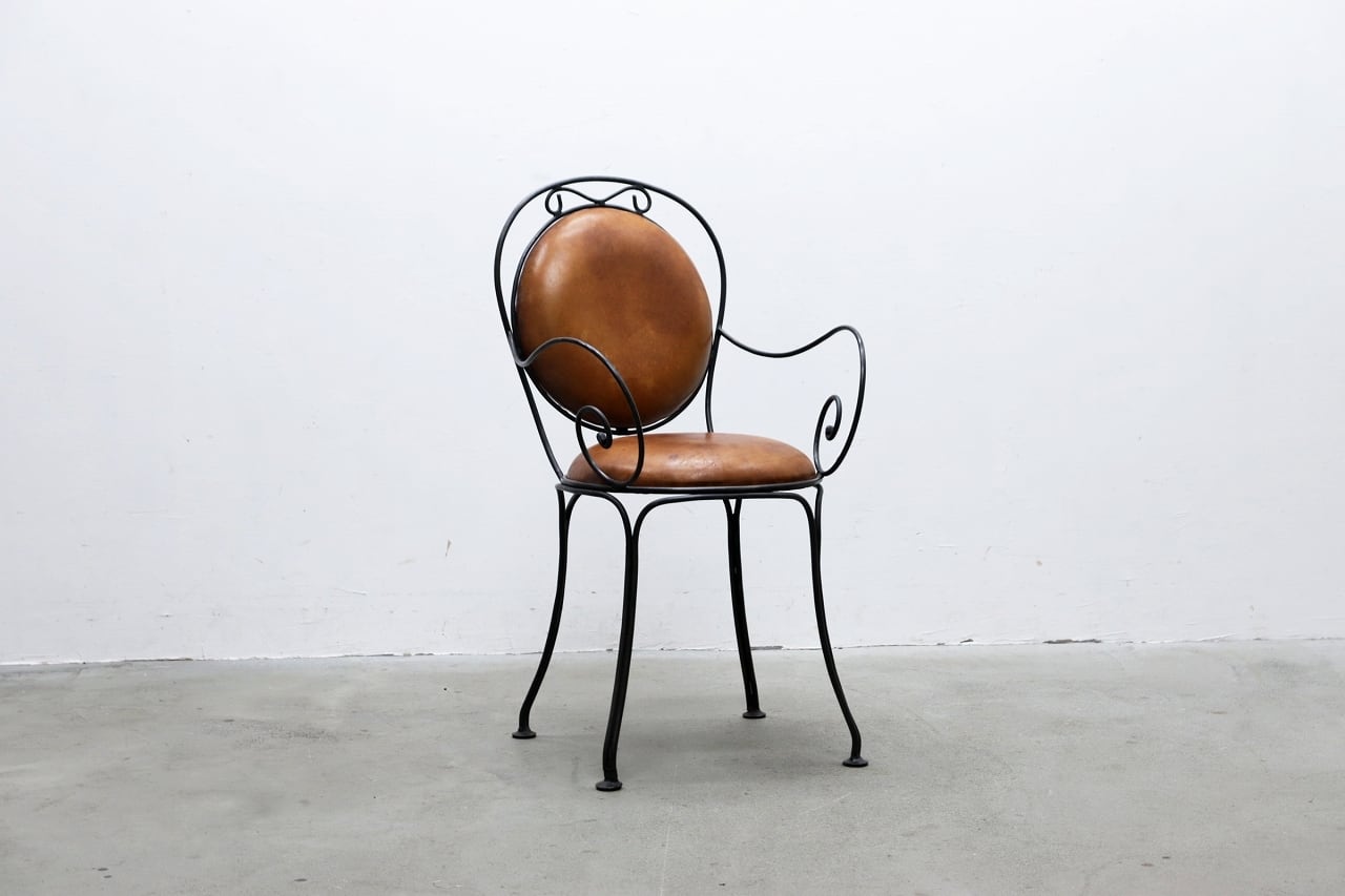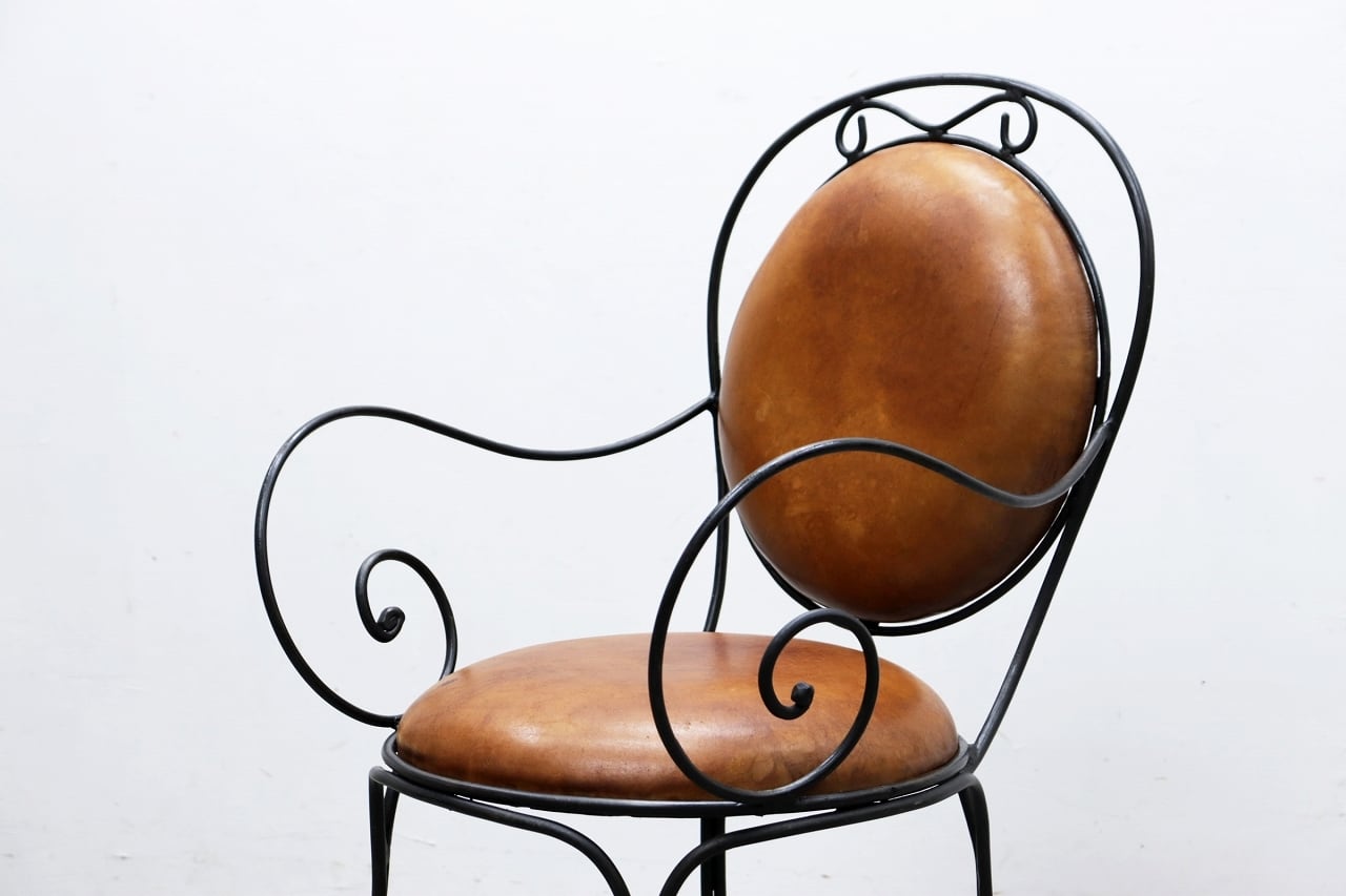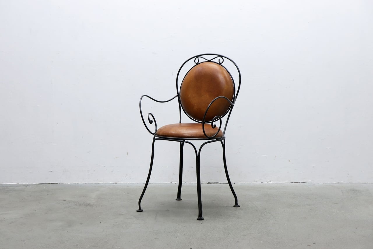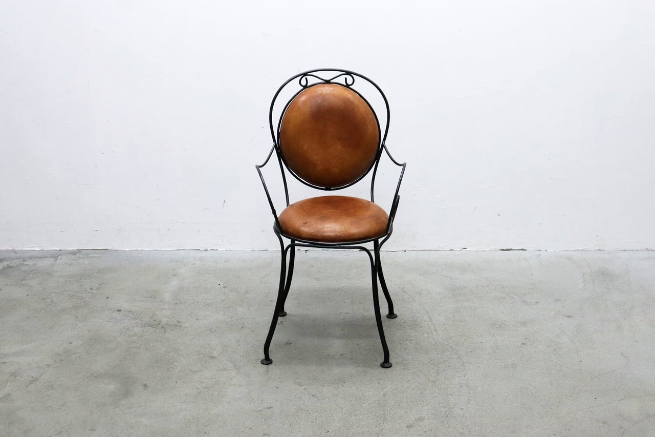 アイアンフレームと本革を使用したクラシカルなアームチェアです。