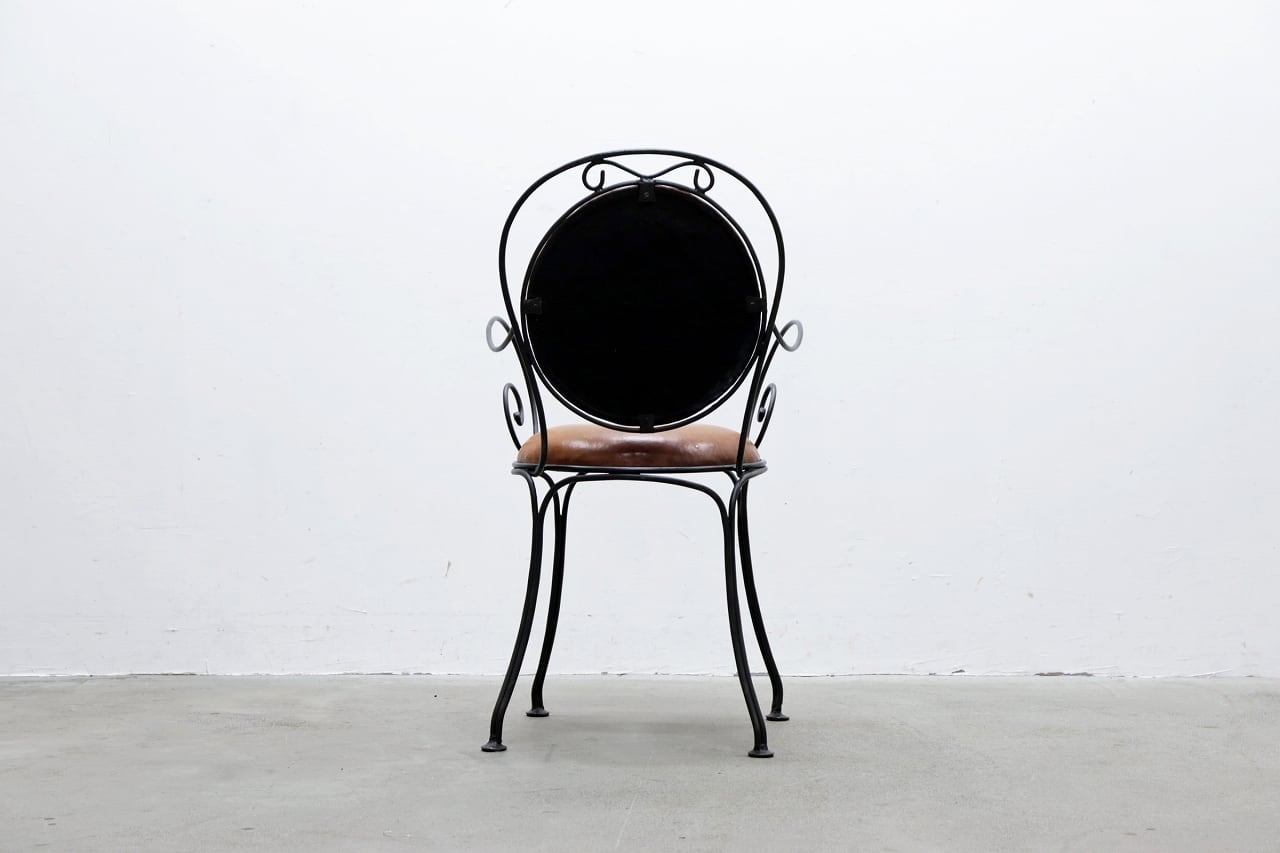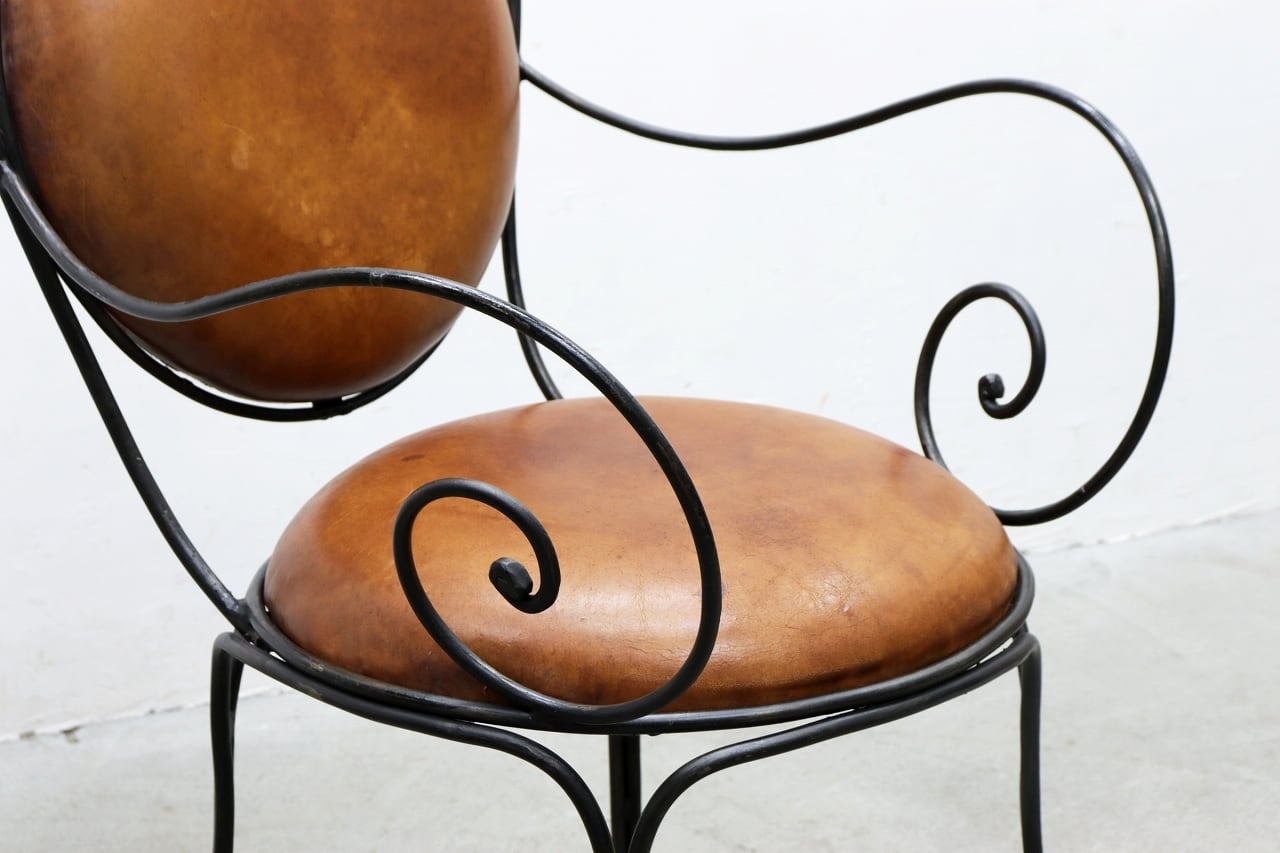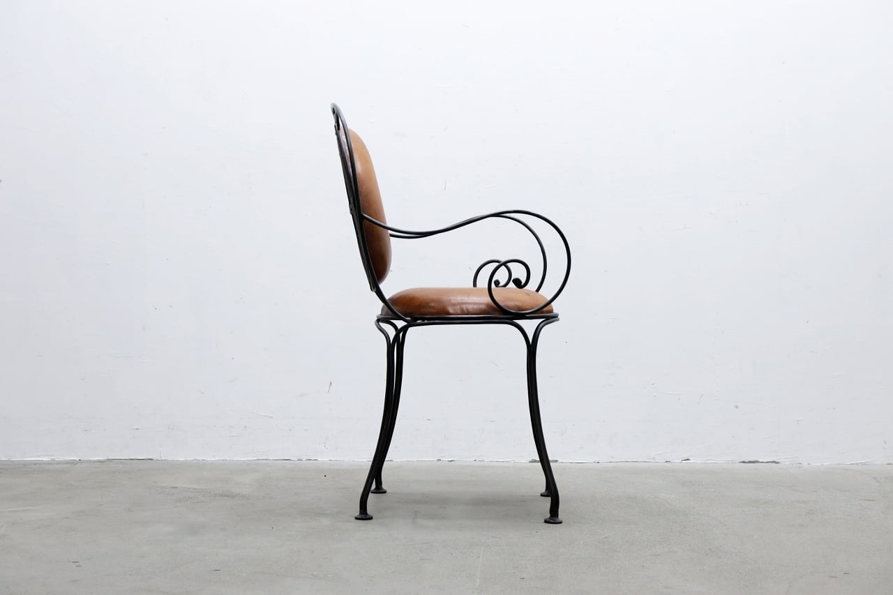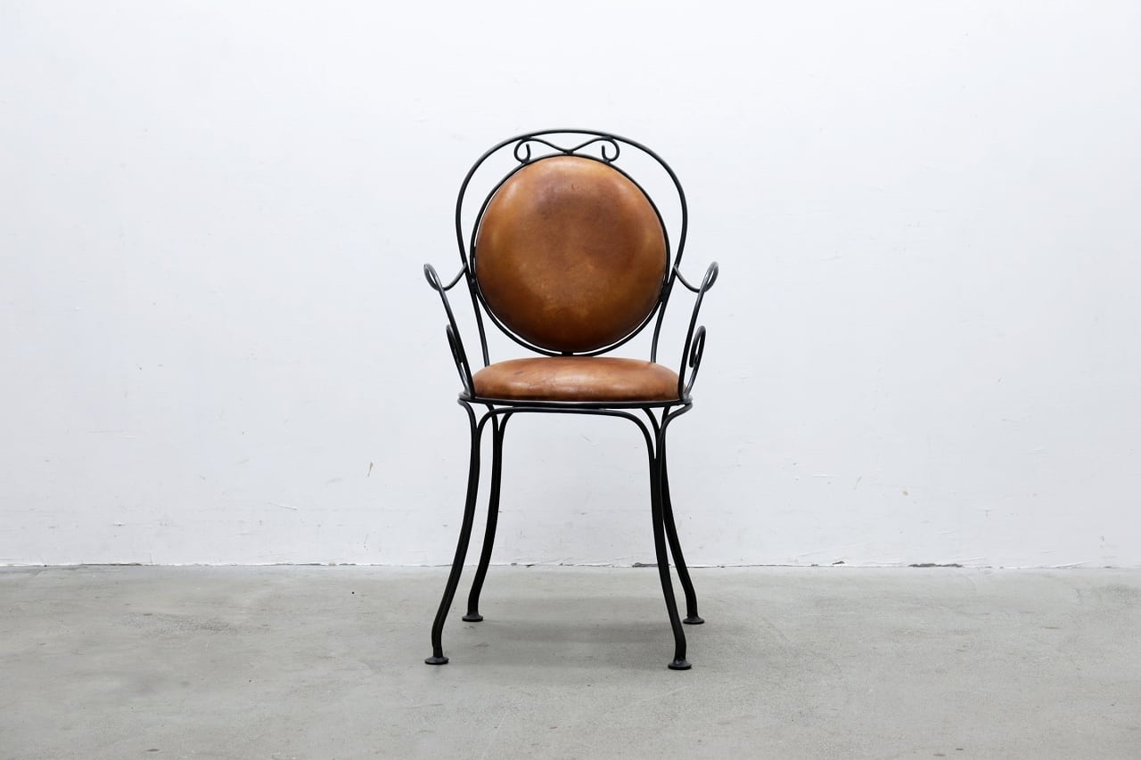 アイアンフレームと本革を使用したクラシカルなアームチェアです。