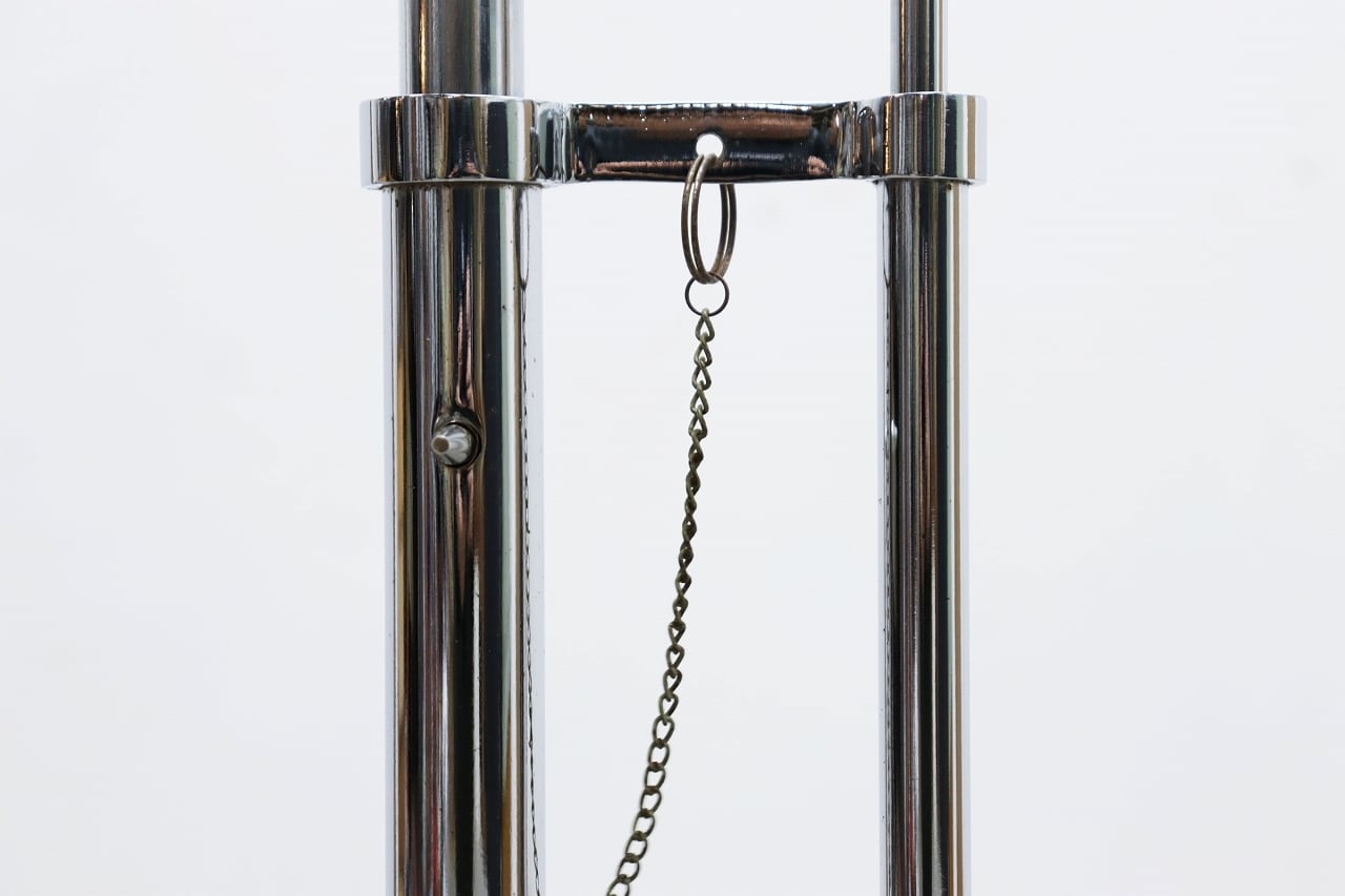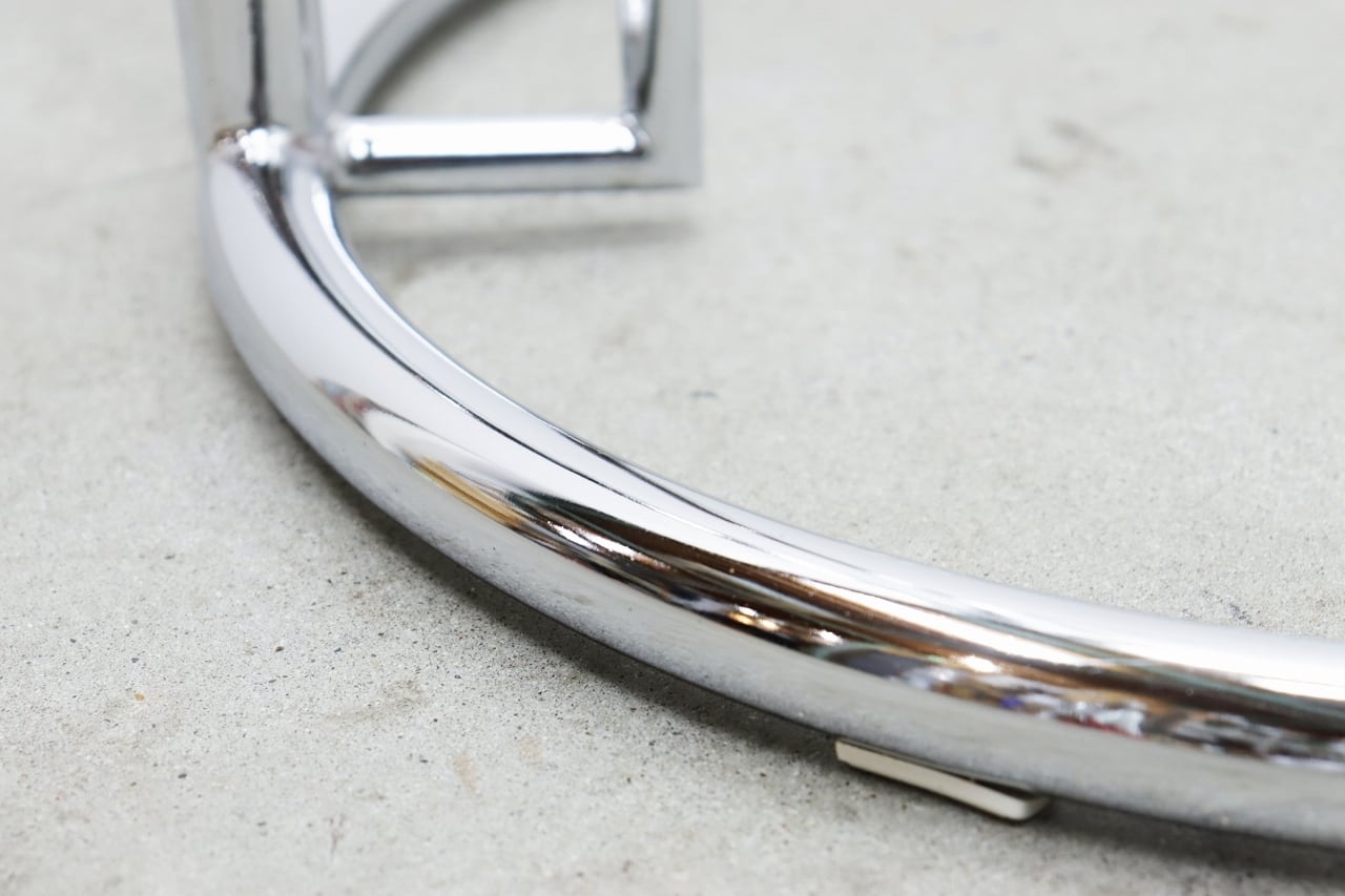 ガラス天板とスチールパイプを組み合わせたシンプルなデザインが魅力です。