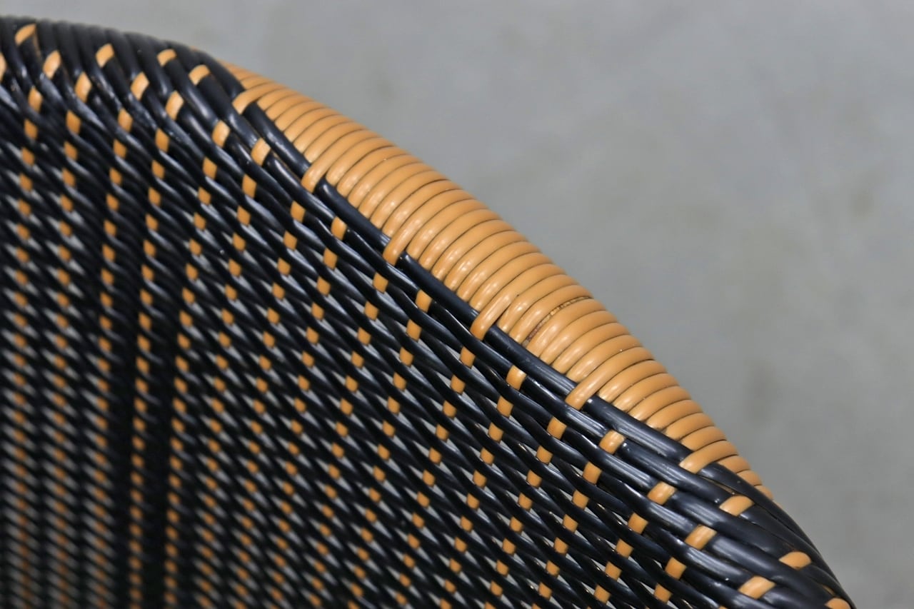 ブラックとライトブラウンのビニールコードで編み込まれたシェルが印象的。
