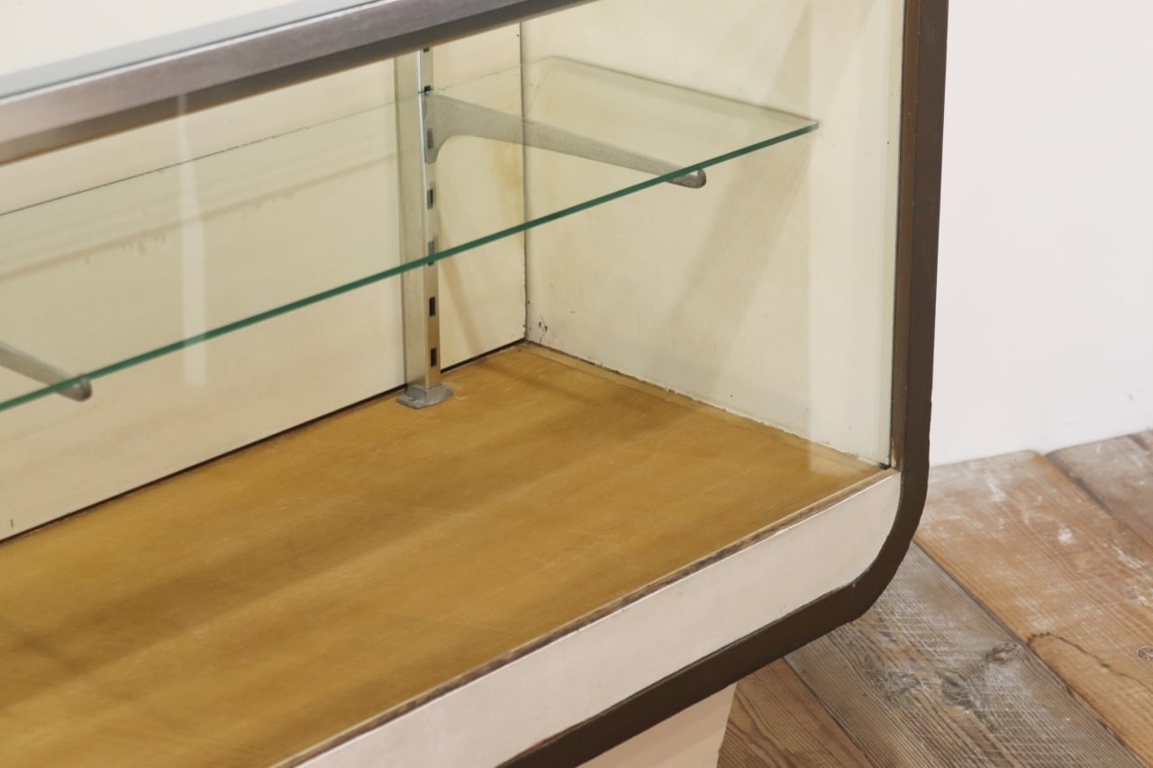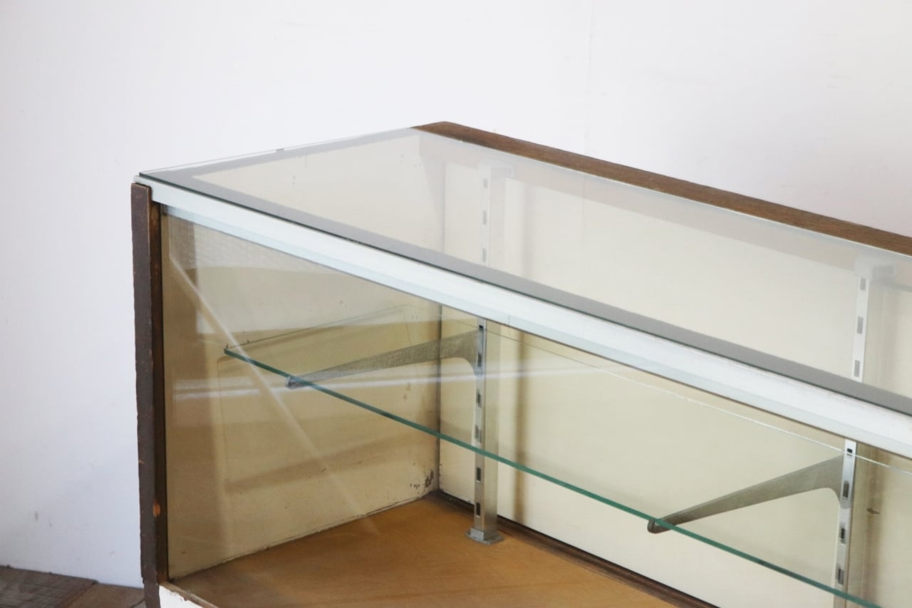 レトロ ガラスショーケース キャビネット ディスプレイ 展示棚 飾り棚 木製 店舗什器 ヴィンテージ/PKT12090