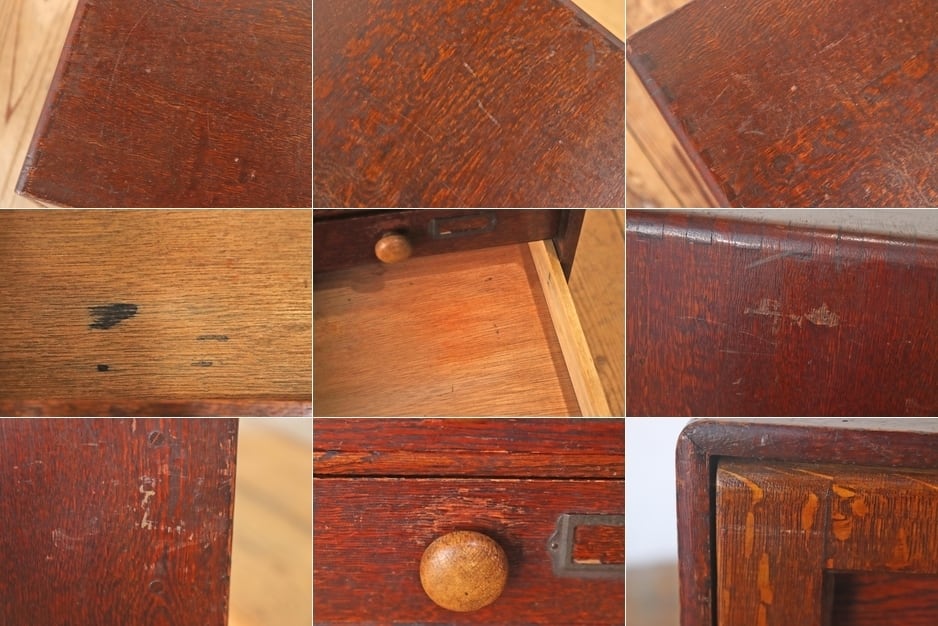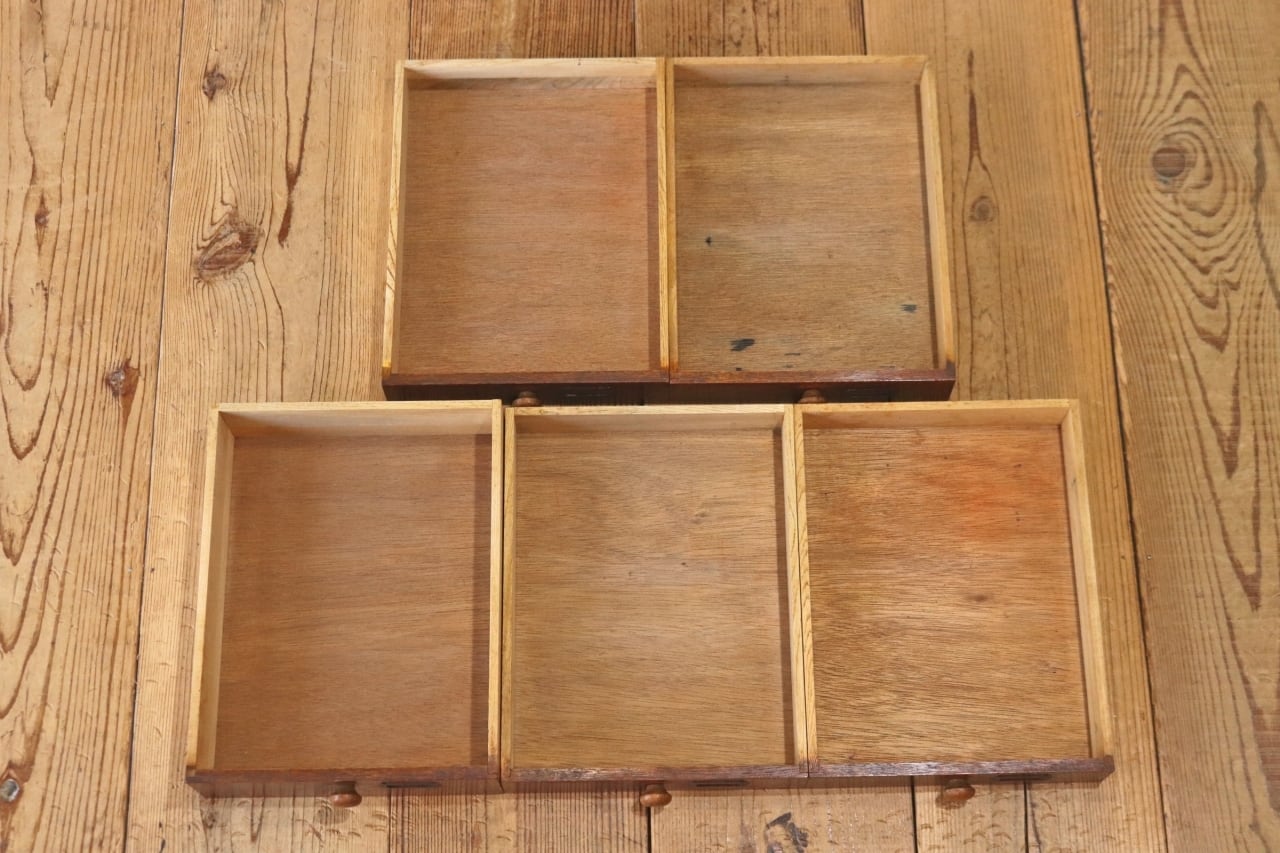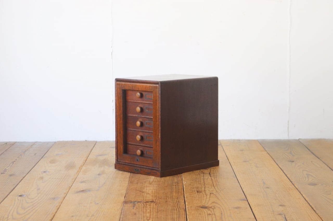 レトロ 卓上 小引き出し 抽斗 5杯 収納 小物入れ レターケース 閂式 B5 オーク材 ヴィンテージ/PKT25175